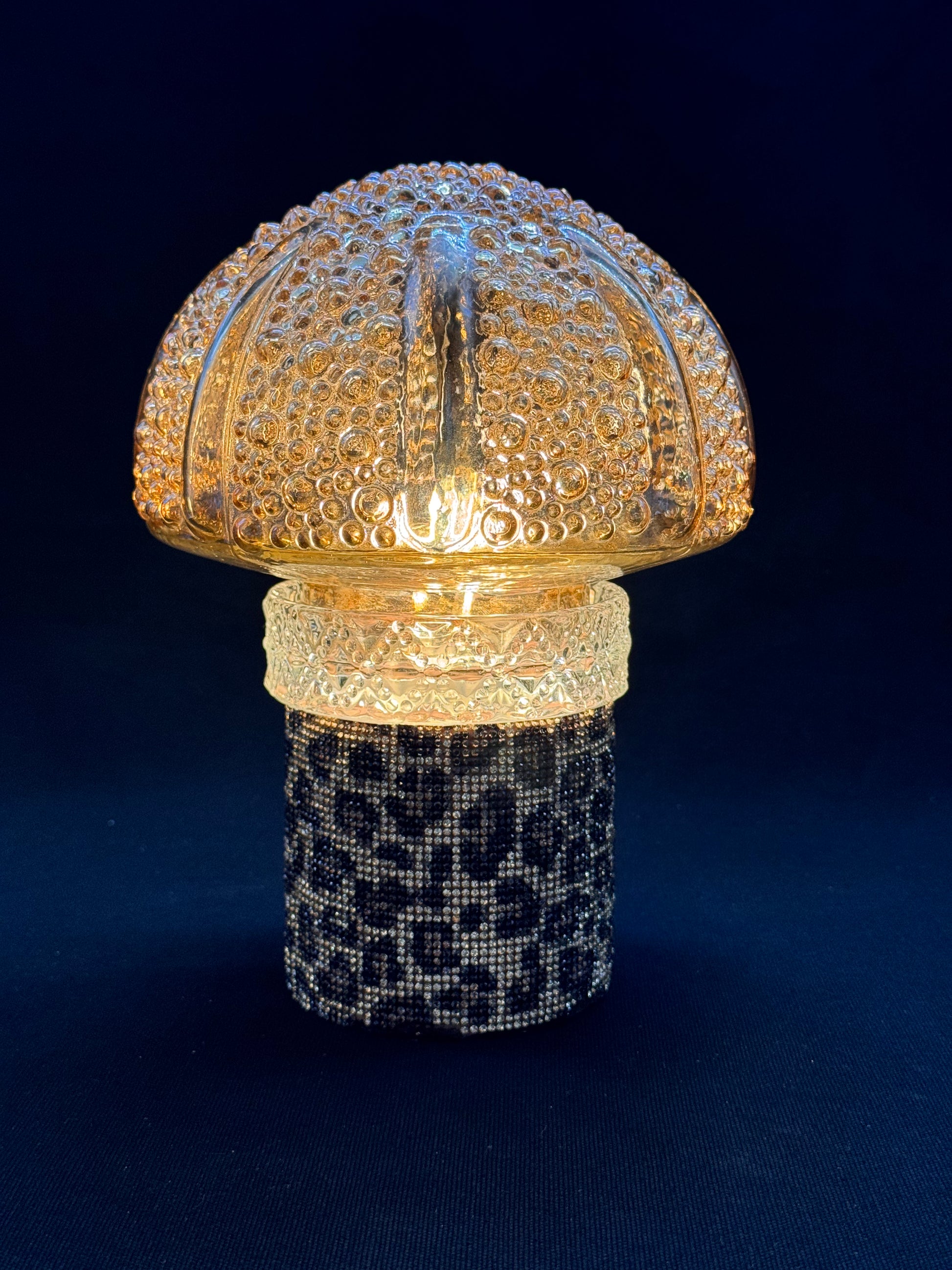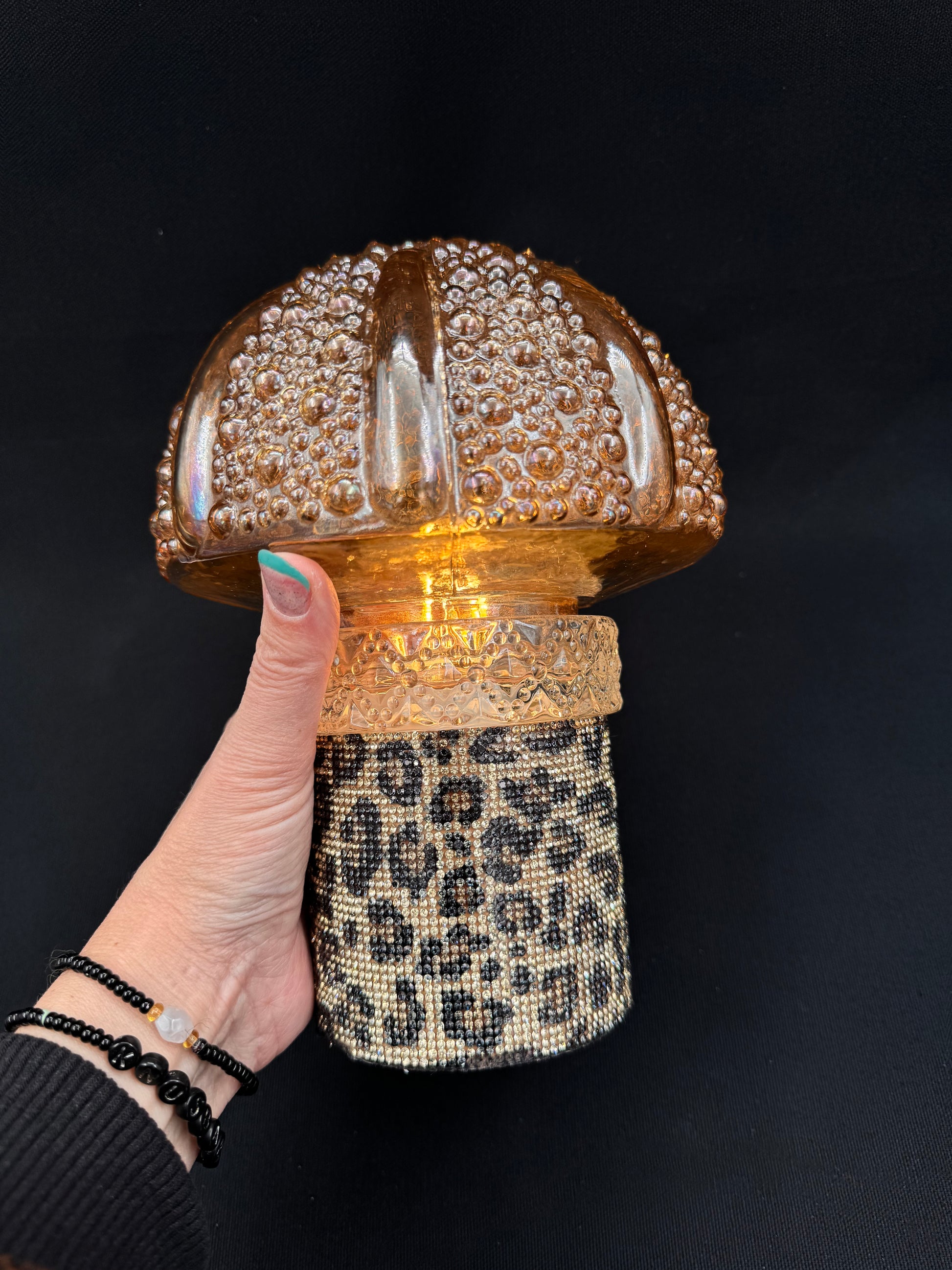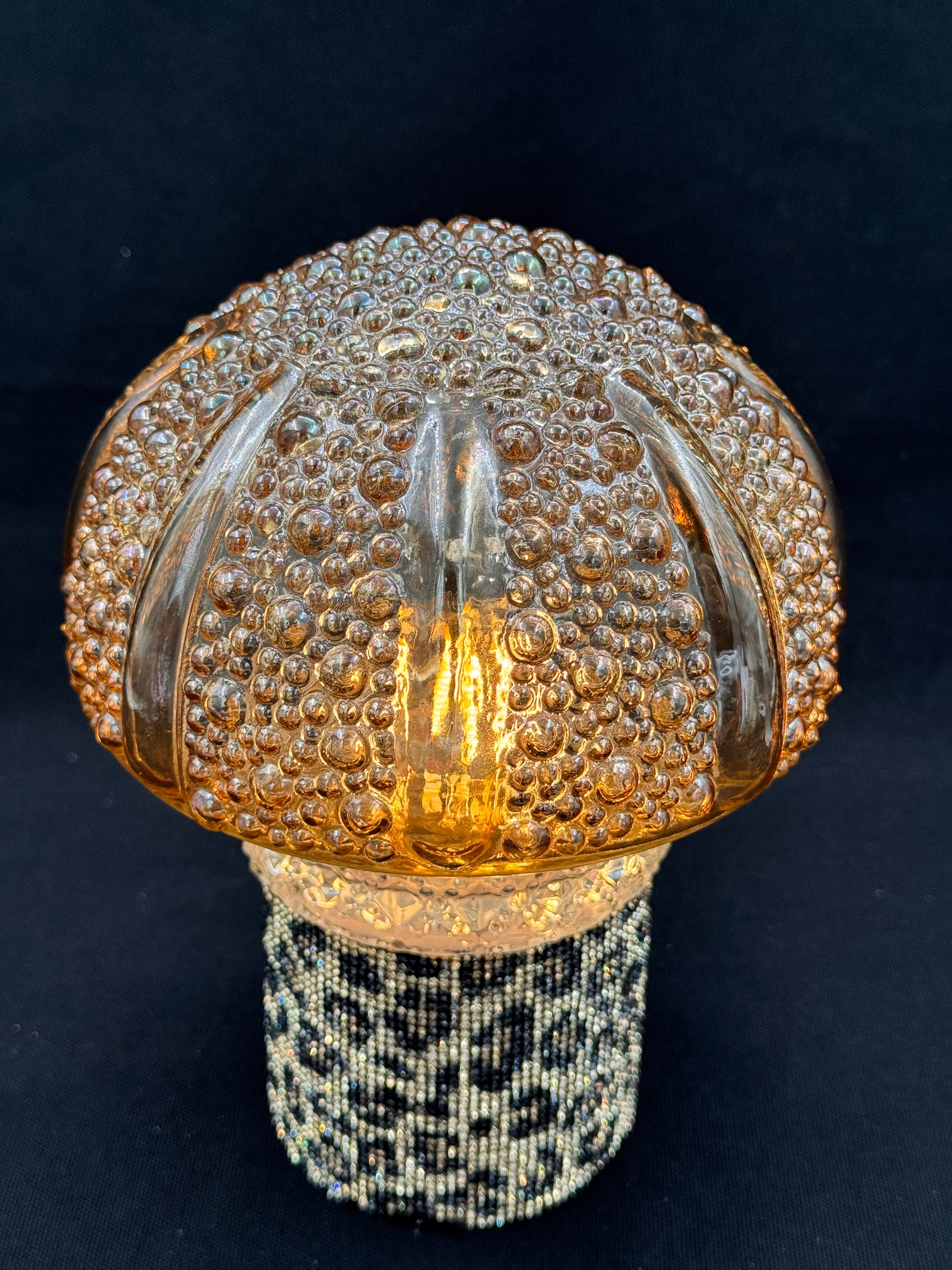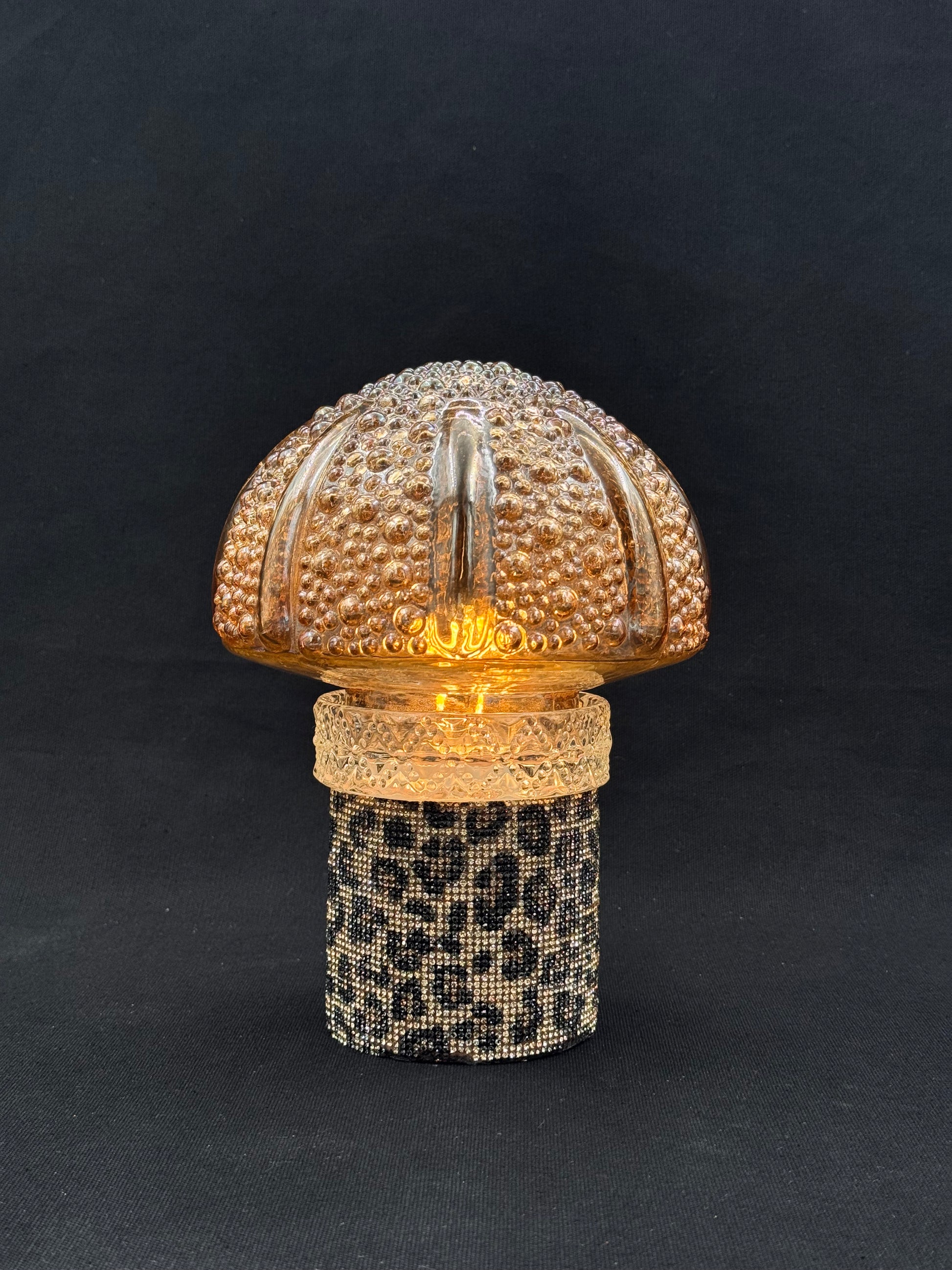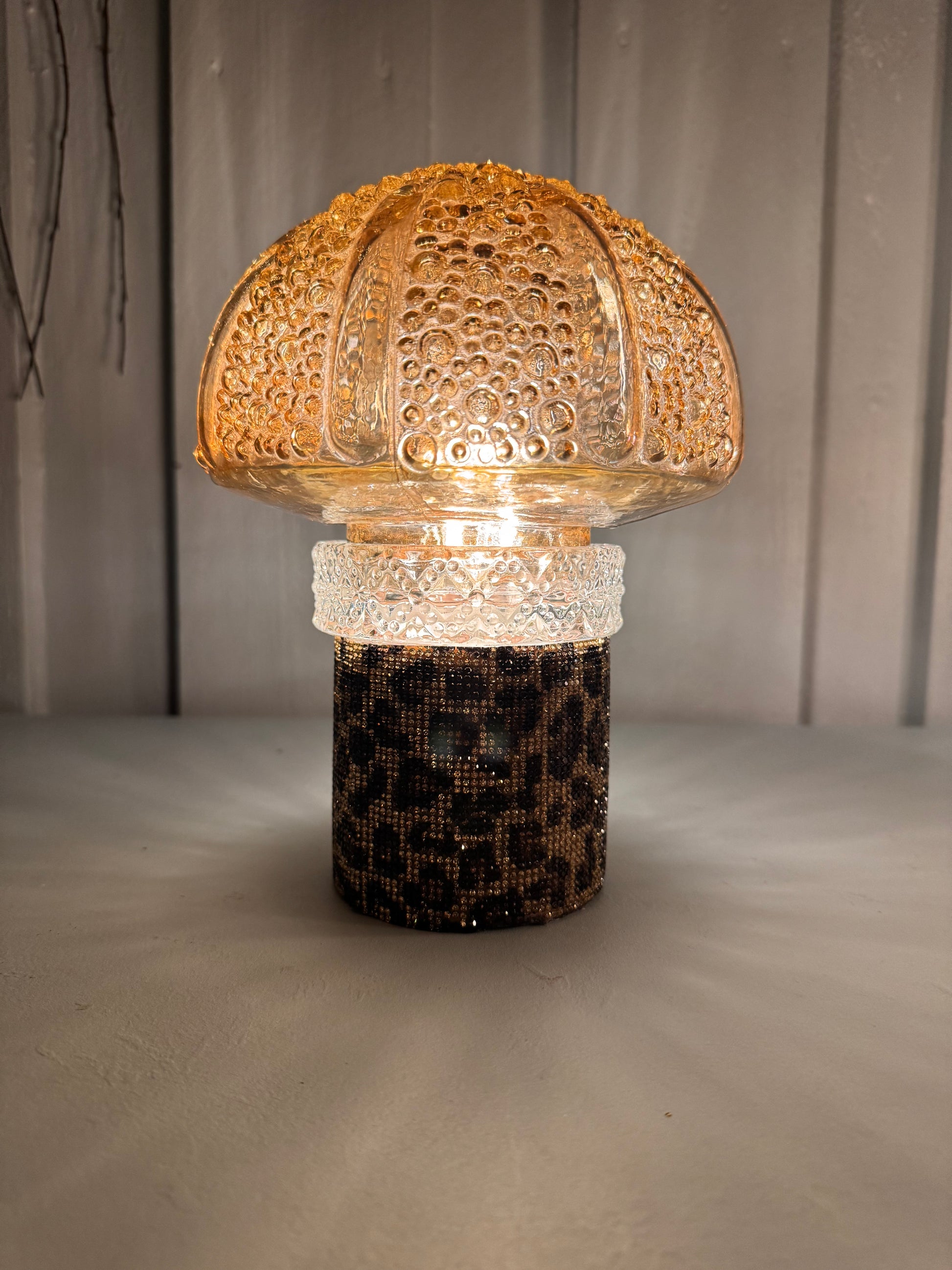 Denne dritkule batterilampen er en perfekt kombo av nytt og gammelt. Det trendy leomønsteret på foten står i stor kontrast til den gamle lampekuppelen i champagnefarge.