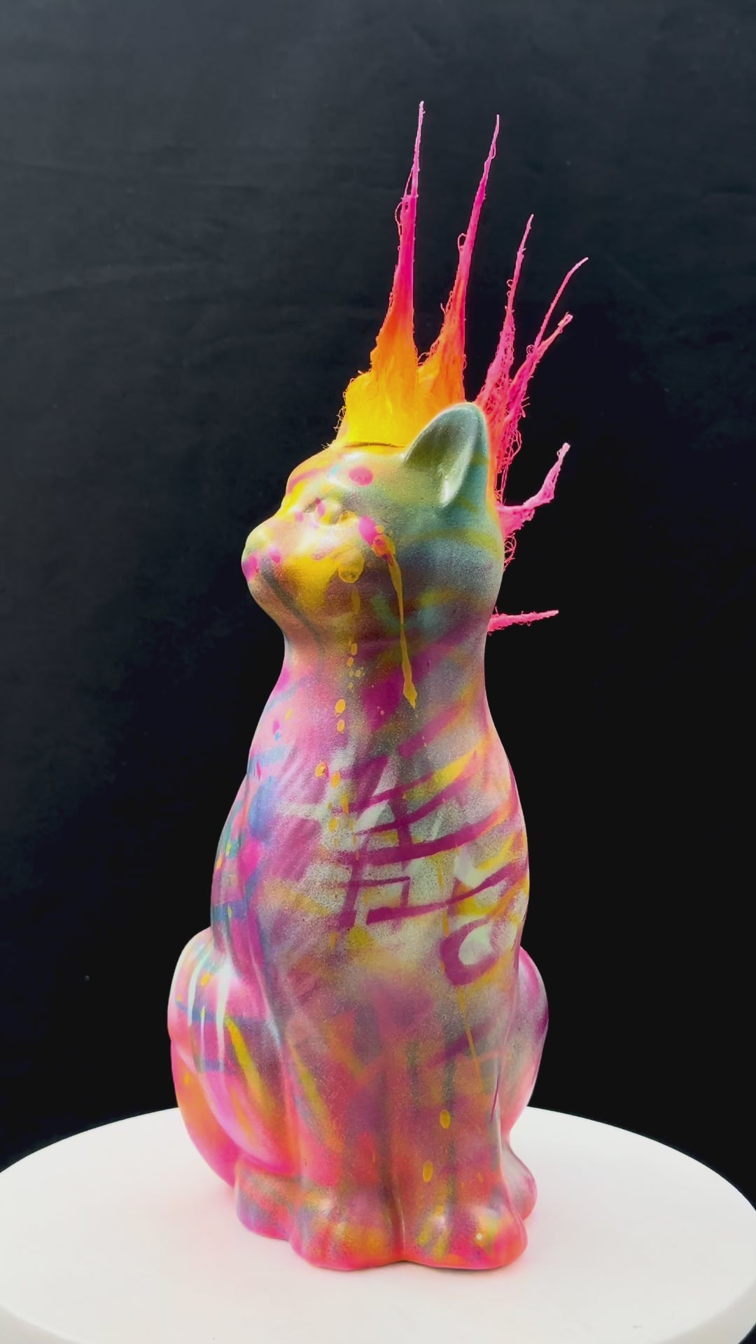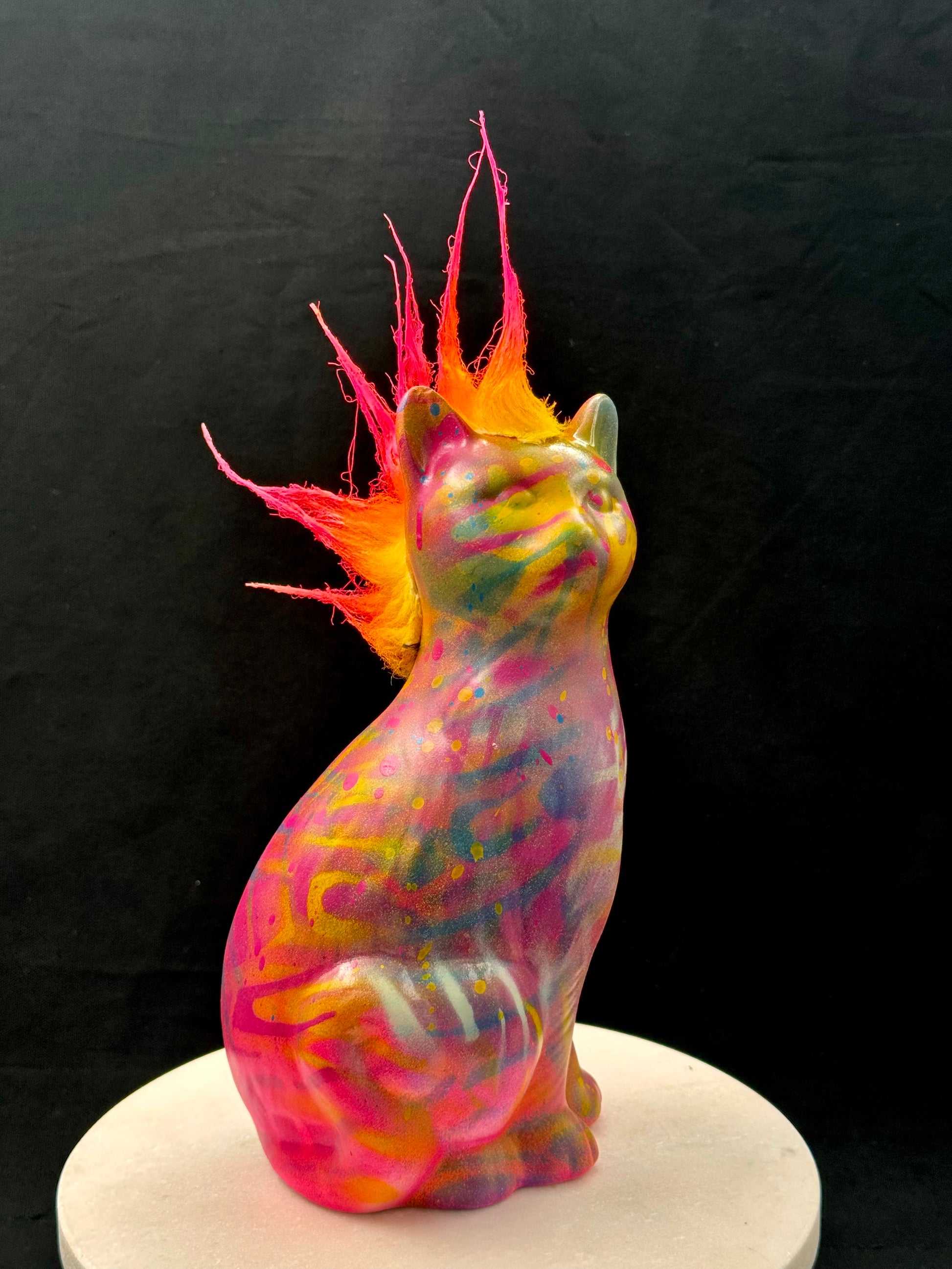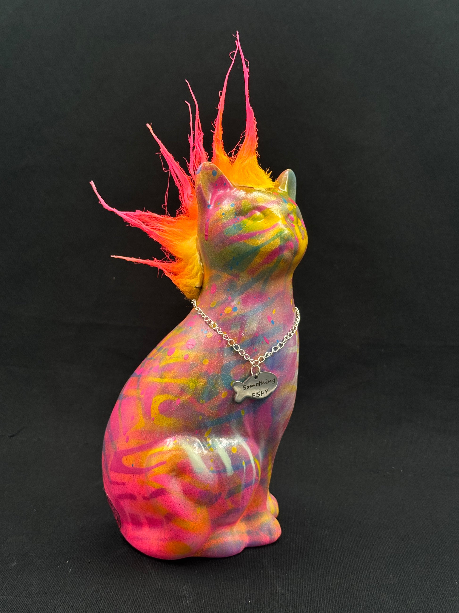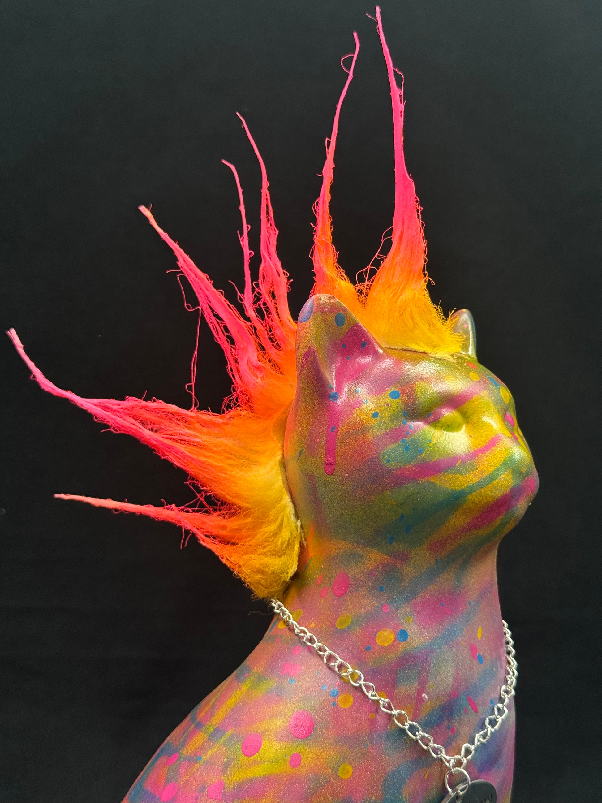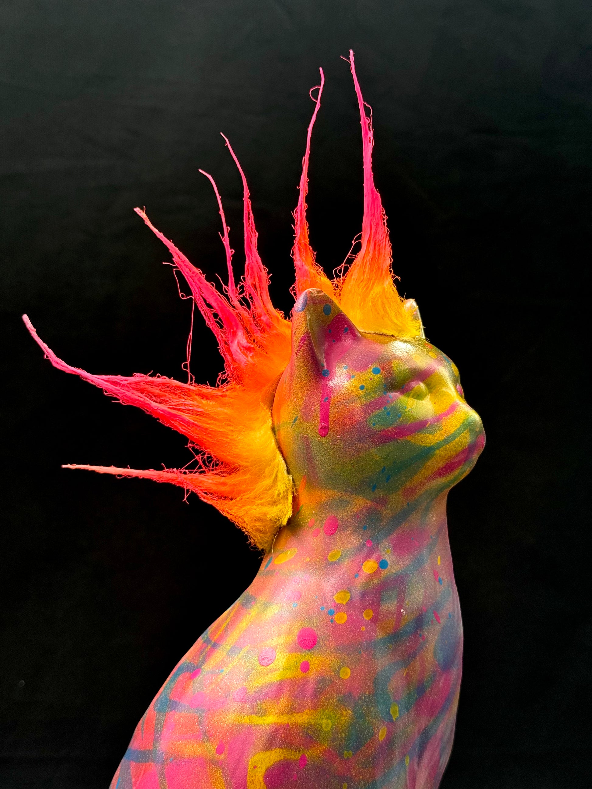 Denne porselenskattens har fått en rå makeover i ekte graffitistil. Med mohawk og attityde bringer den en unik miks av nostalgi og street inn i rommet. Perfekt som blikkfang i en moderne stue, på hylla eller som gave til noen med sans for det uventede.