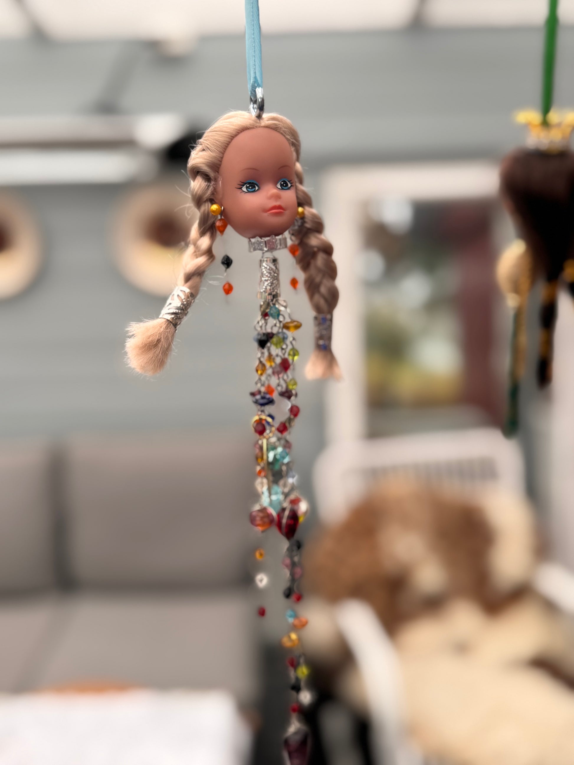 Gi juletreet ditt litt glamour og gøy med vår unike julekule laget av hodet til en vintage Barbiedukke! Hver kule er håndlaget og pyntet med luksuriøse stener, diamanter og glitrende vintage smykker – ingen er like, akkurat som julemagien selv.
