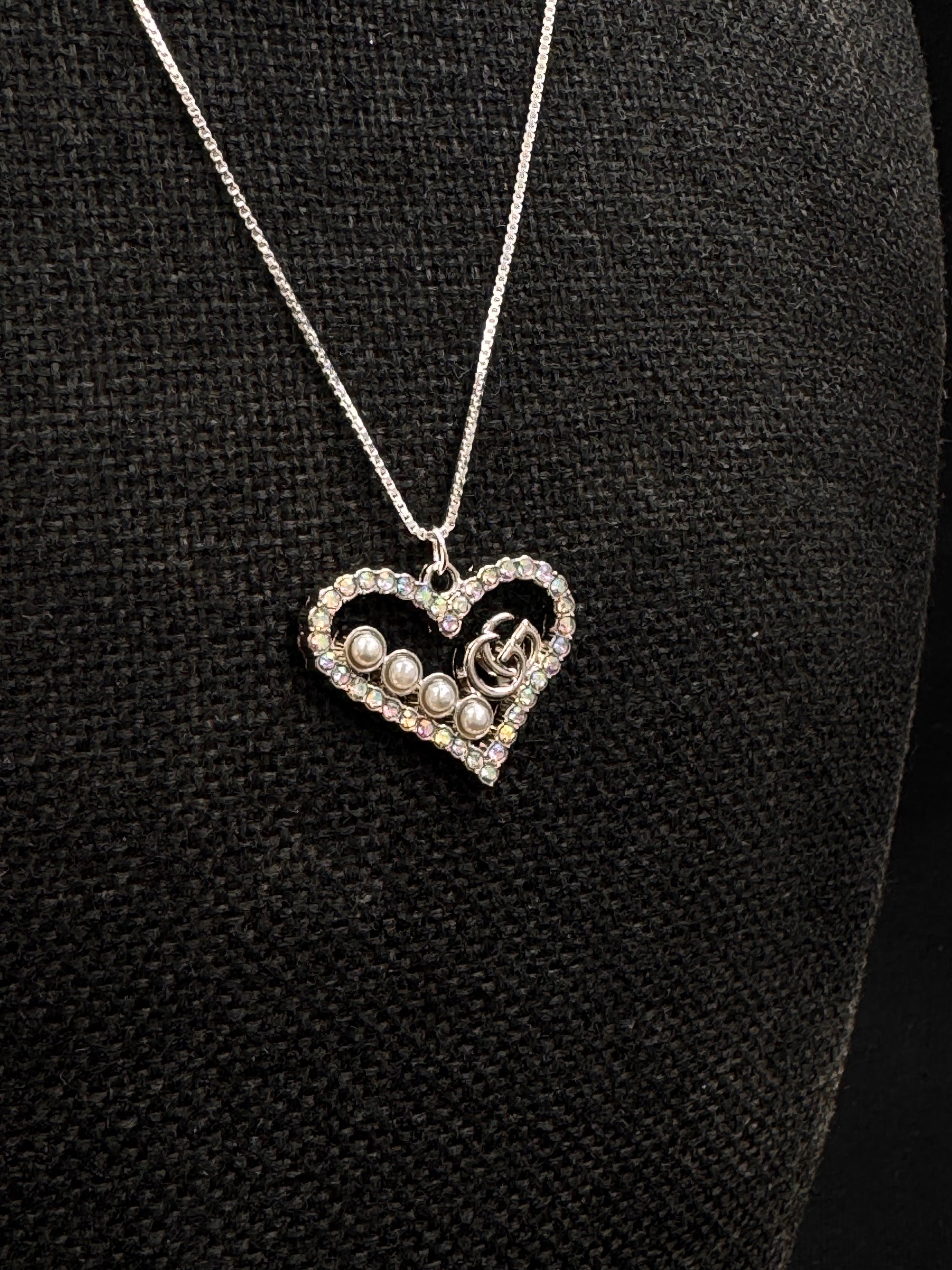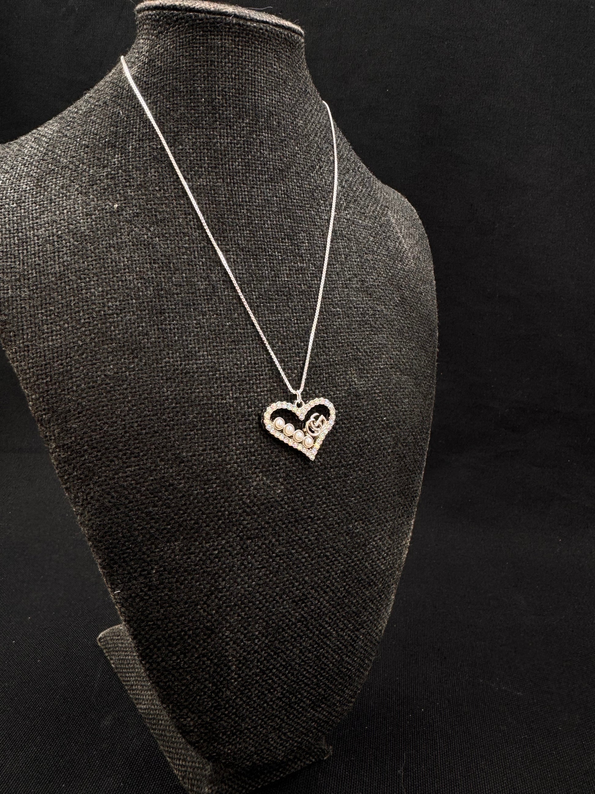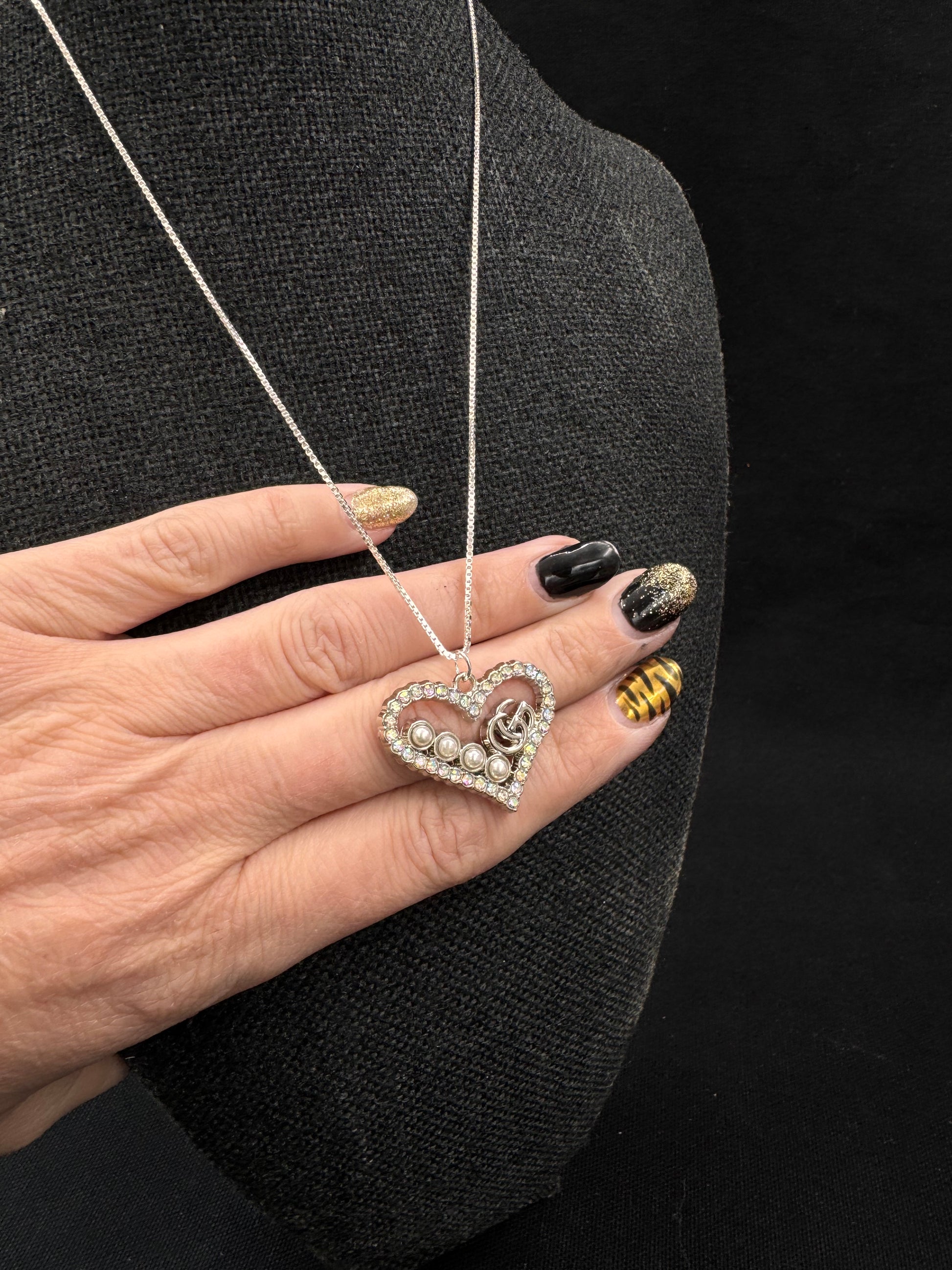 Vintage Gucci smykke stort hjerte med diamanter og GG i sølv