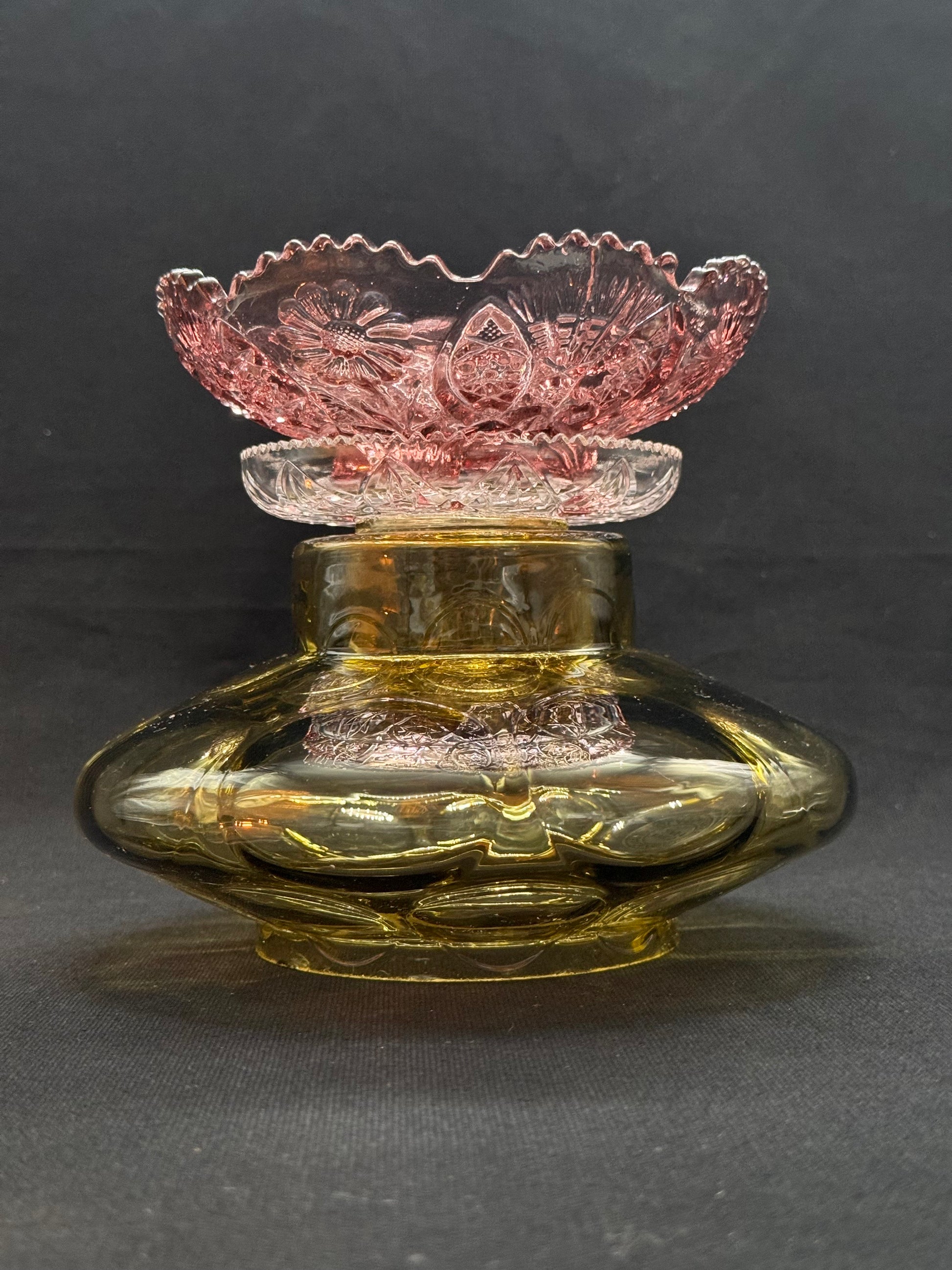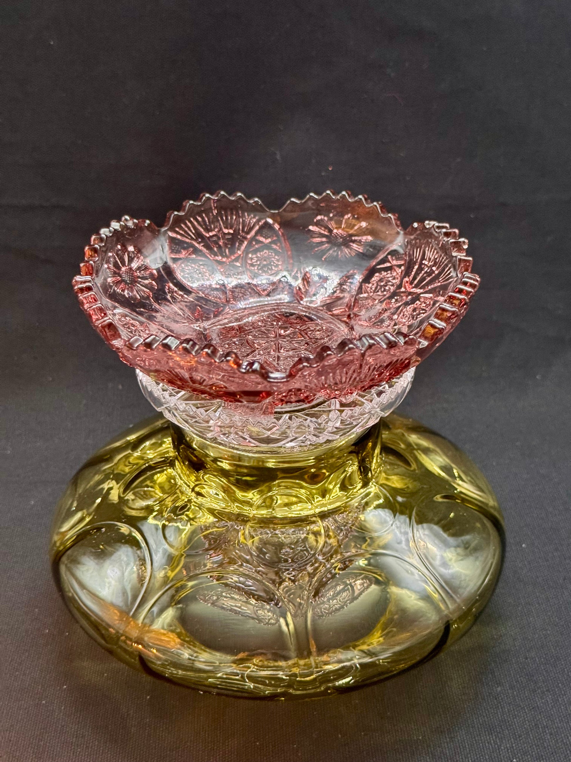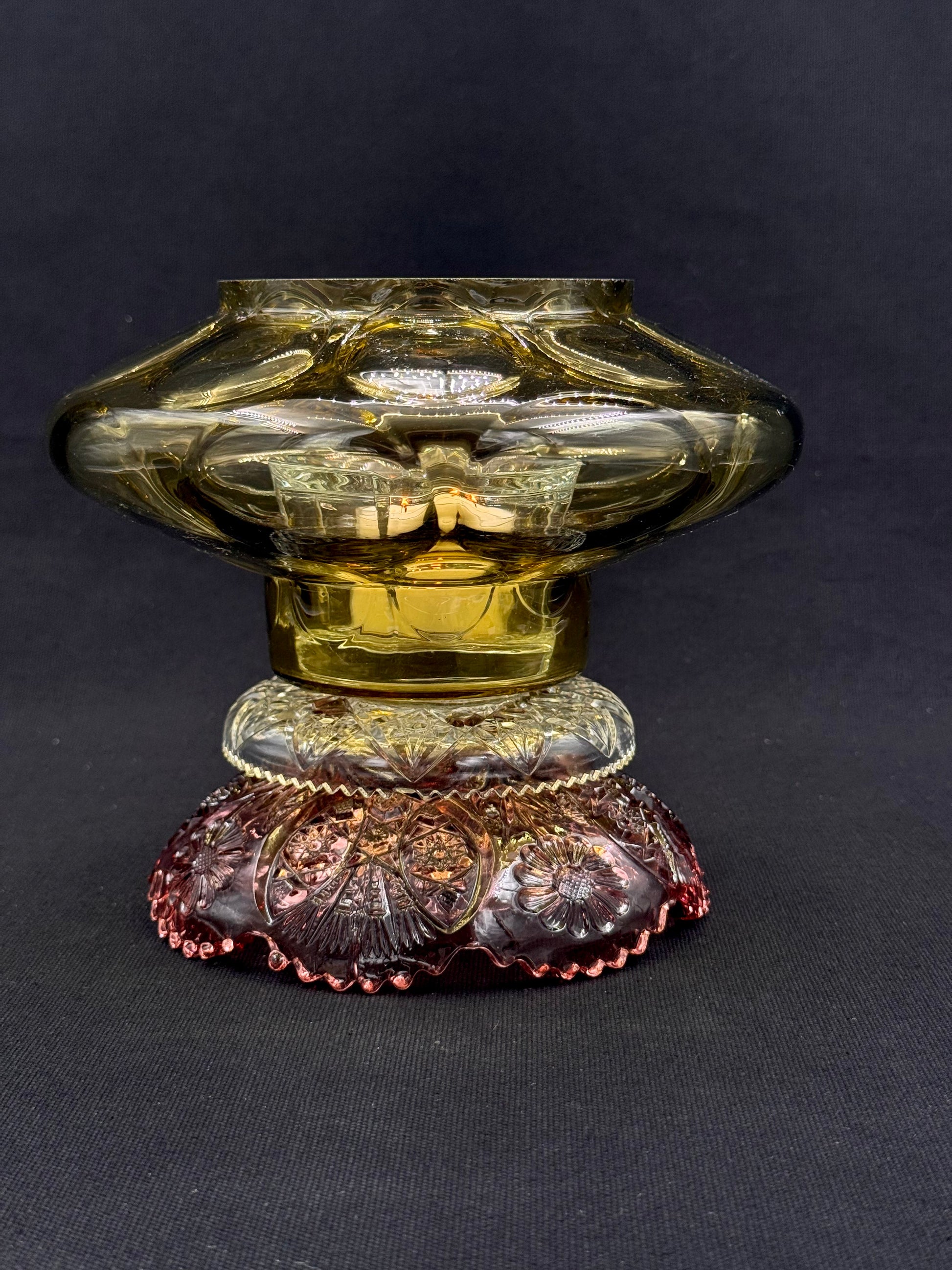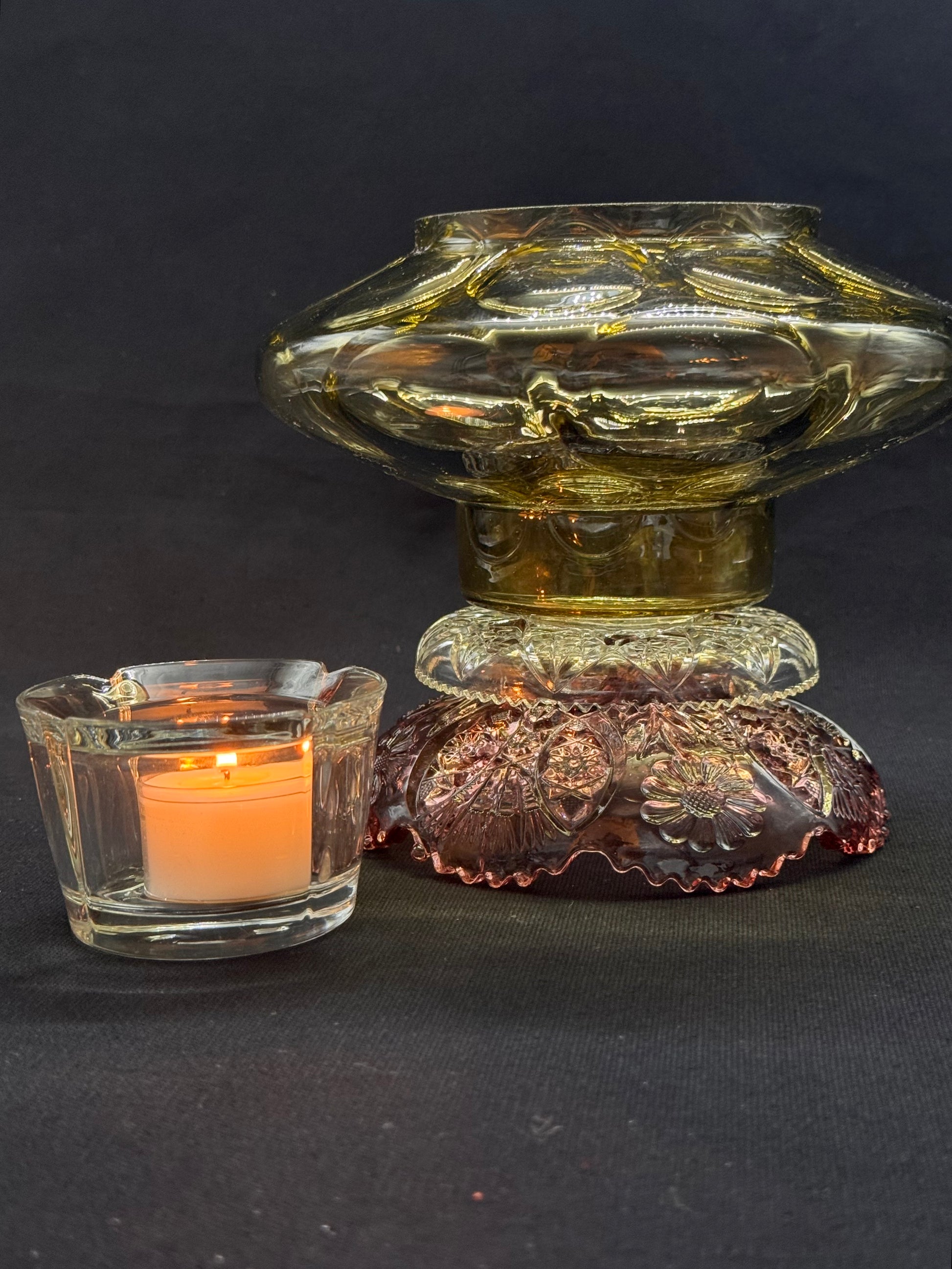 Helt unik lyslykt med en sjelden grønn kuppel. Foten er en lilla skål og kreasjonen kan brukes begge veier. En telysholder fra Rosendahl beskytter kuppelen.