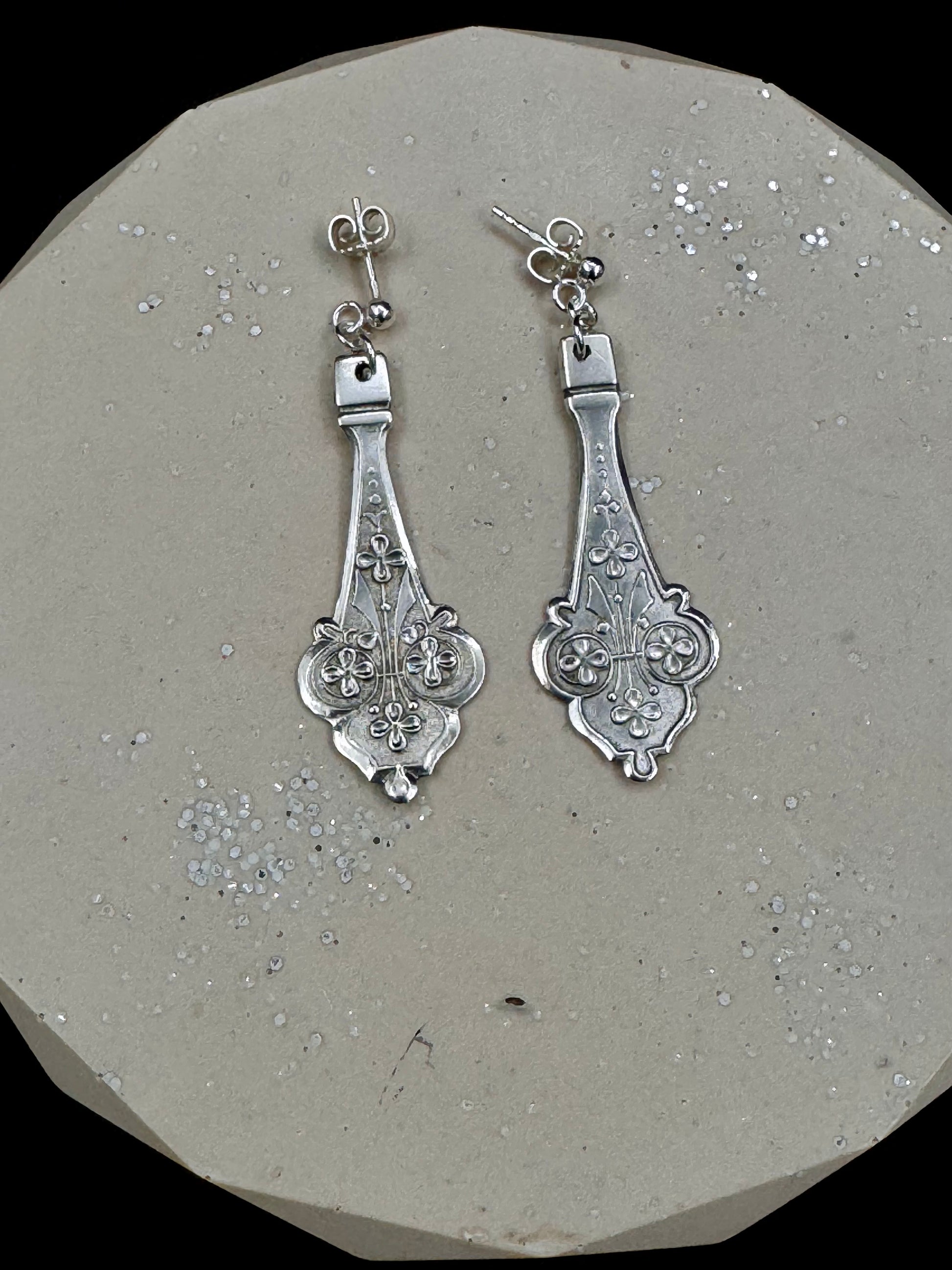 Vintage ørepynt i sølv, redesignet av tradisjonelt sølvbestikk.