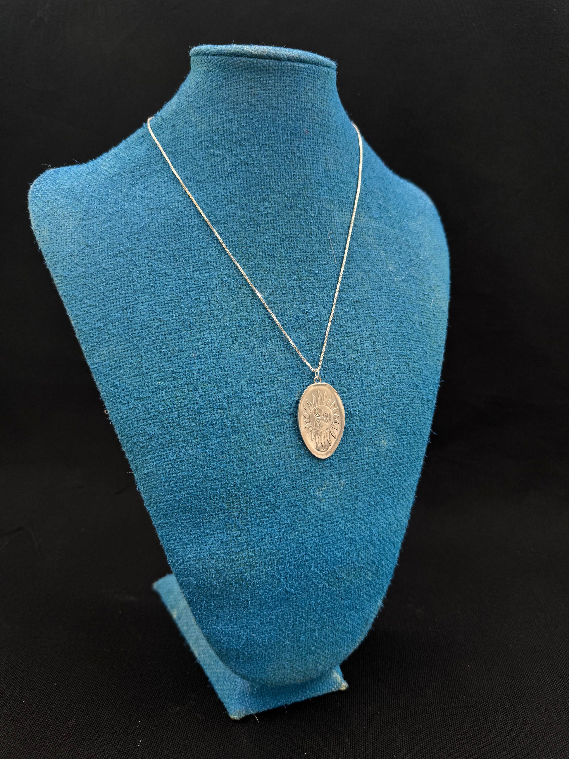 Kjede er i sølv og kjøpt inn fra vår Gullsmed leverandør. Lengde på kjede: 42 cm. Vi har også kjede i 50 cm hvis du ønsker litt lenger lengde.