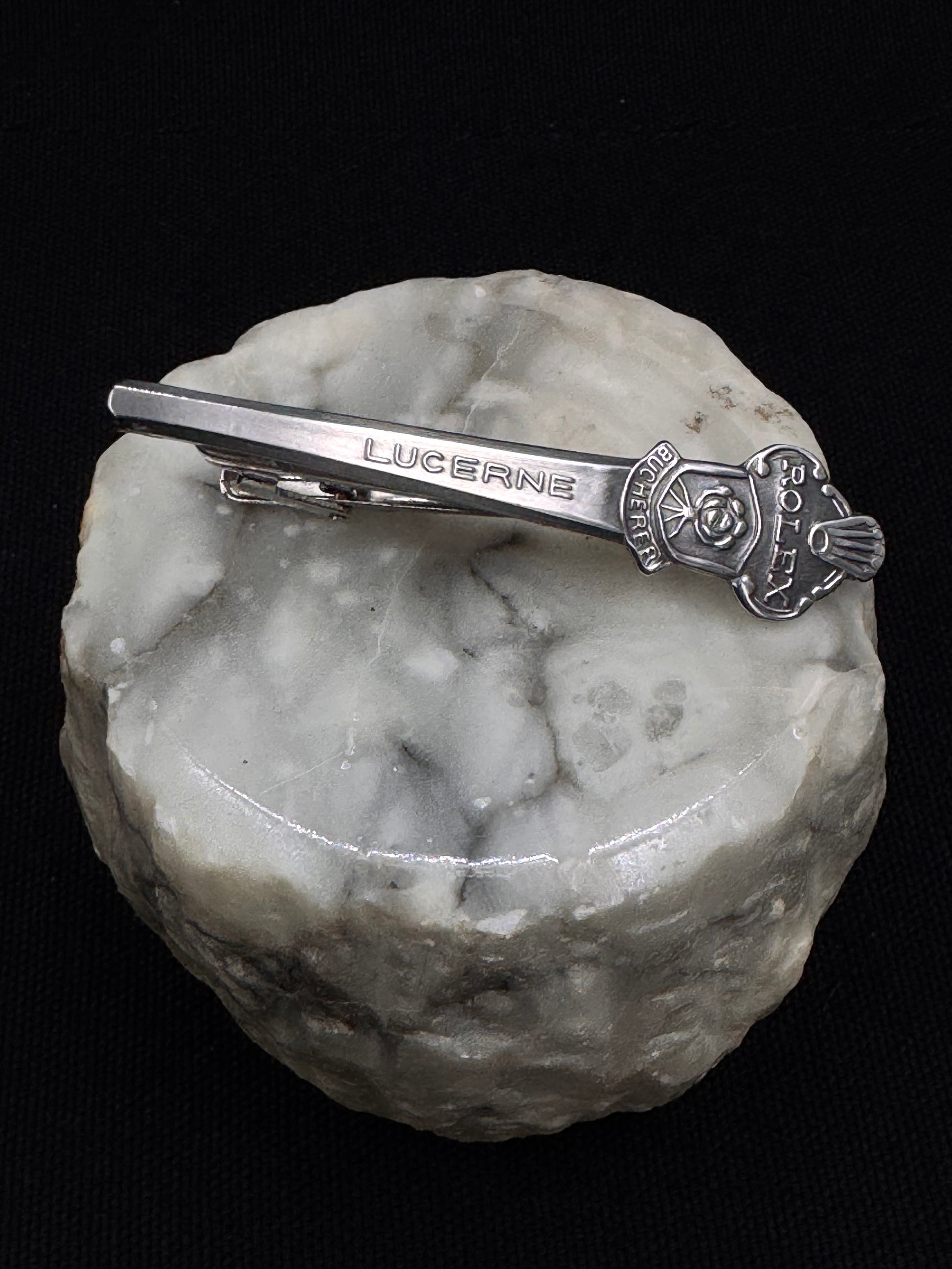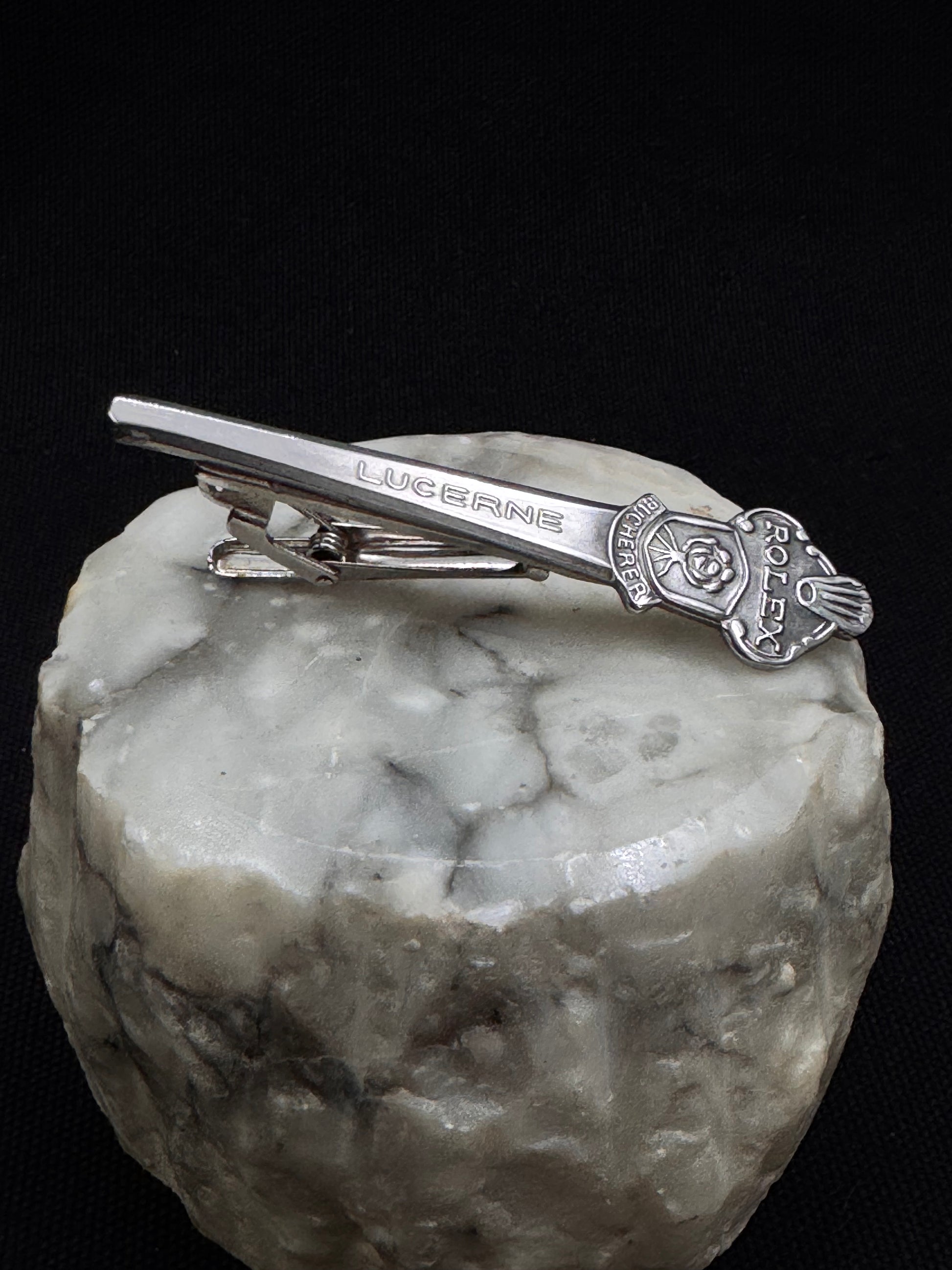 Rolex slipsnål i stål en tid mellom 1970 og dags dato. Før fikk alle som kjøpte en Rolex klokke med en suvenirskje. Byen klokken er kjøpt i står på håndtaket.