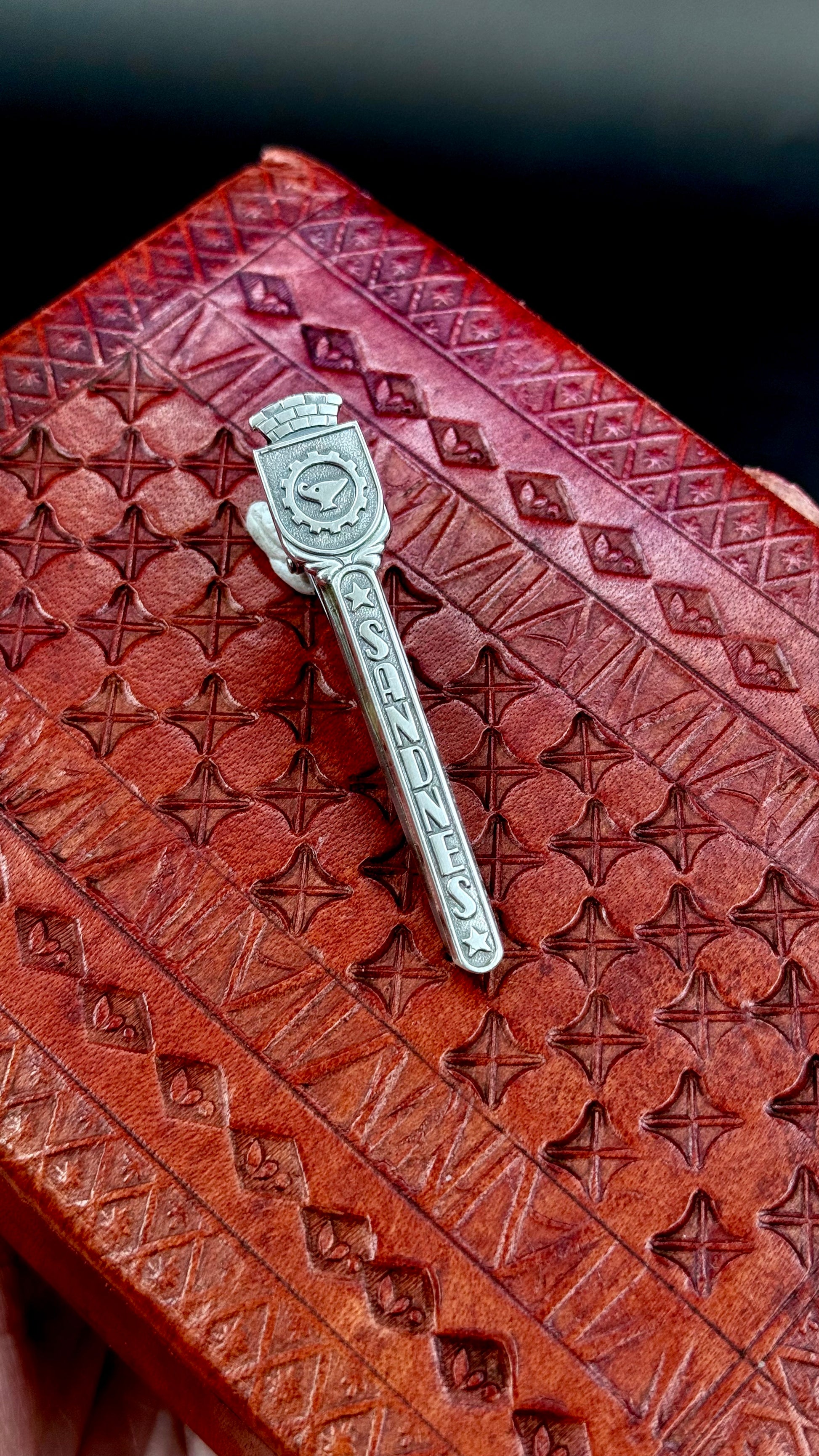 Vintage slipsnål i sølv, redesignet av tradisjonelt sølvbestikk.
