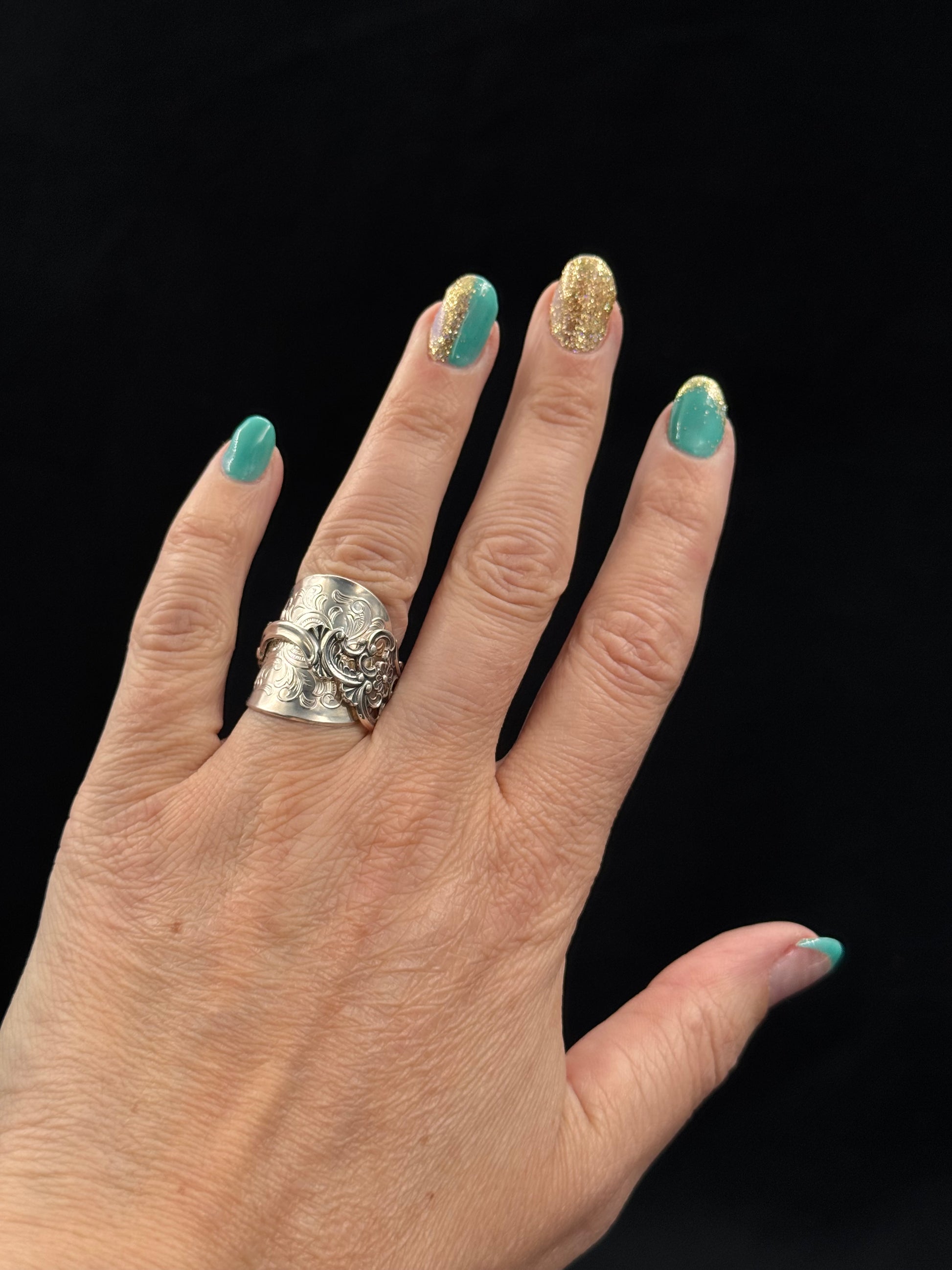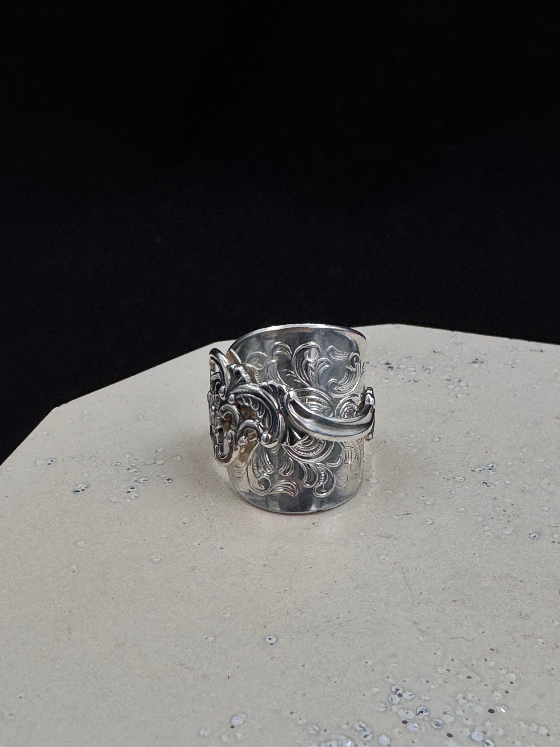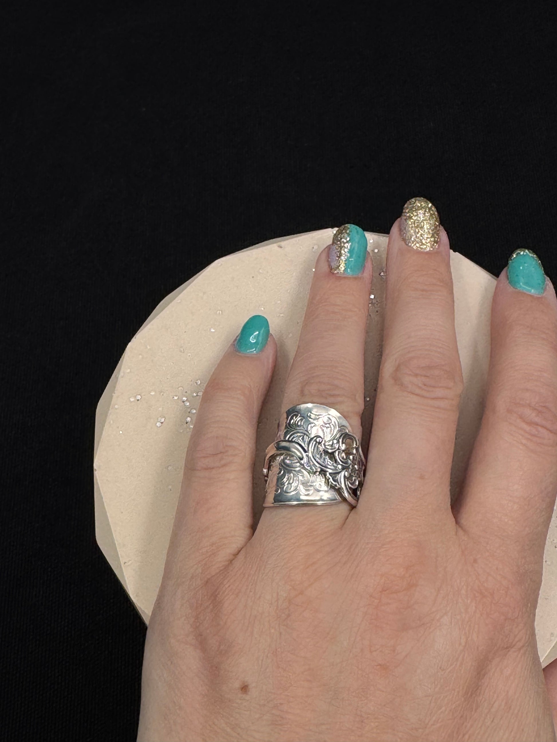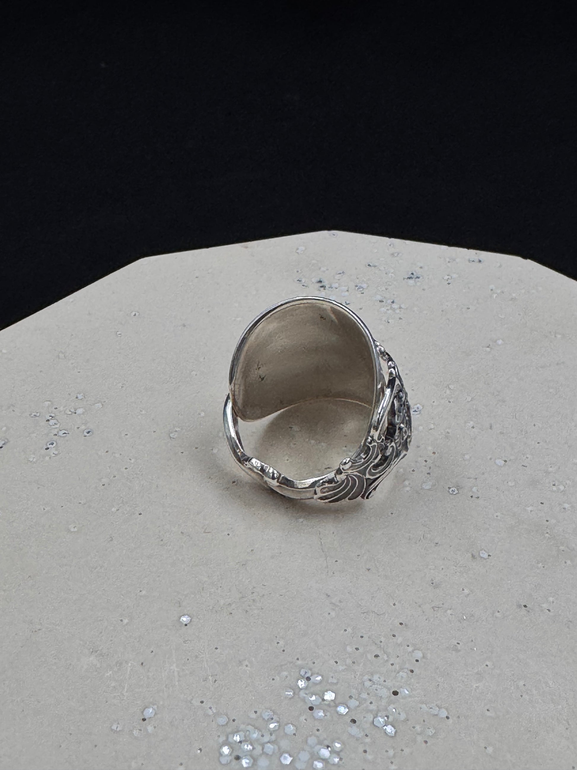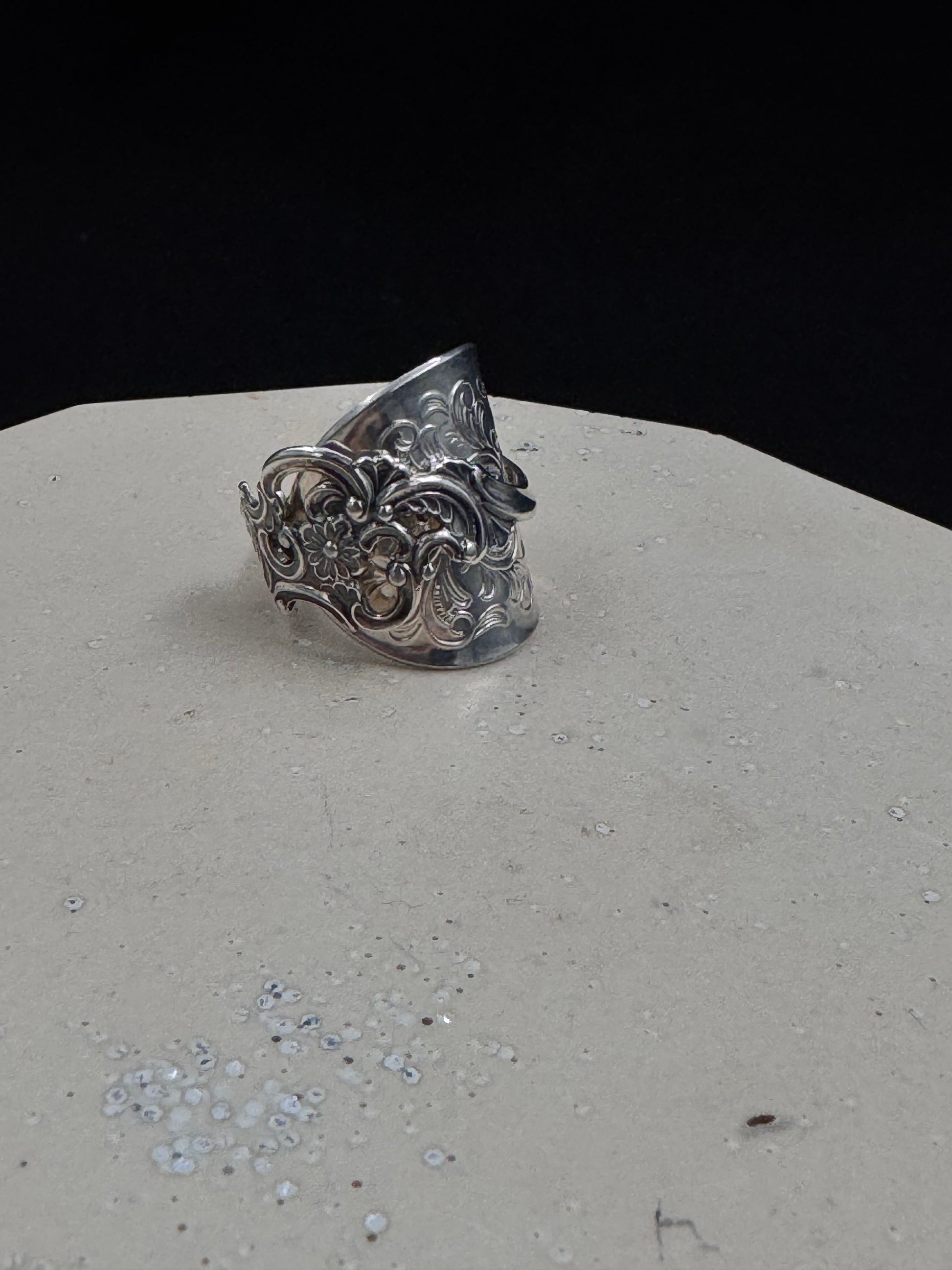 Vintage sølvring redesignet av tradisjonelt sølvbestikk.