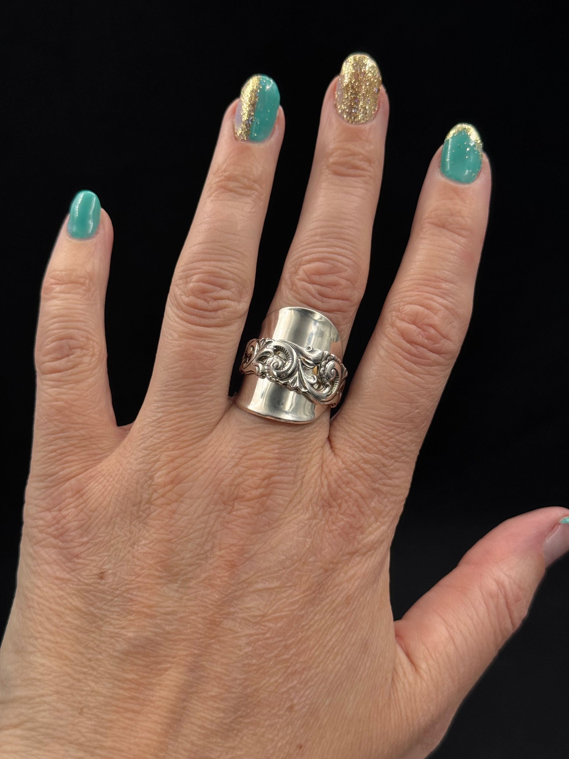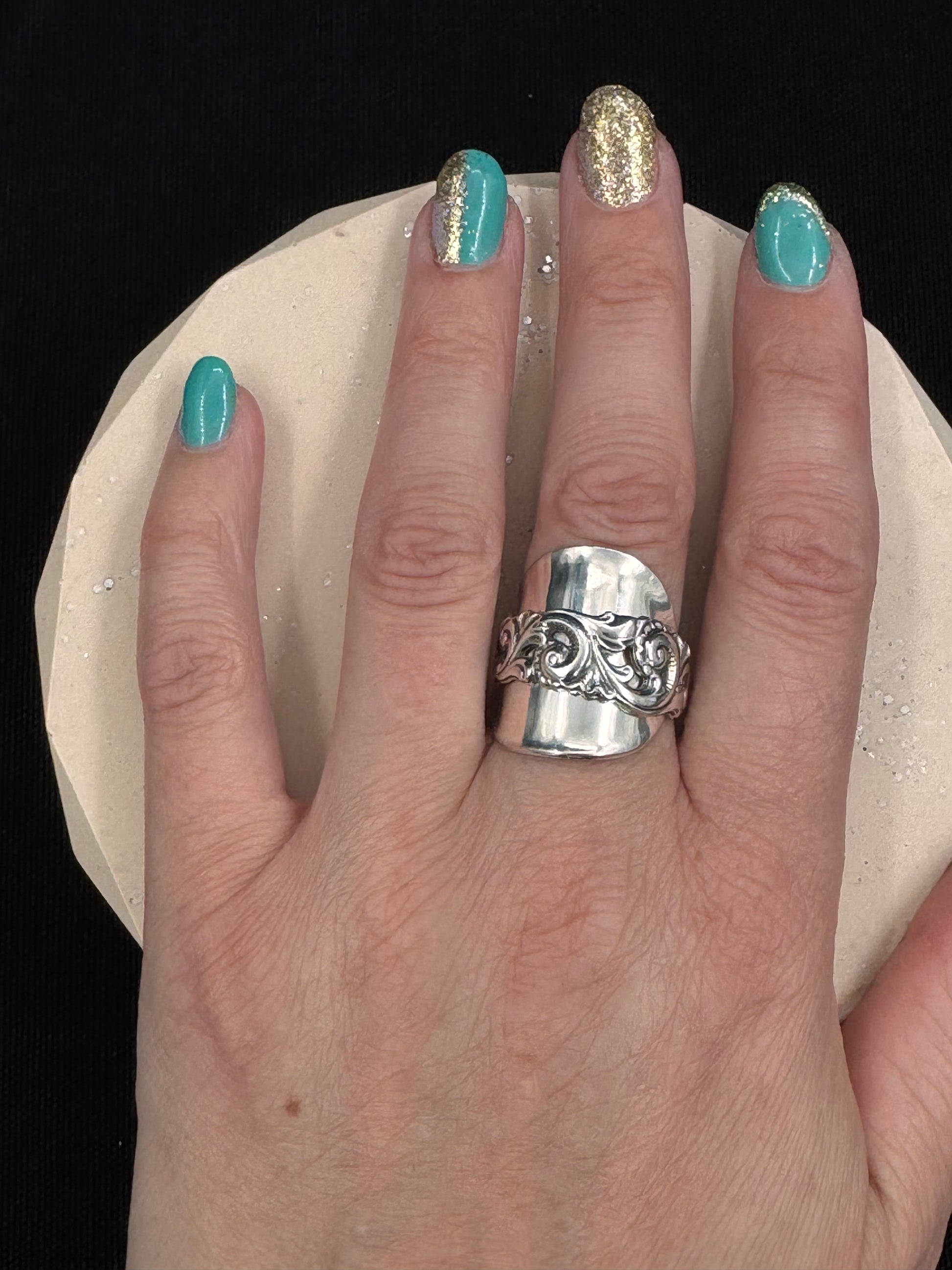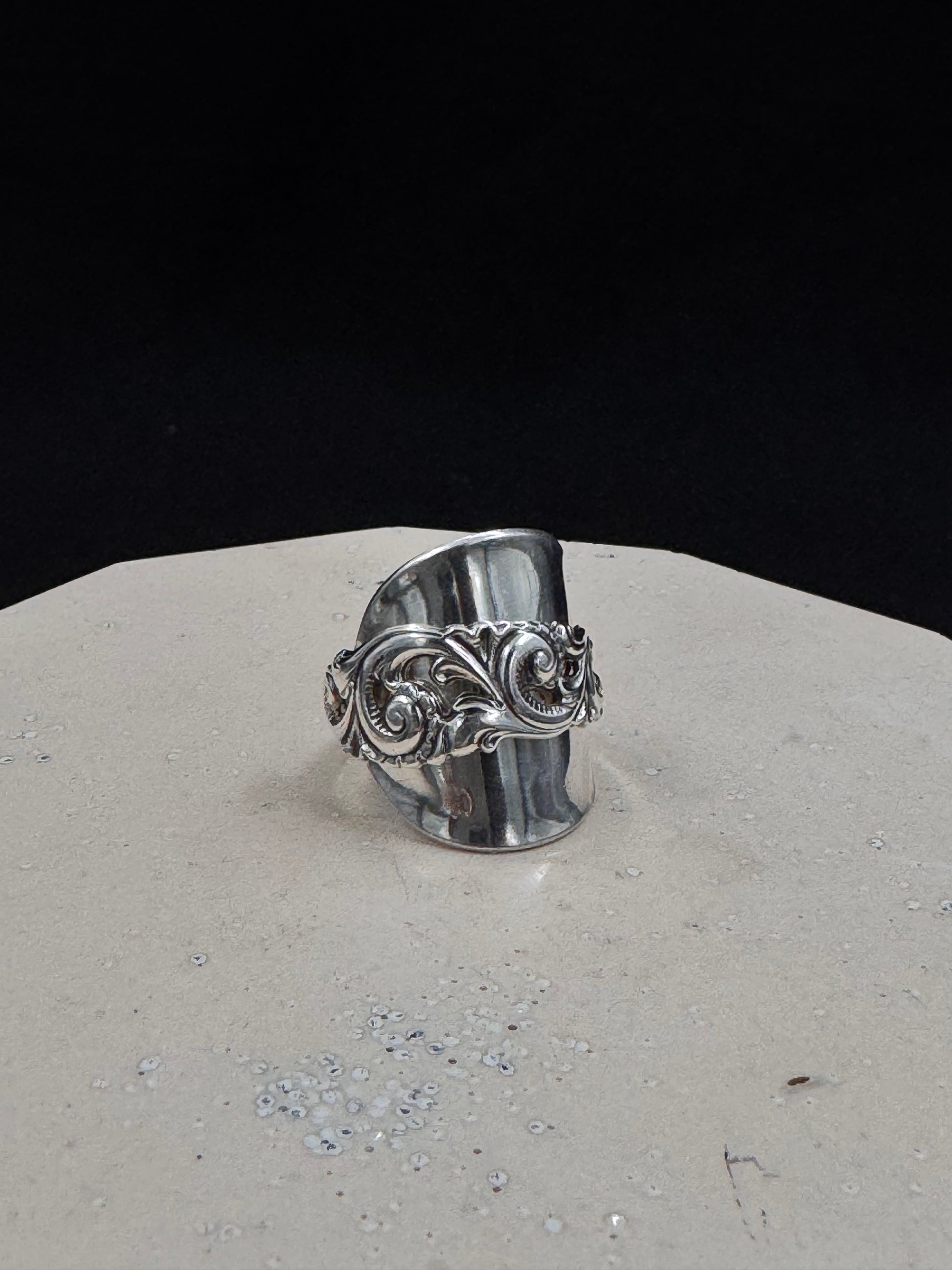 Vintage sølvring redesignet av tradisjonelt sølvbestikk.