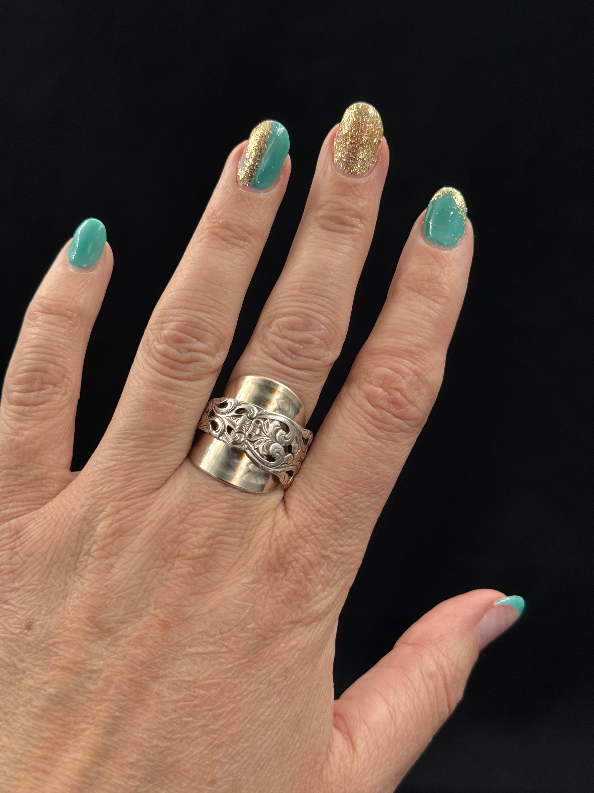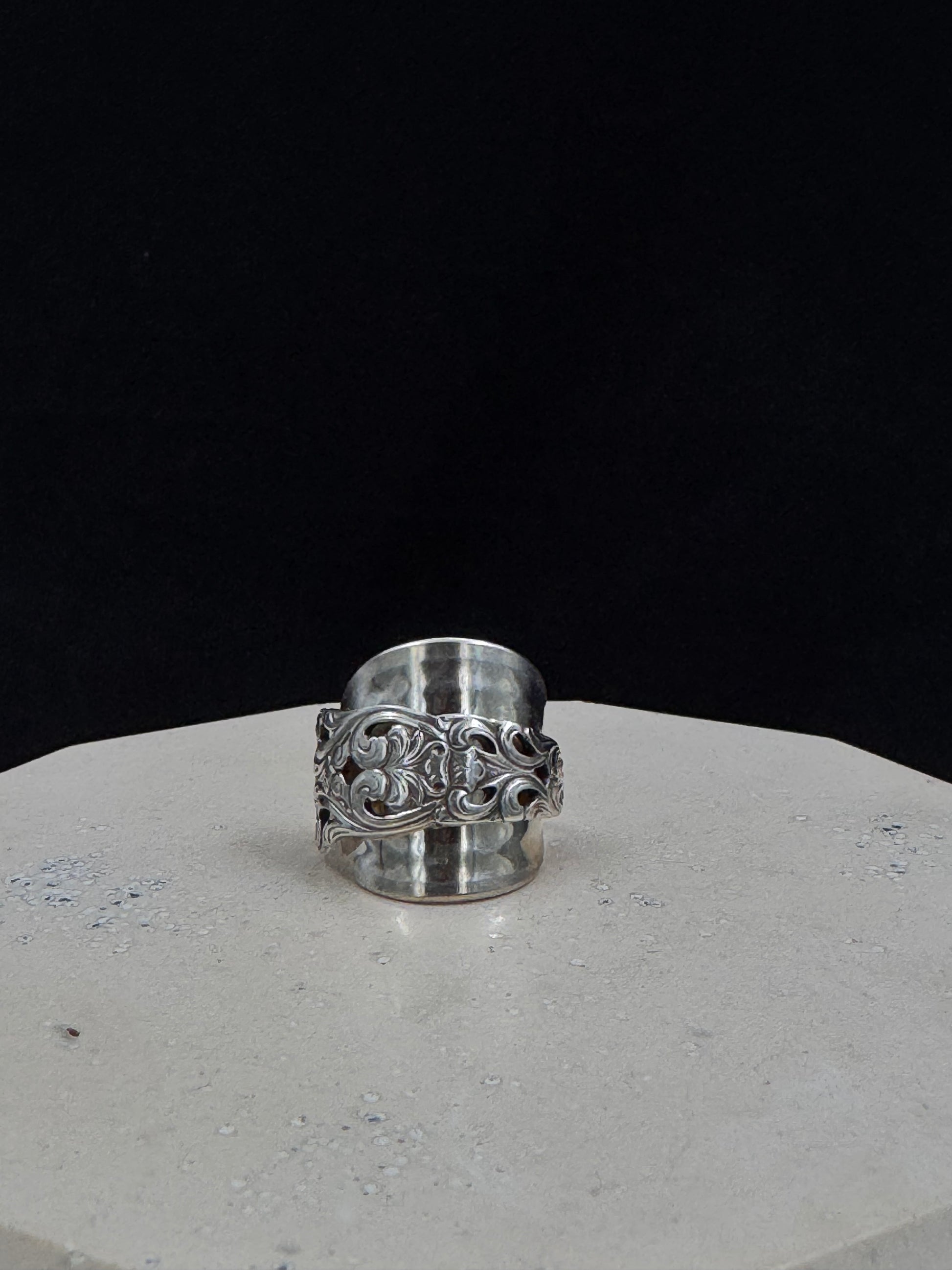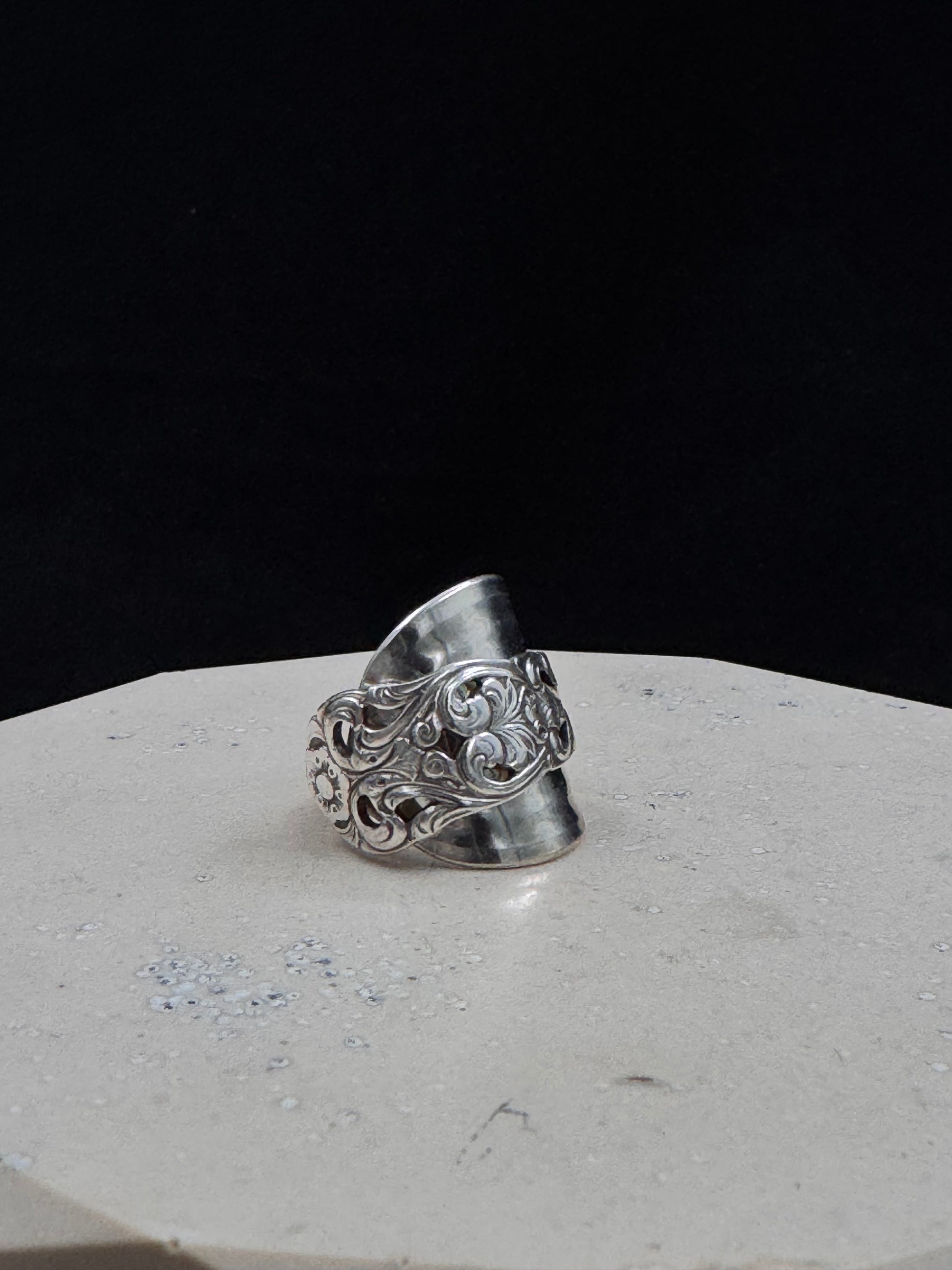 Vintage sølvring redesignet av tradisjonelt sølvbestikk.