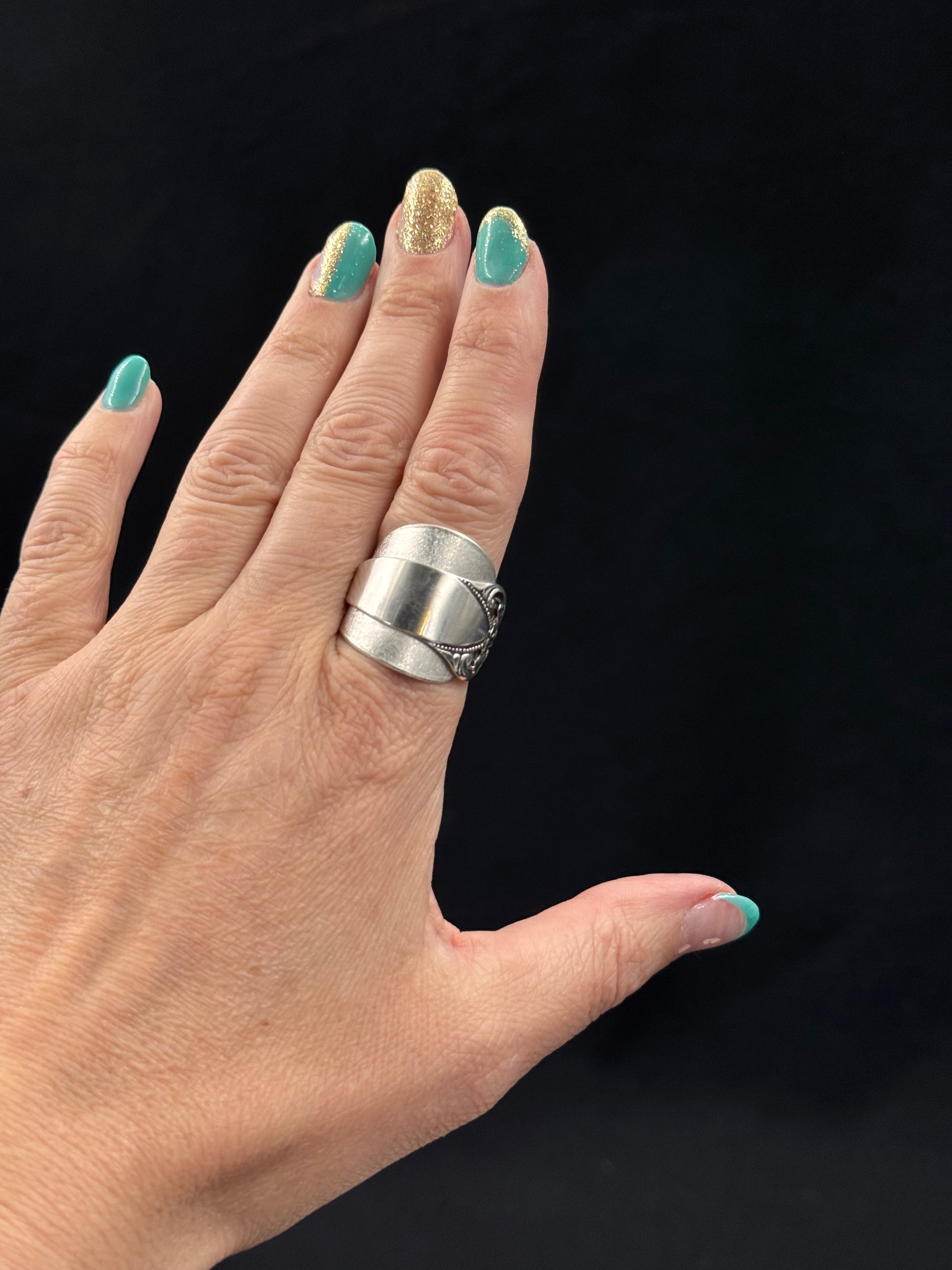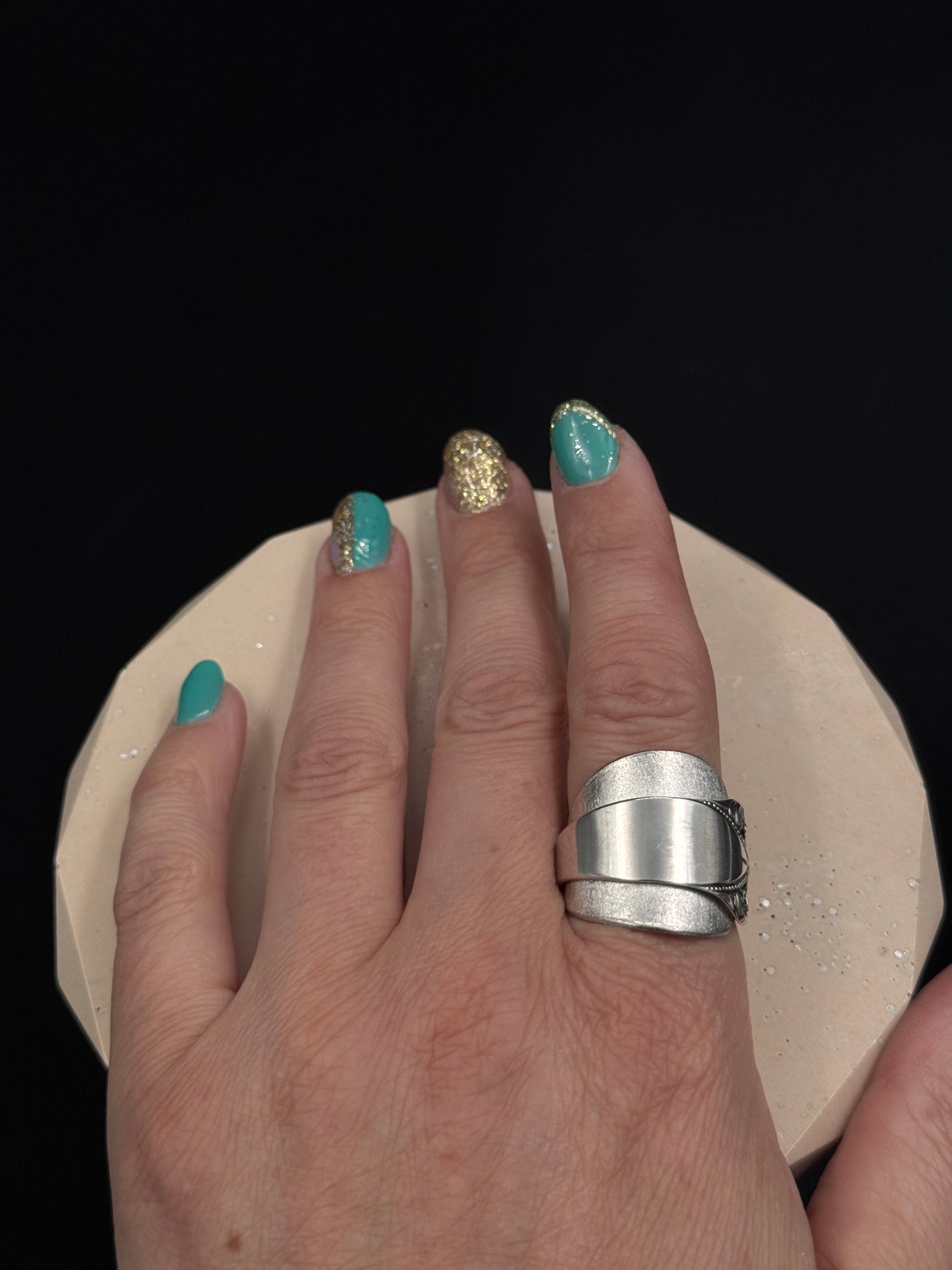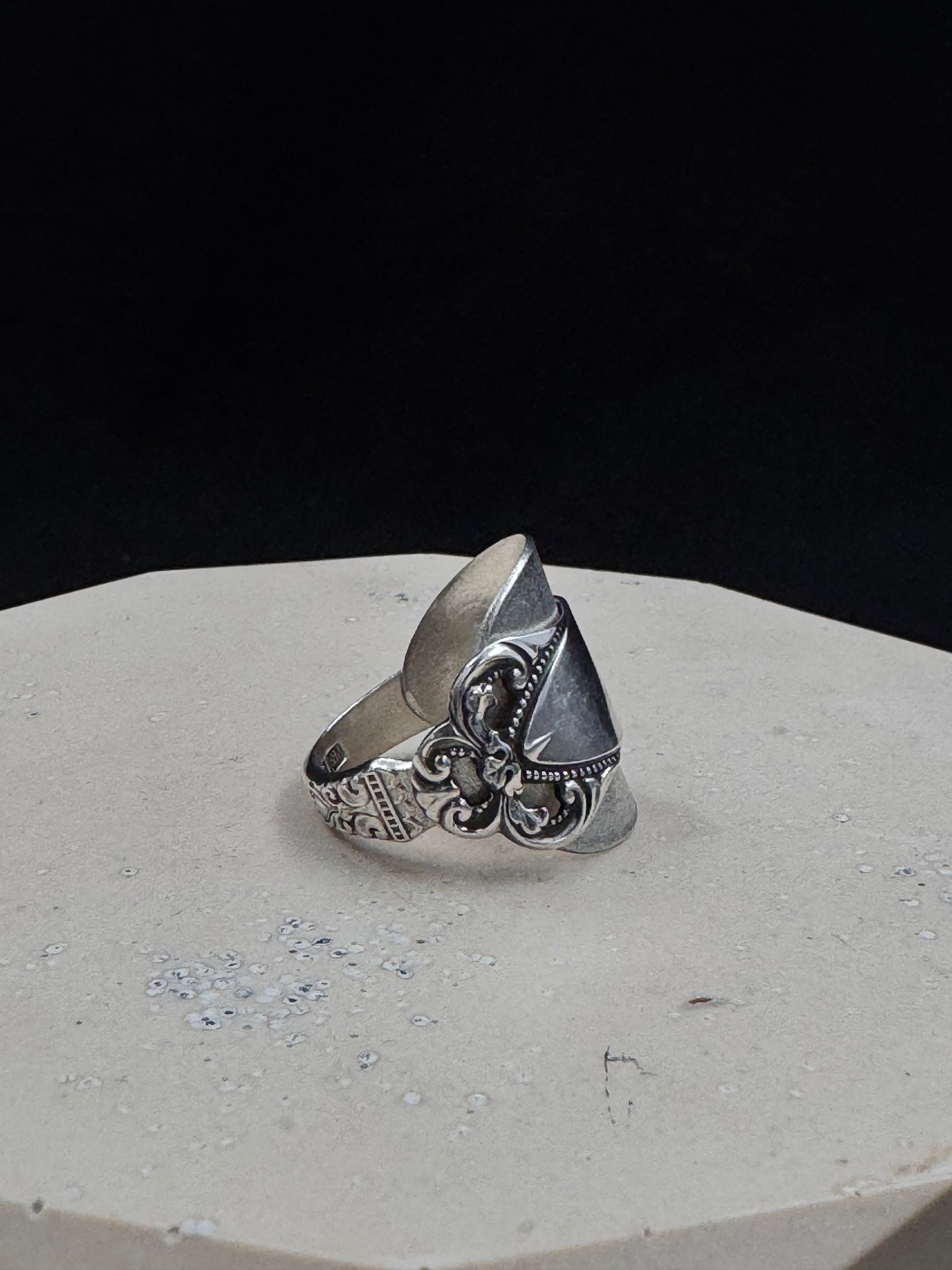 Vintage sølvring redesignet av tradisjonelt sølvbestikk.