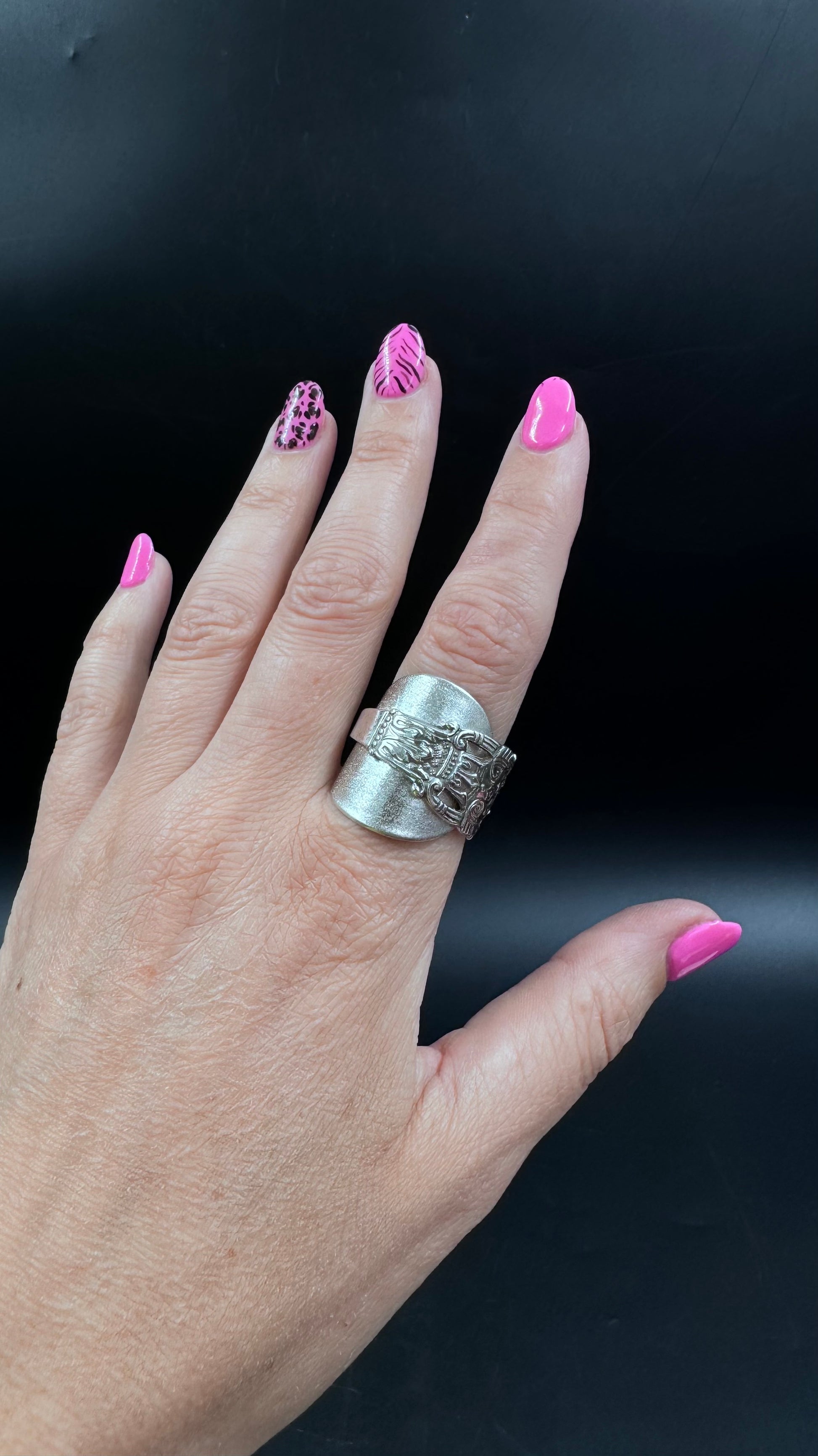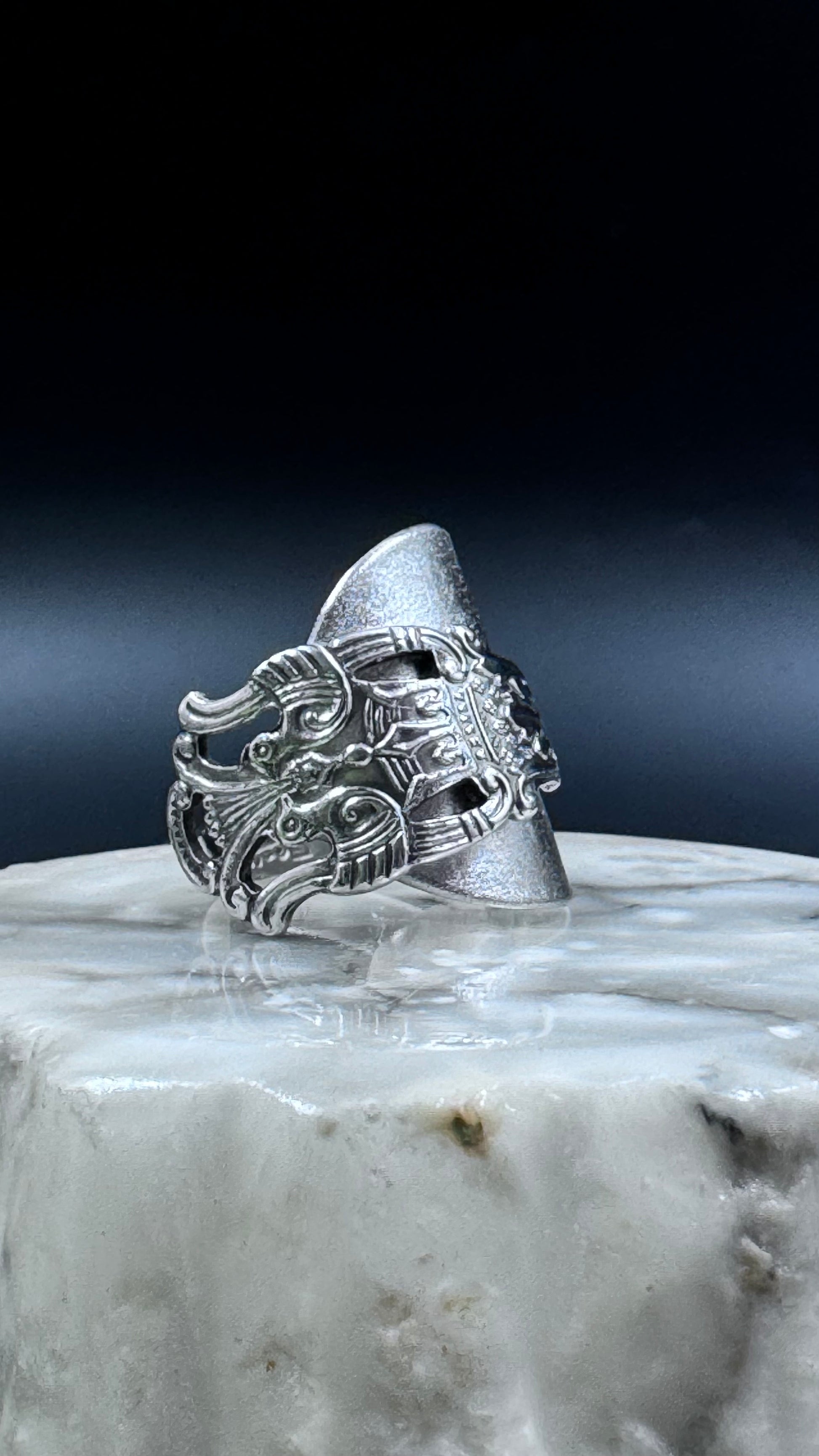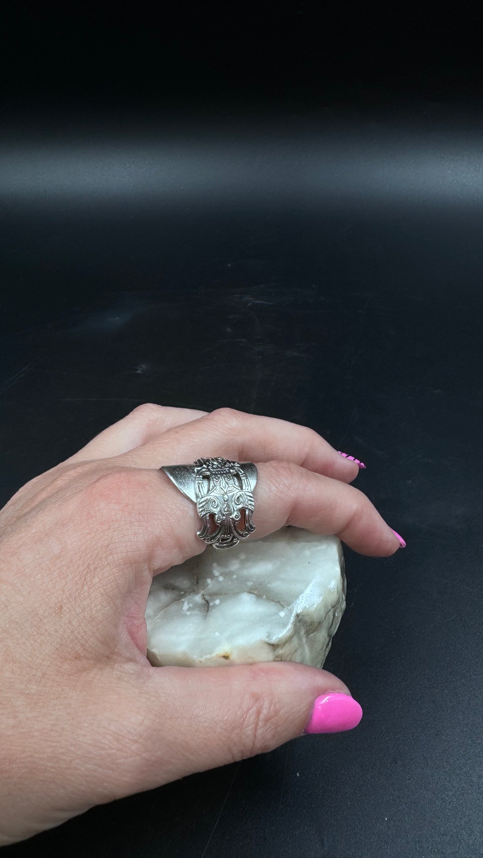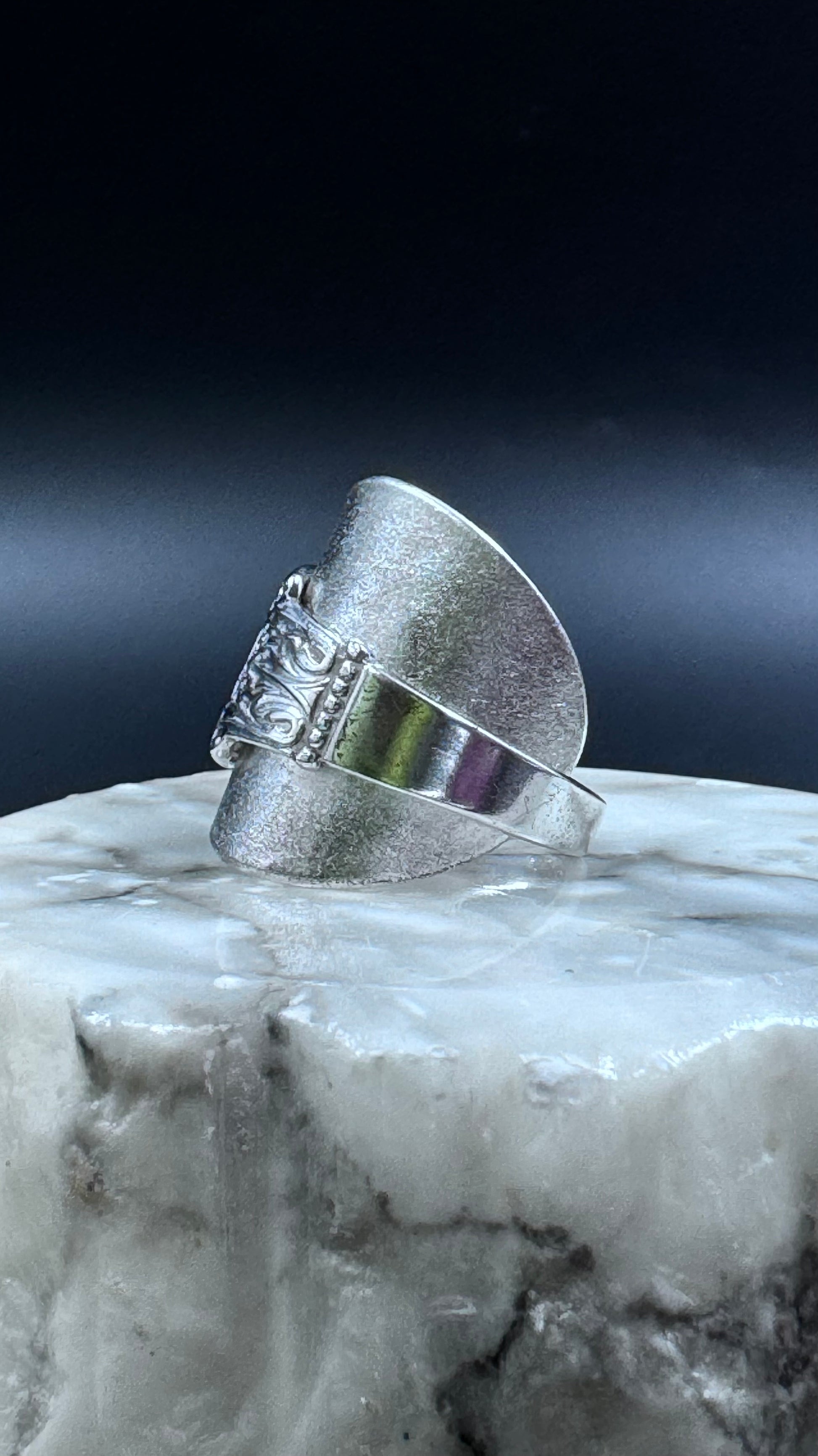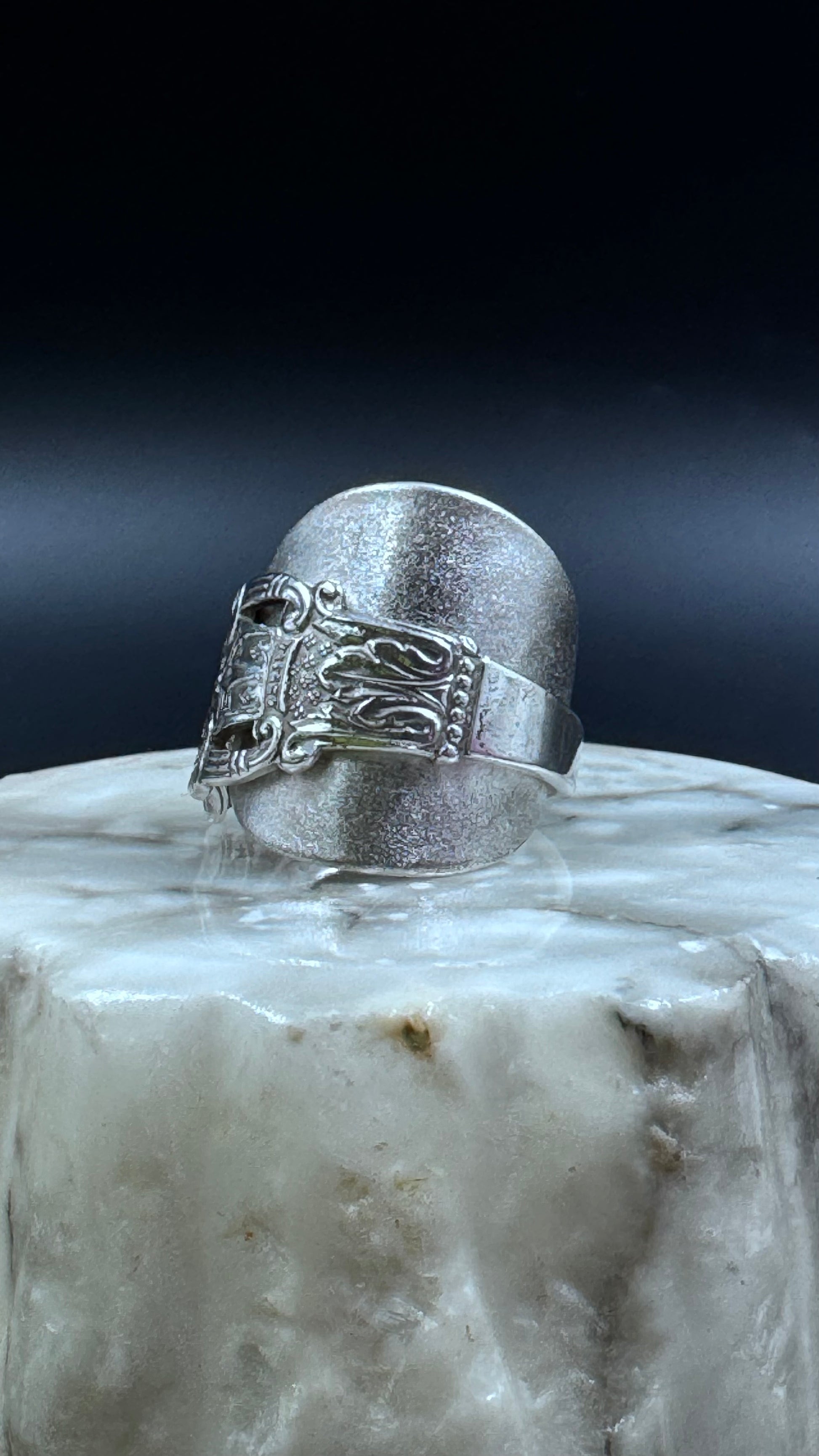Vintage sølvring redesignet av tradisjonelt sølvbestikk.