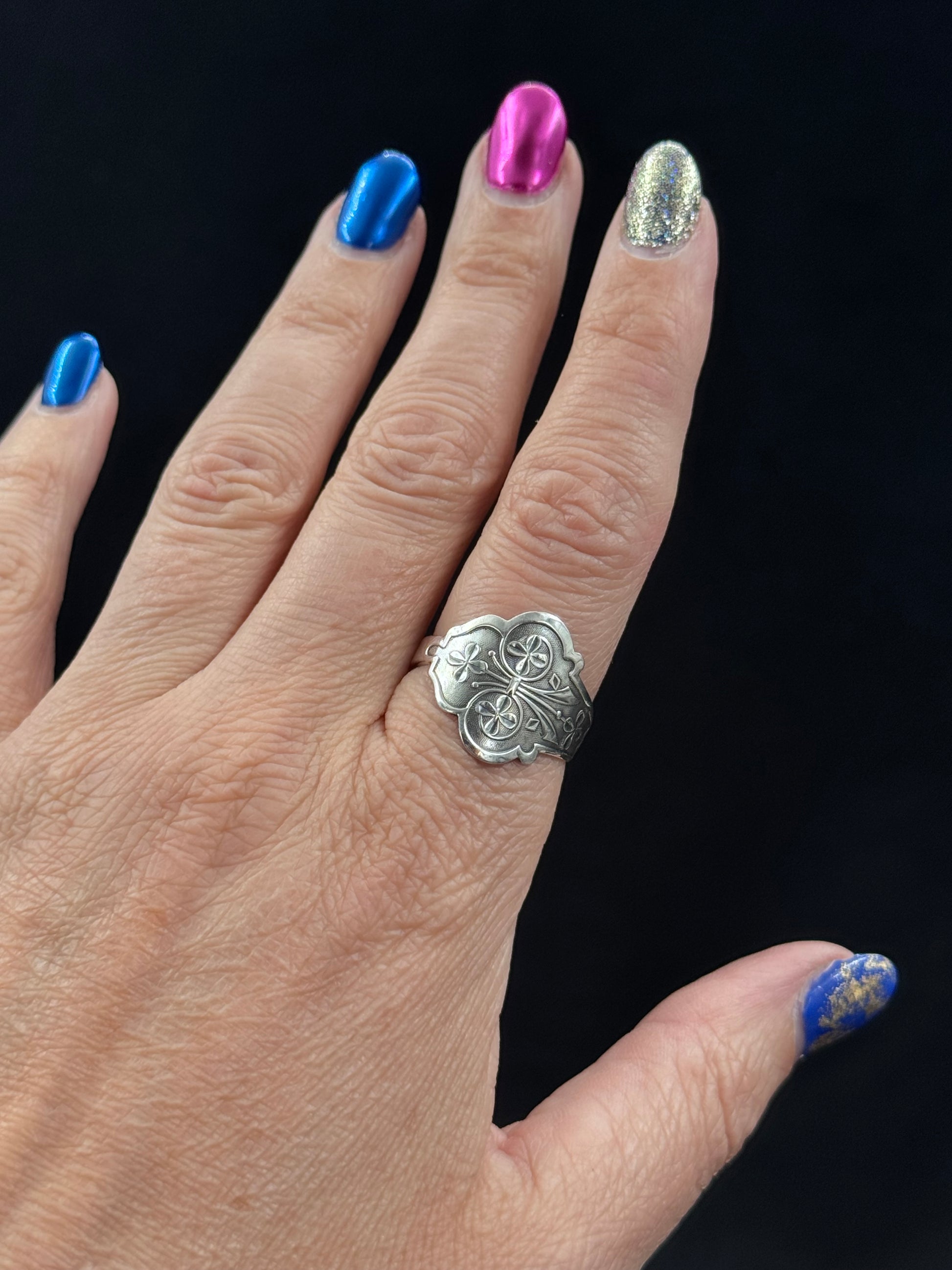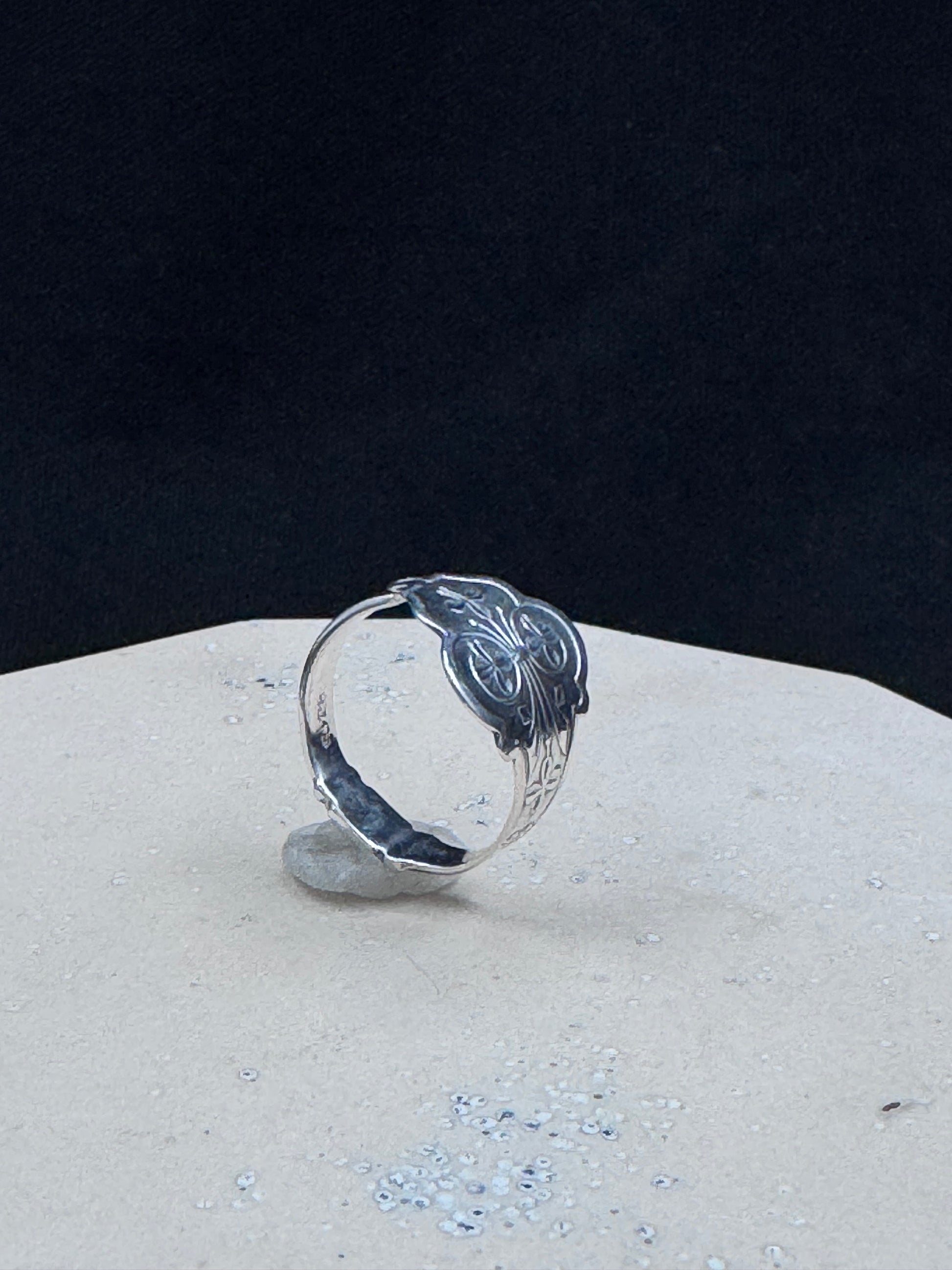 Vintage sølvring redesignet av tradisjonelt sølvbestikk.