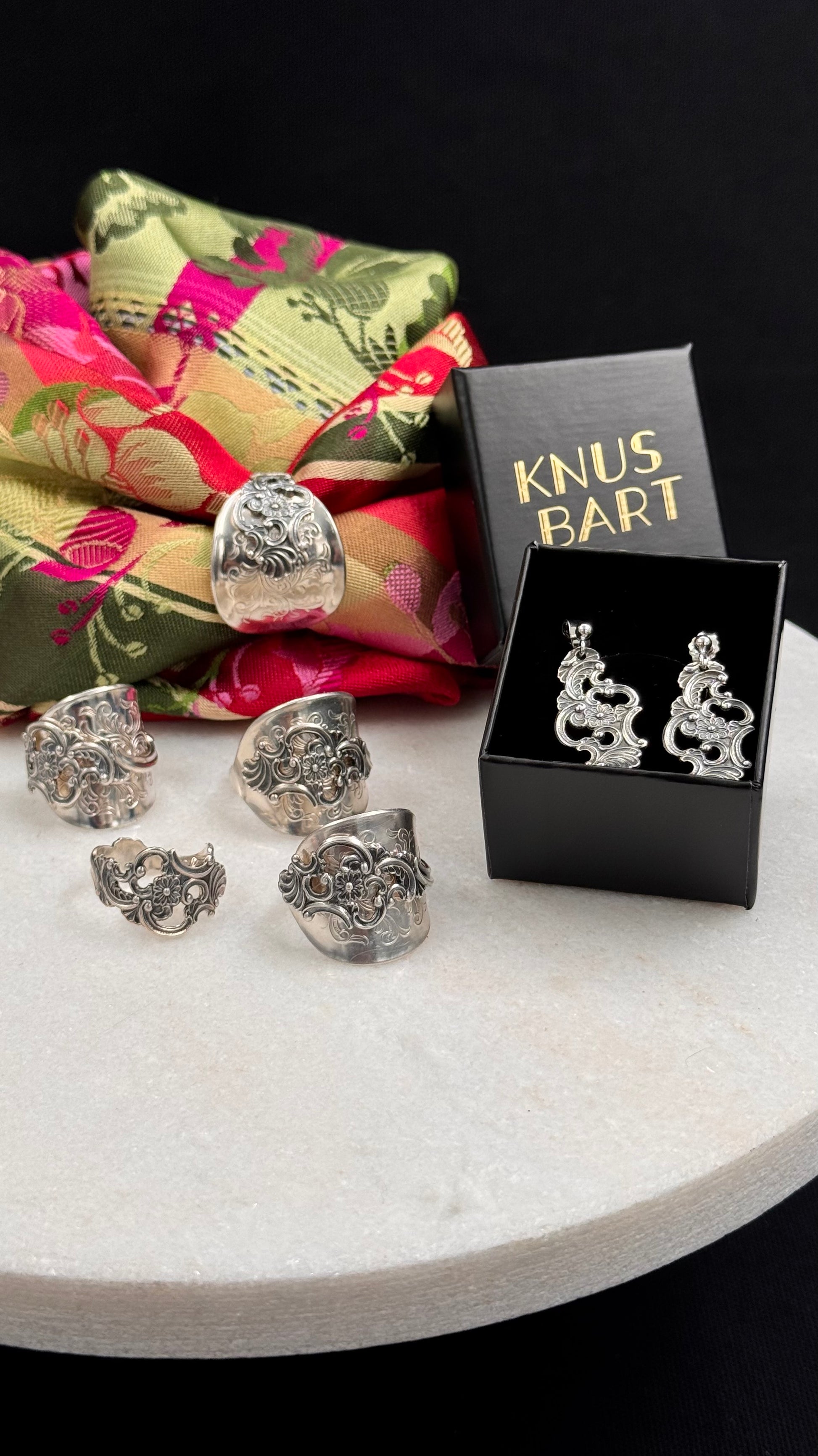Bestilling! Vintage ringer, ørepynt, skjerfring