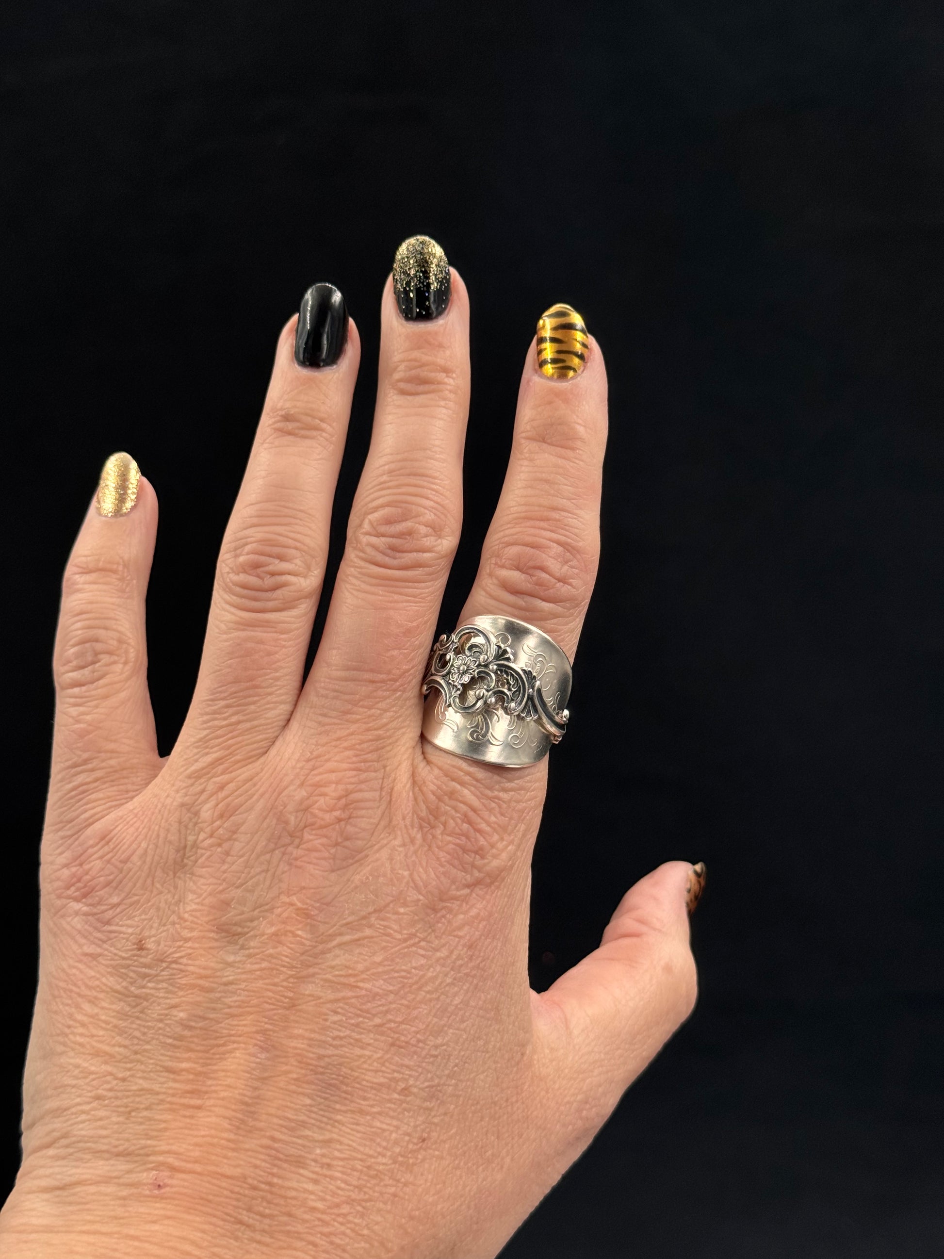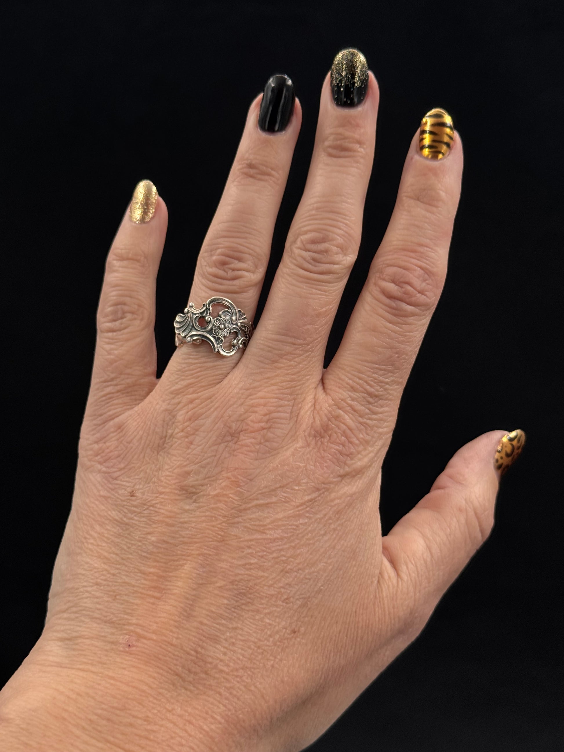 Vintage sølvring redesignet av tradisjonelt sølvbestikk.