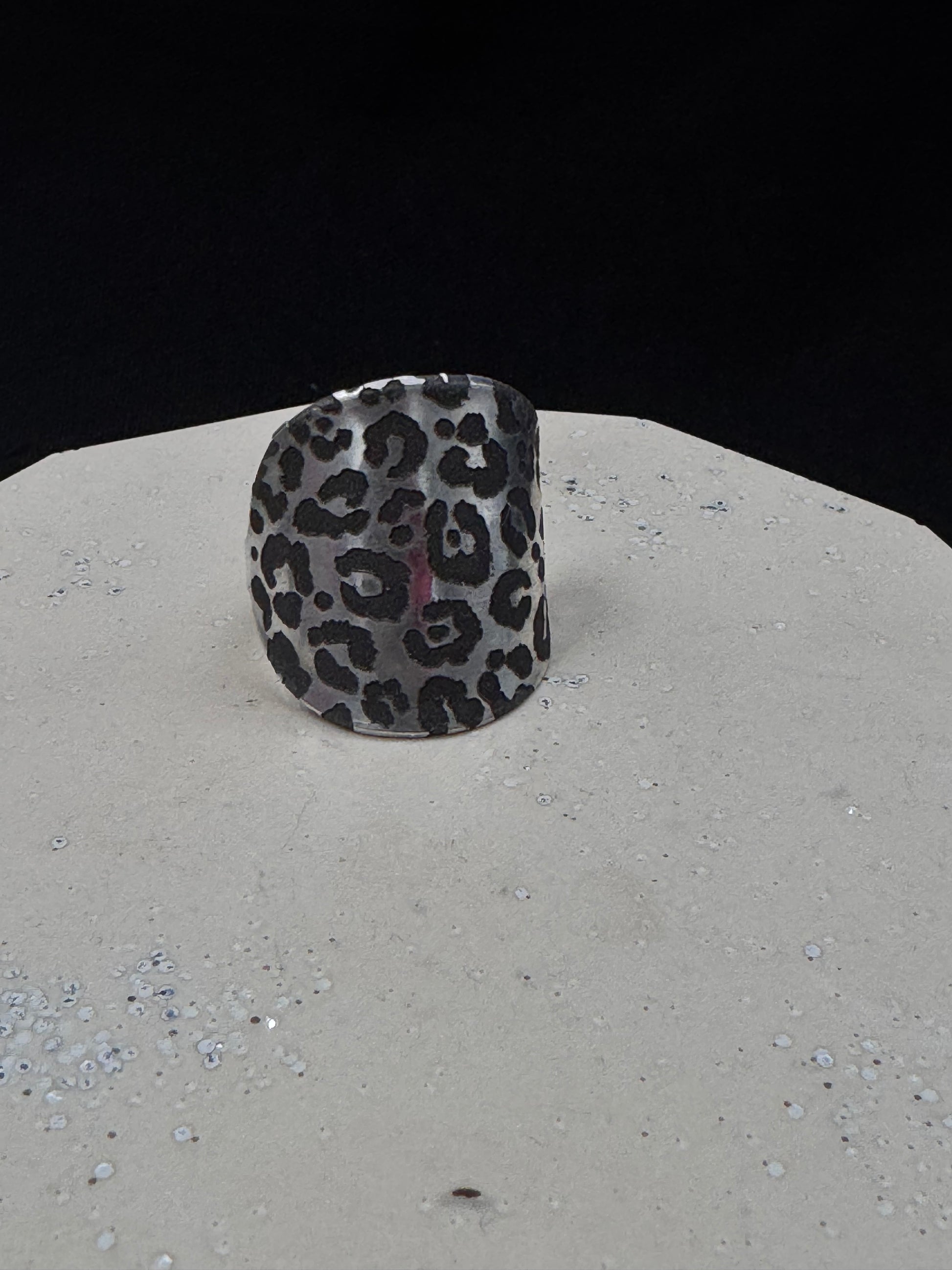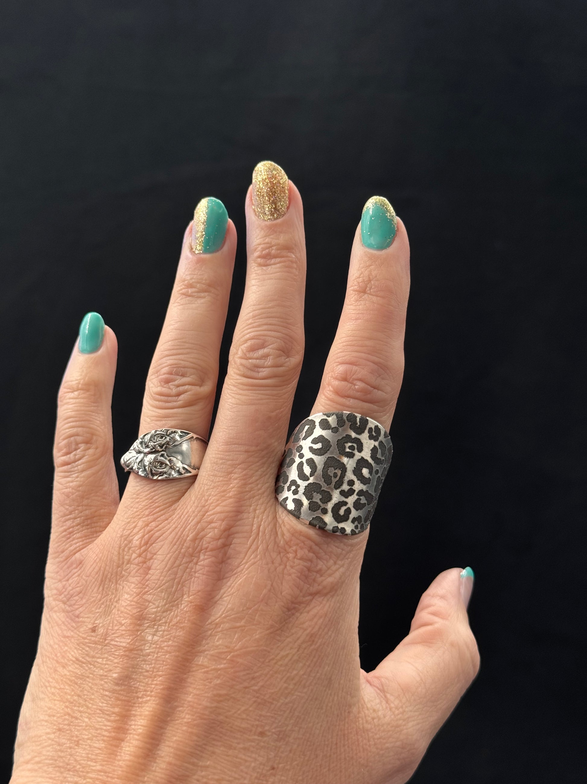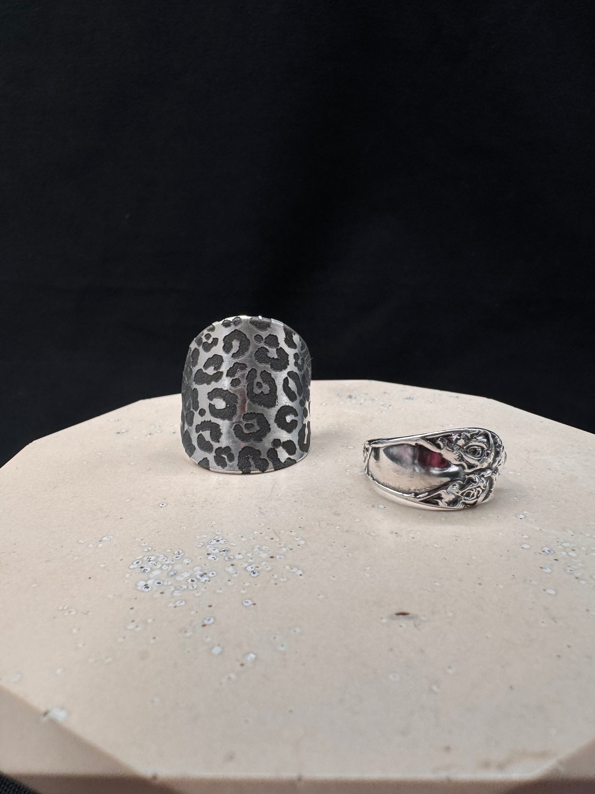 Bestilling! Vintage Sølvring Opphøyd rose og Leomønster