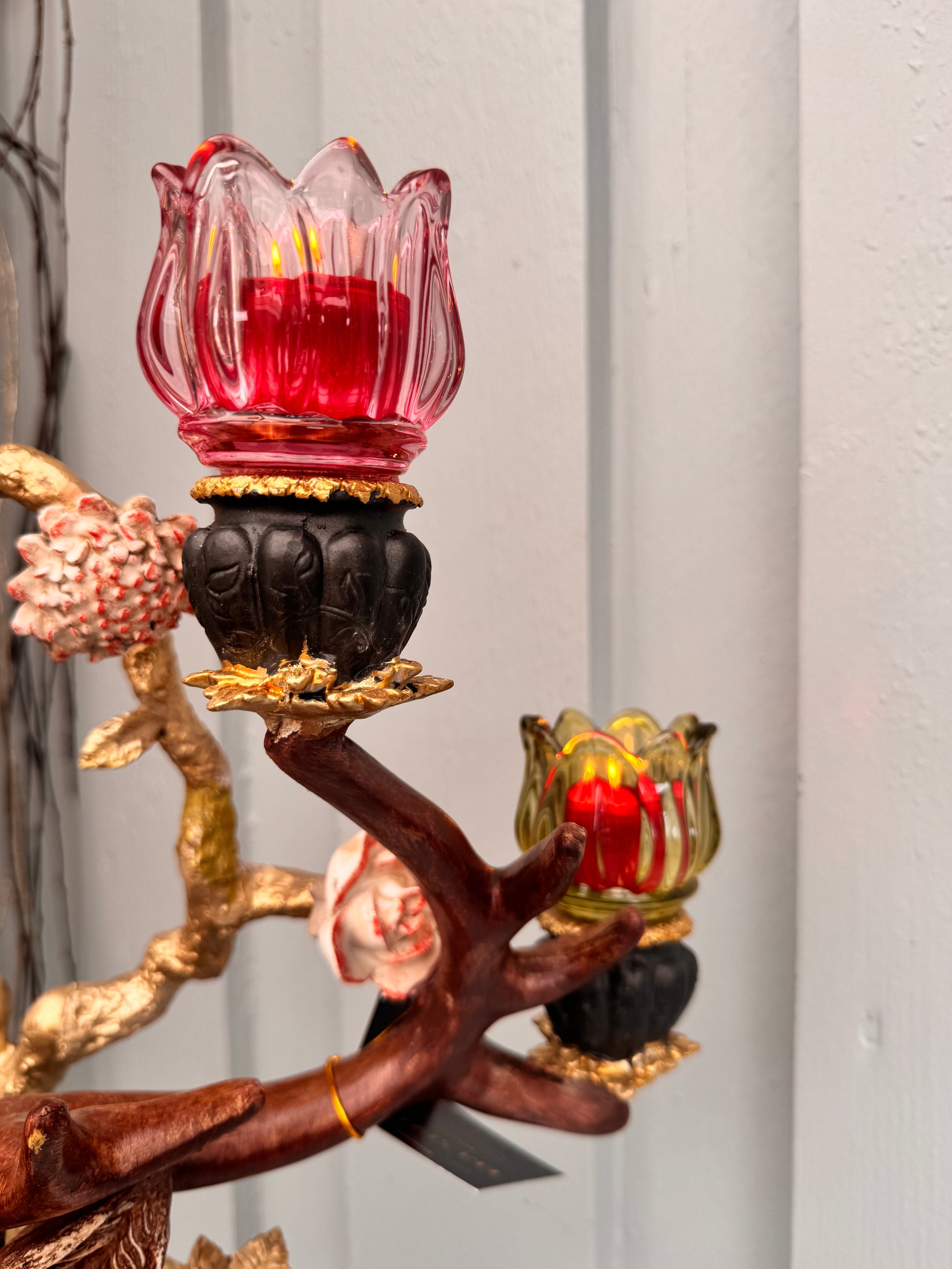 Denne fargerike lysestaken var originalt til kronelys, men vi ville omdanne den til telys.