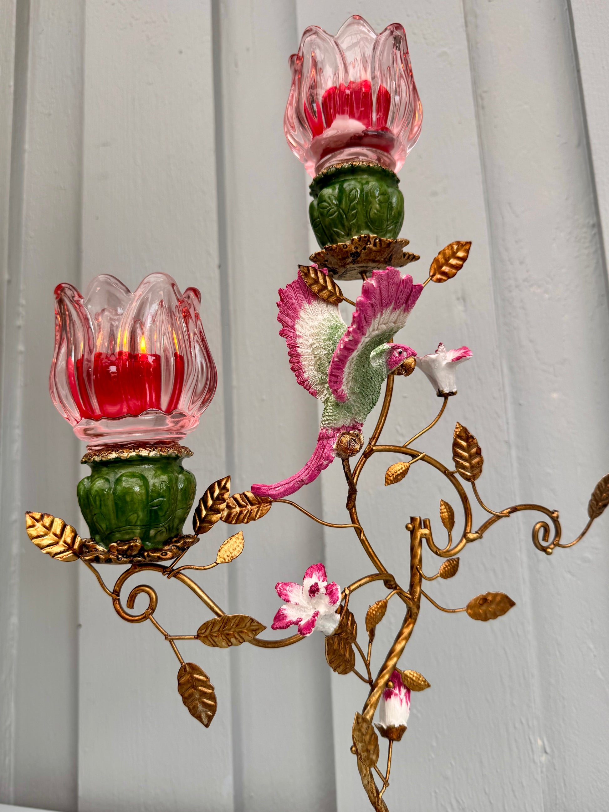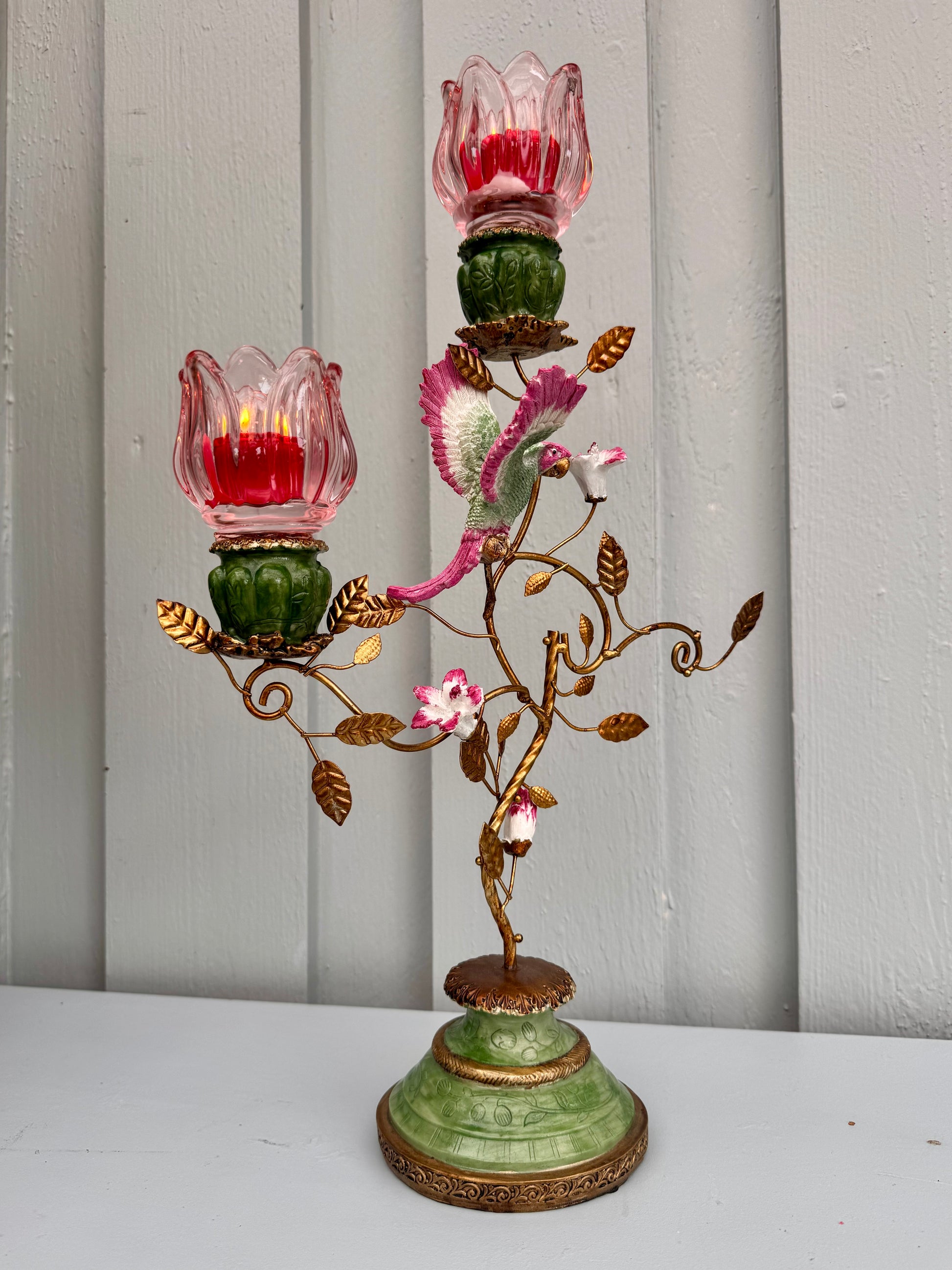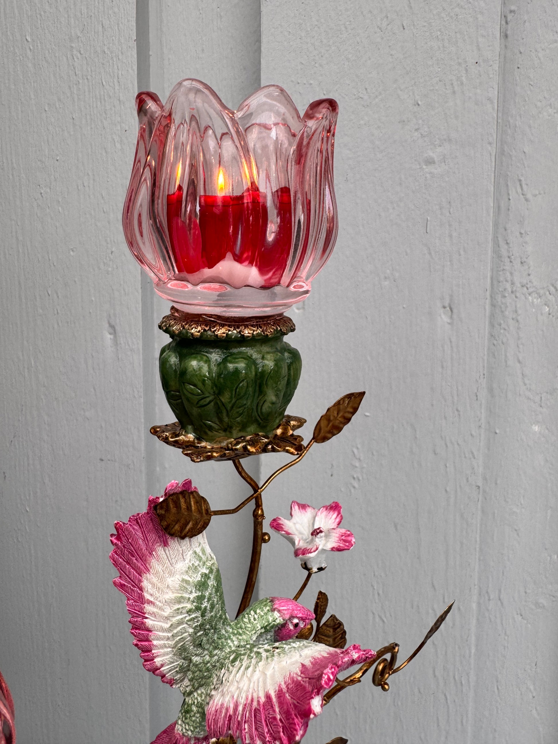 Denne fargerike lysestaken var originalt til kronelys, men vi ville omdanne den til telys.