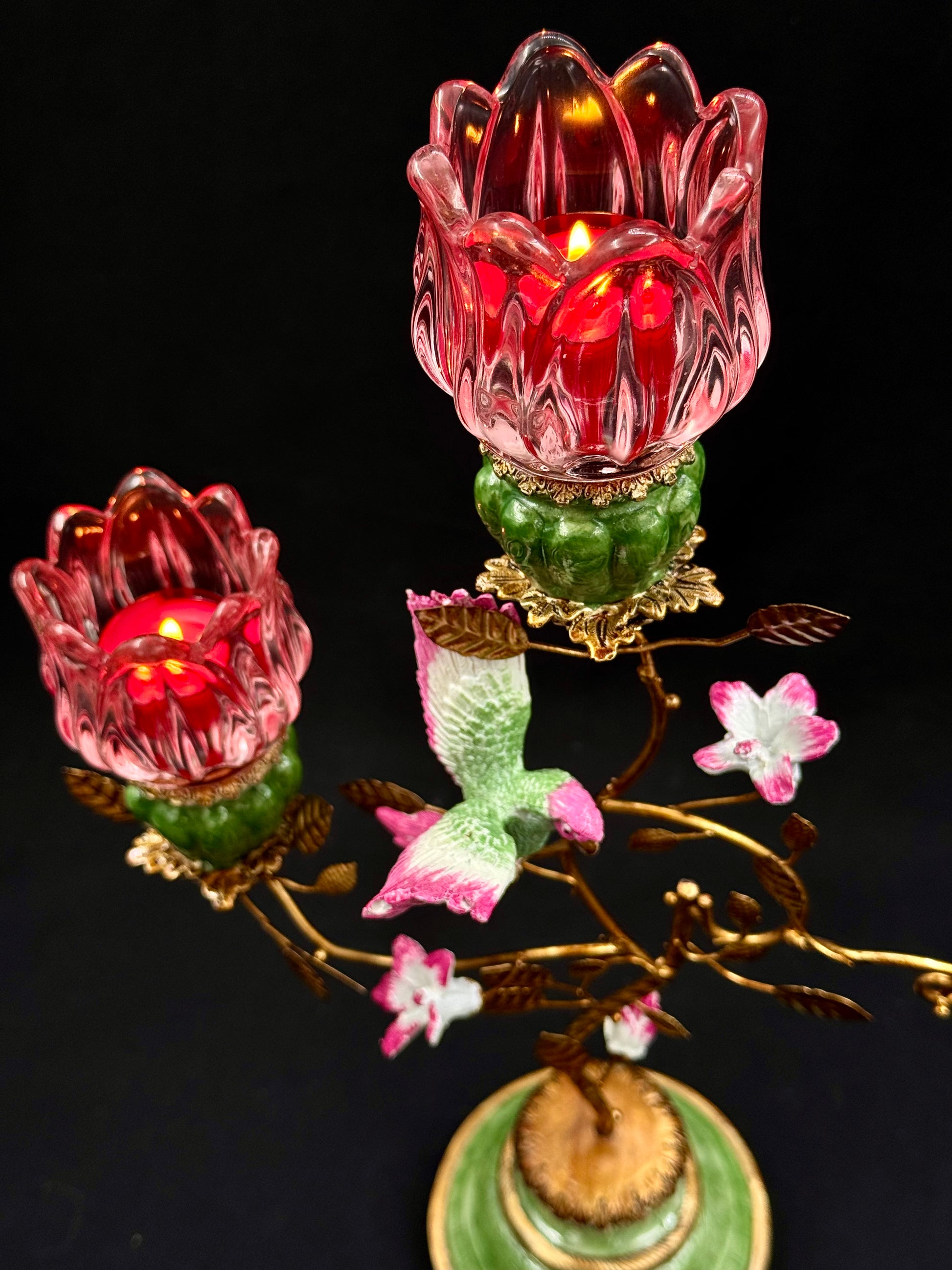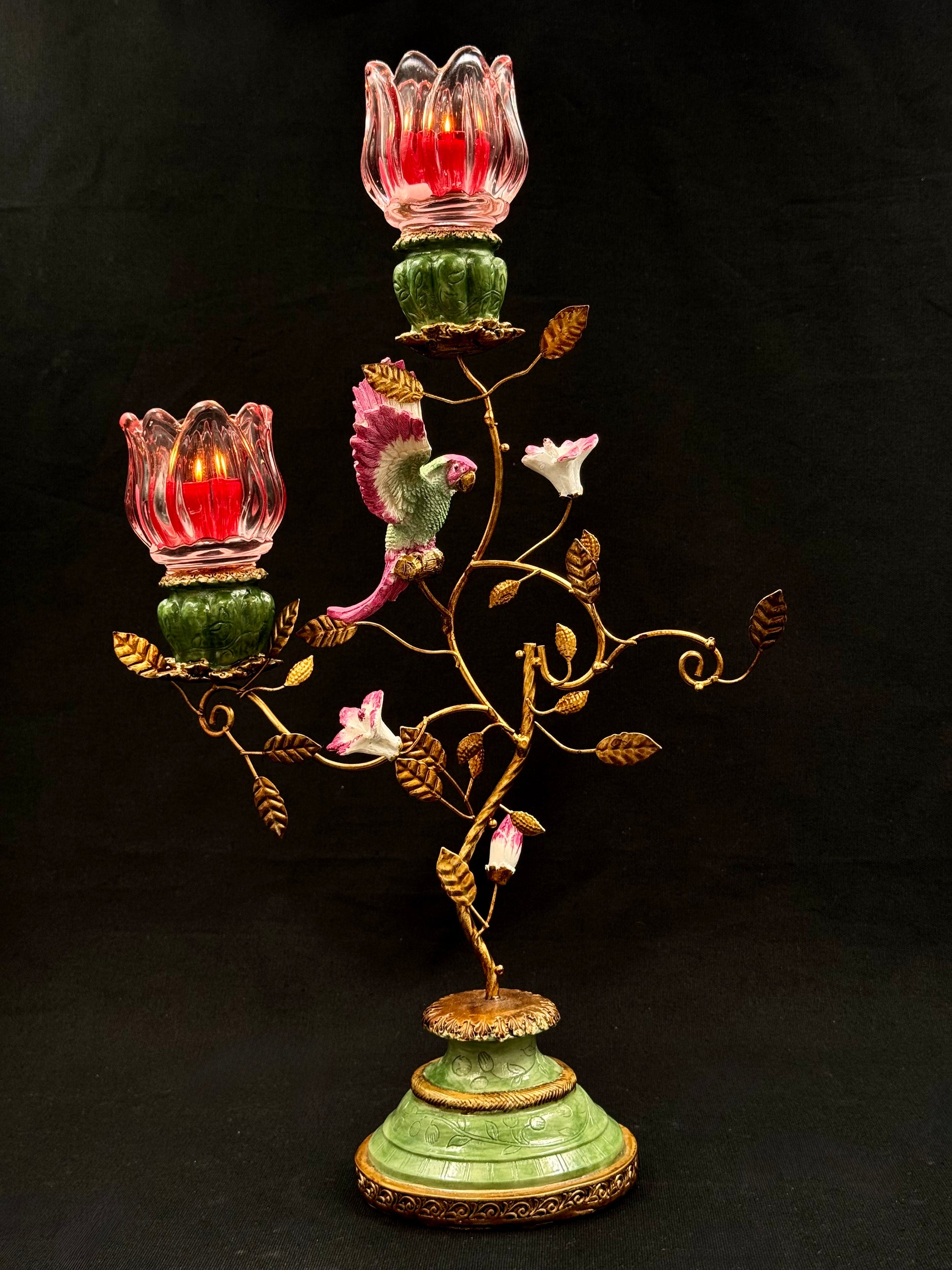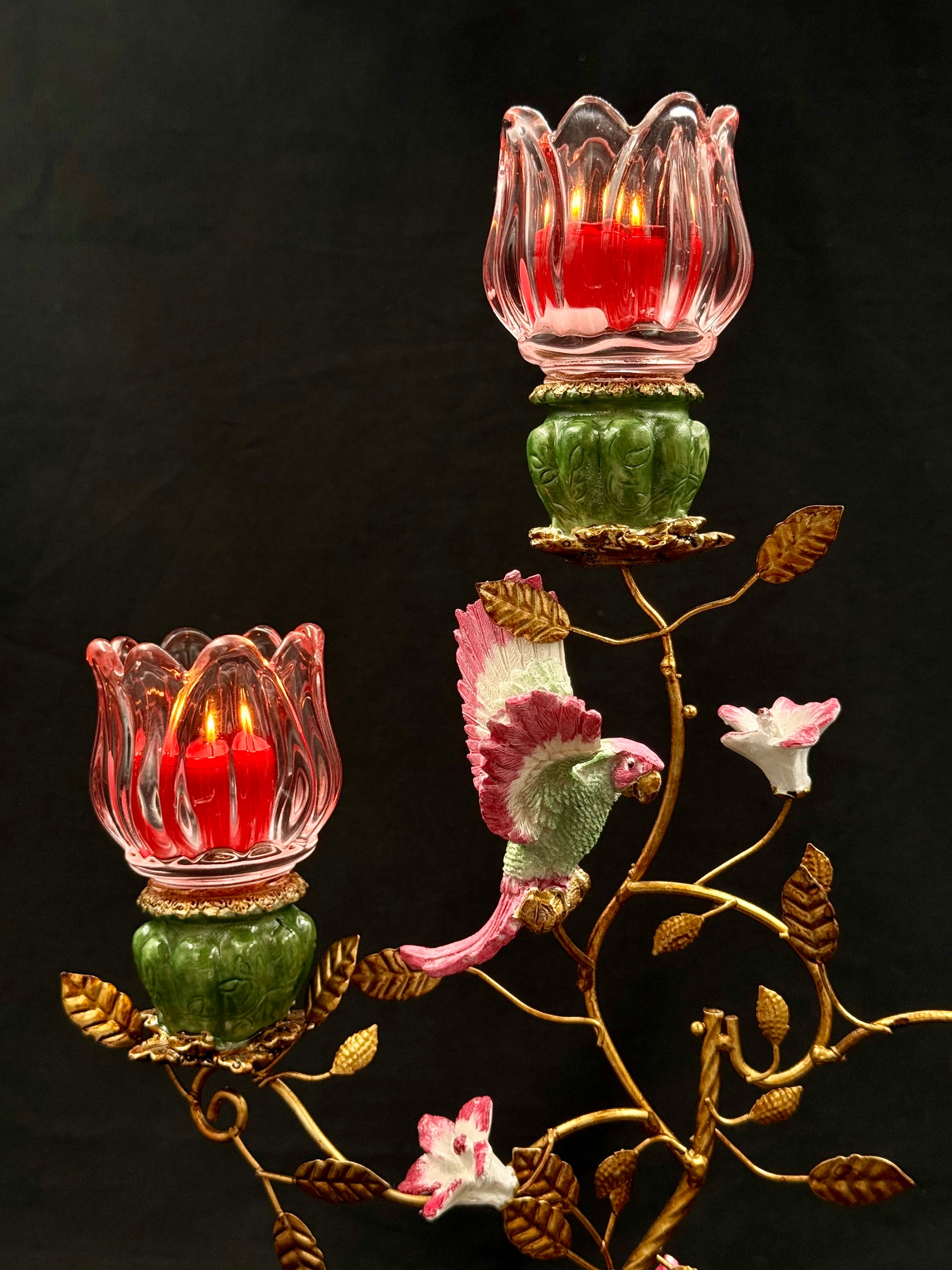 Denne fargerike lysestaken var originalt til kronelys, men vi ville omdanne den til telys.