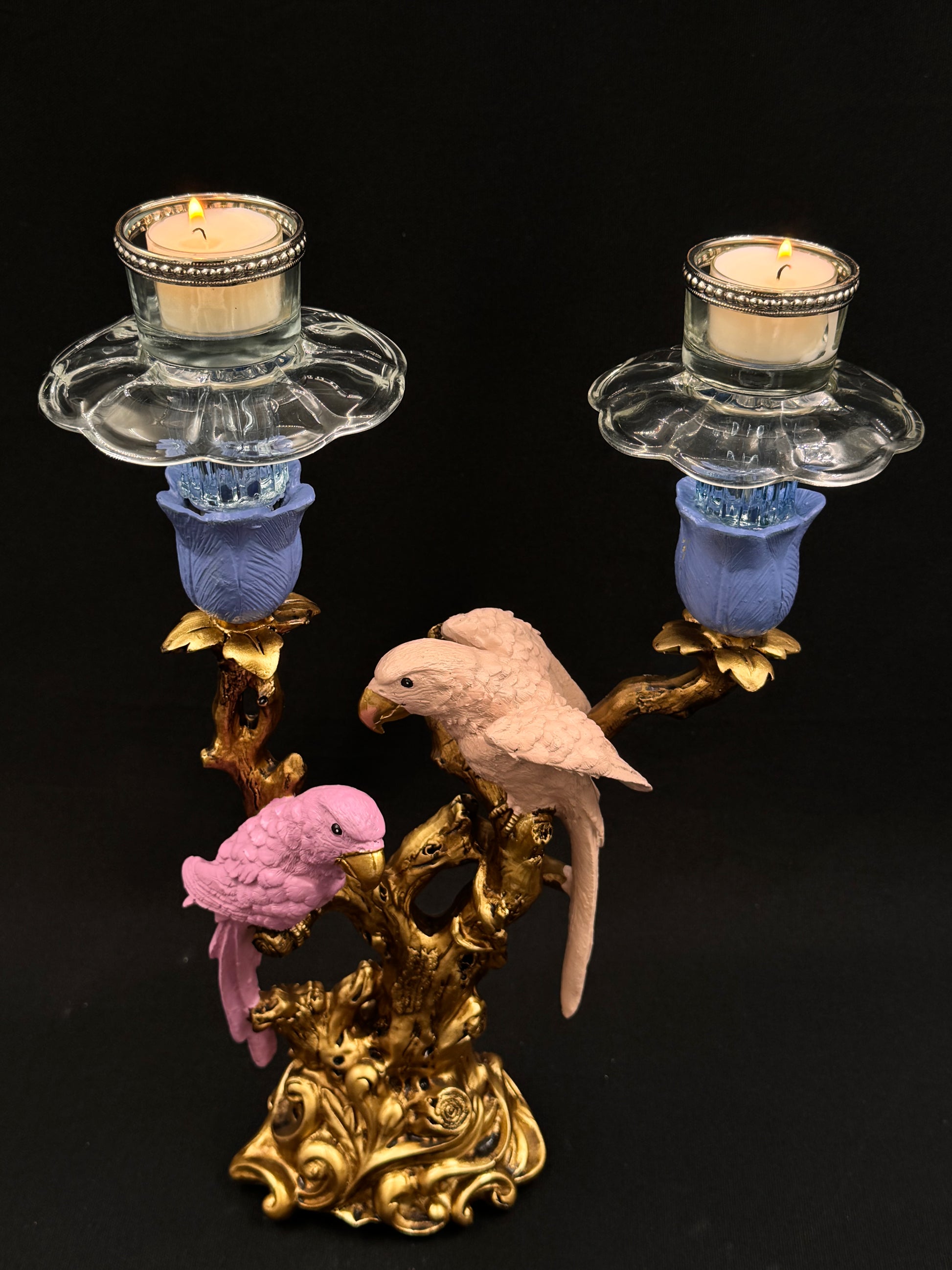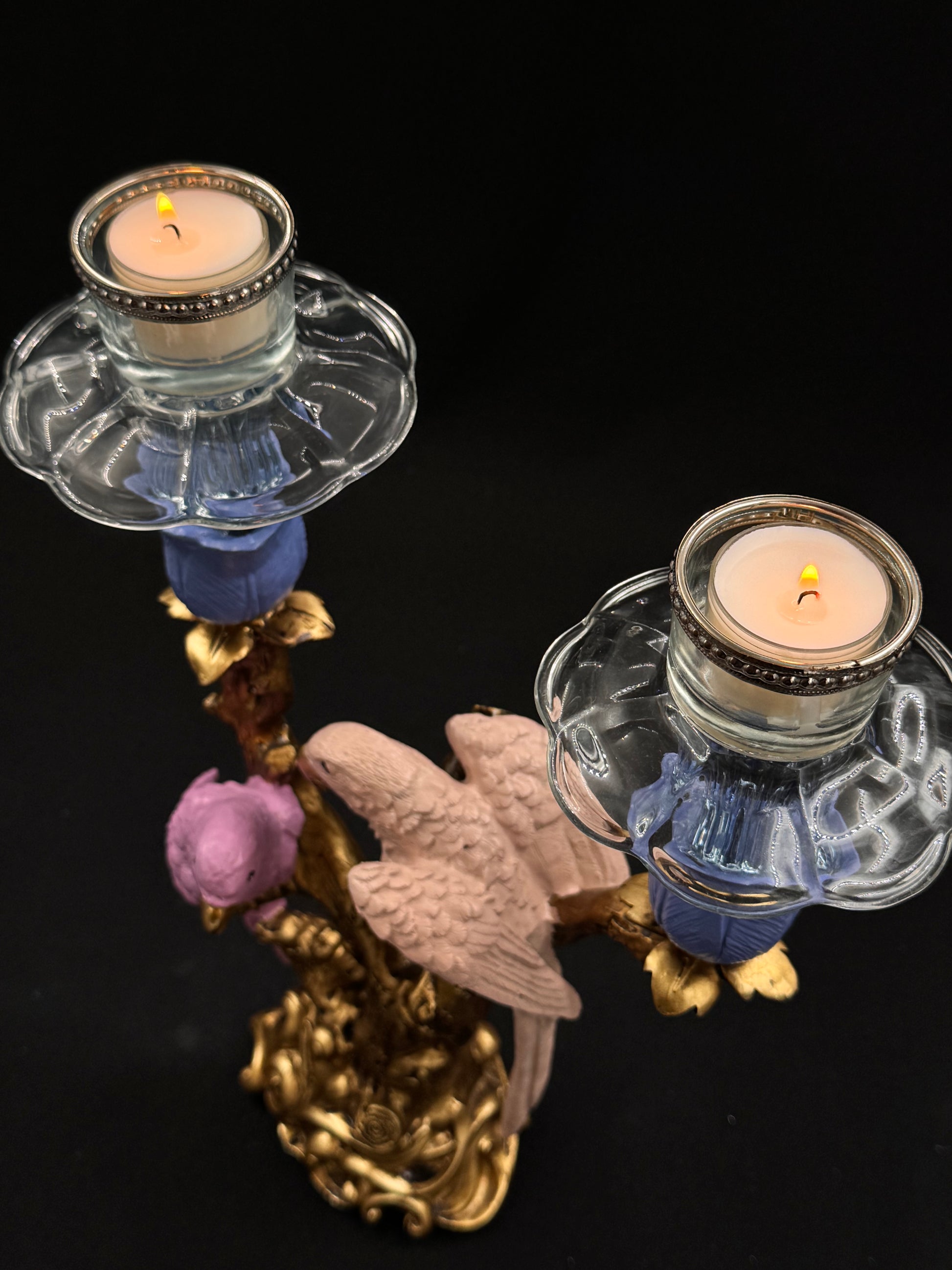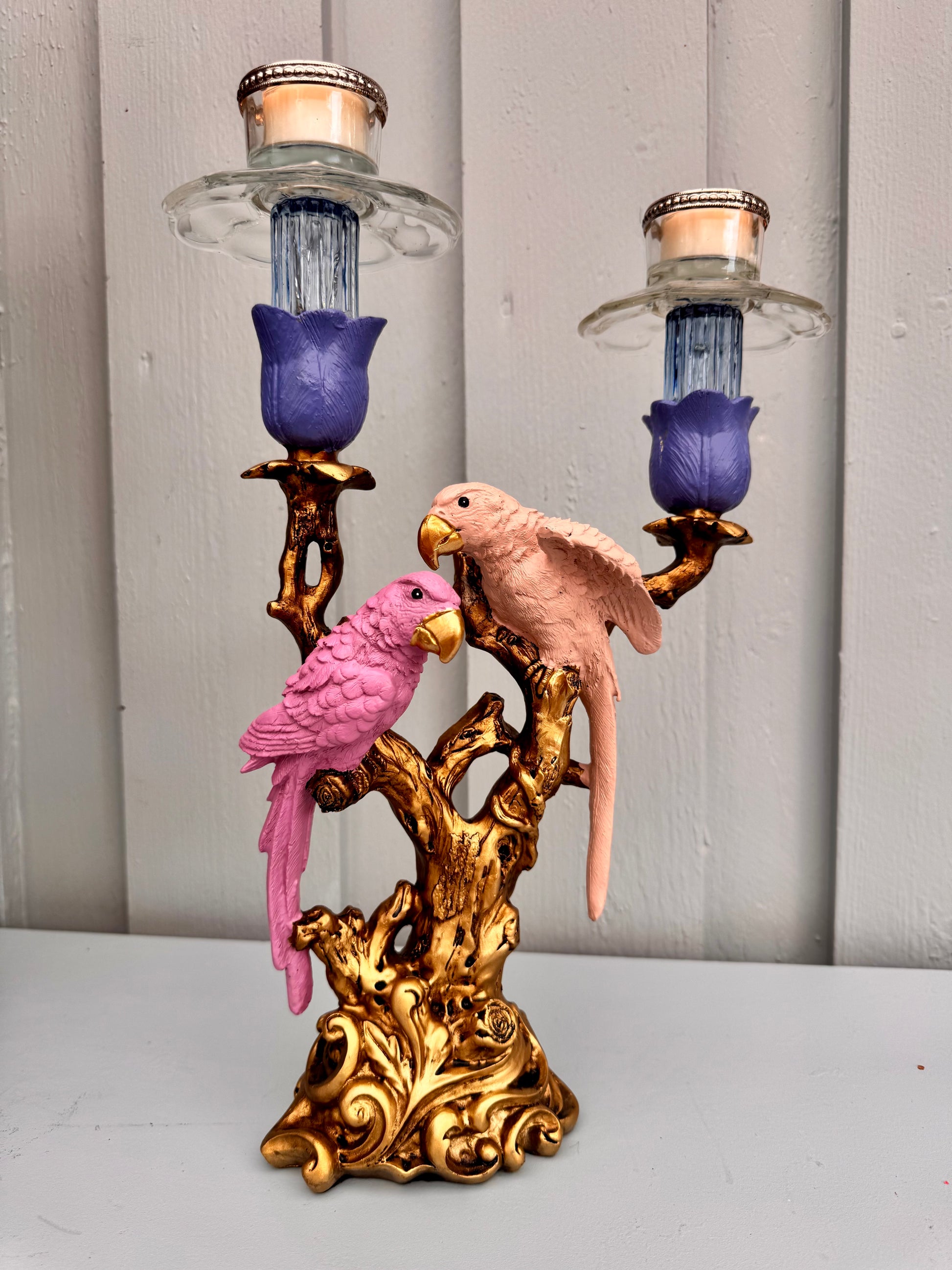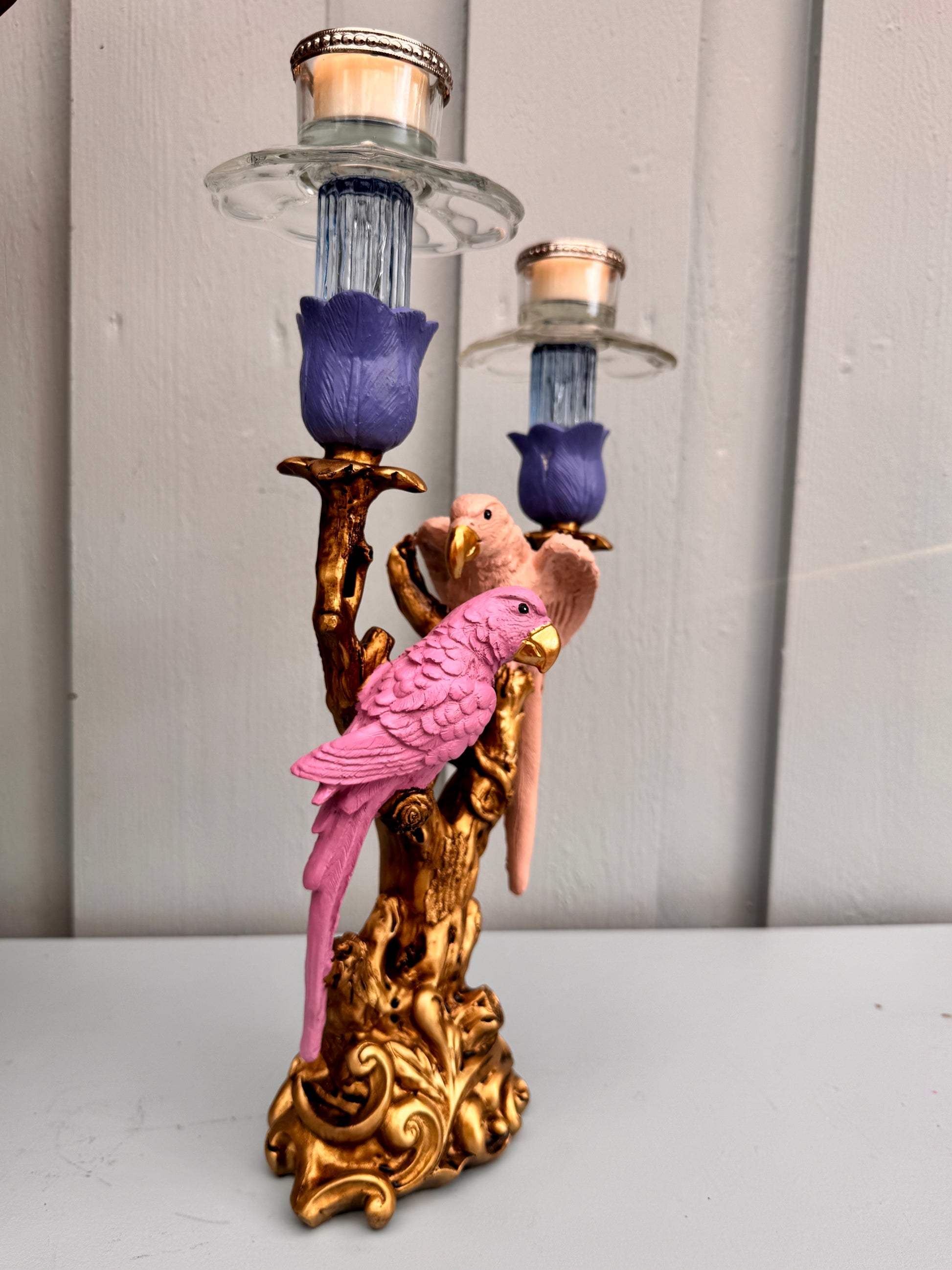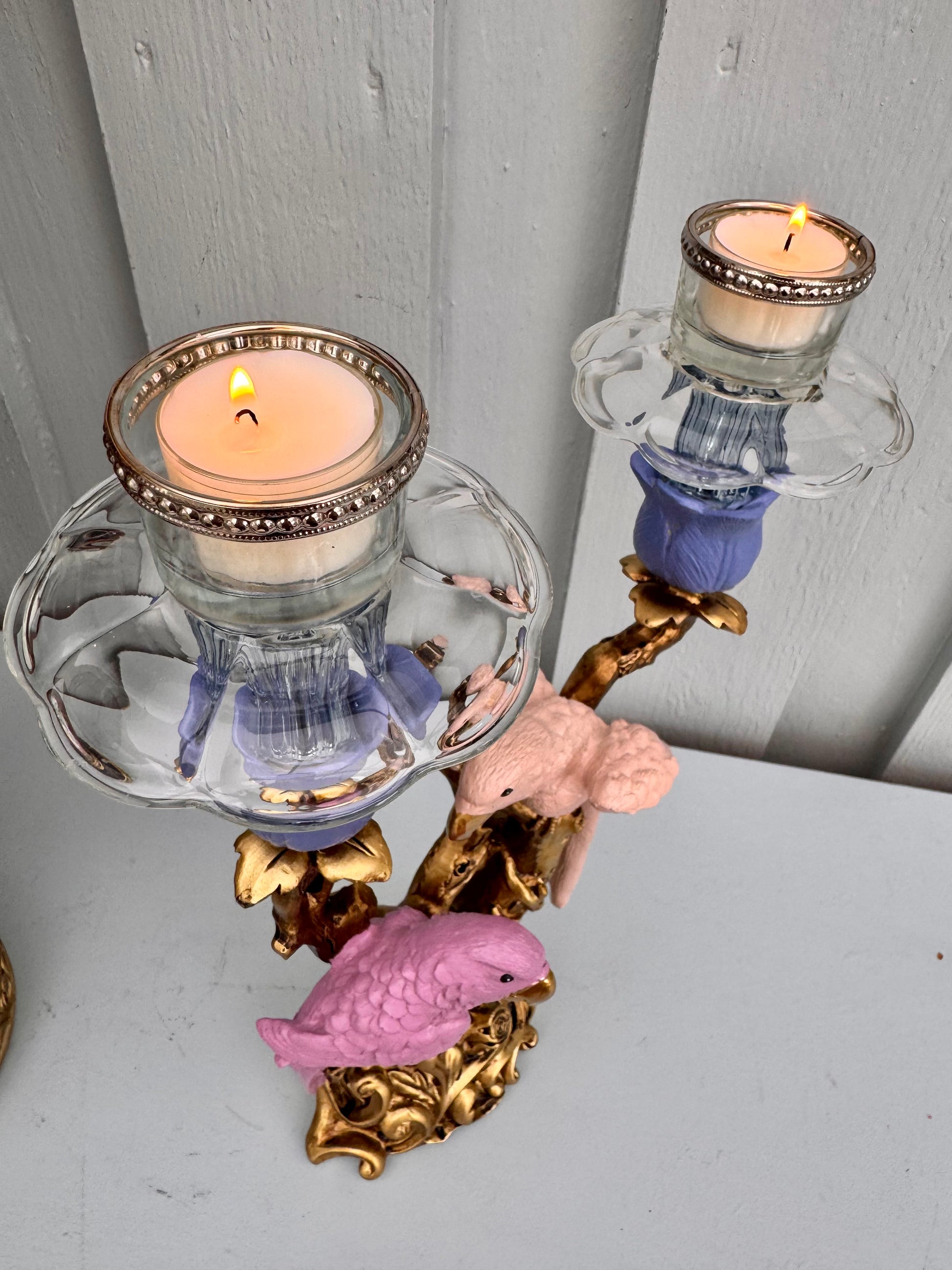 Denne fargerike lysestaken var originalt til kronelys, men vi ville omdanne den til telys.