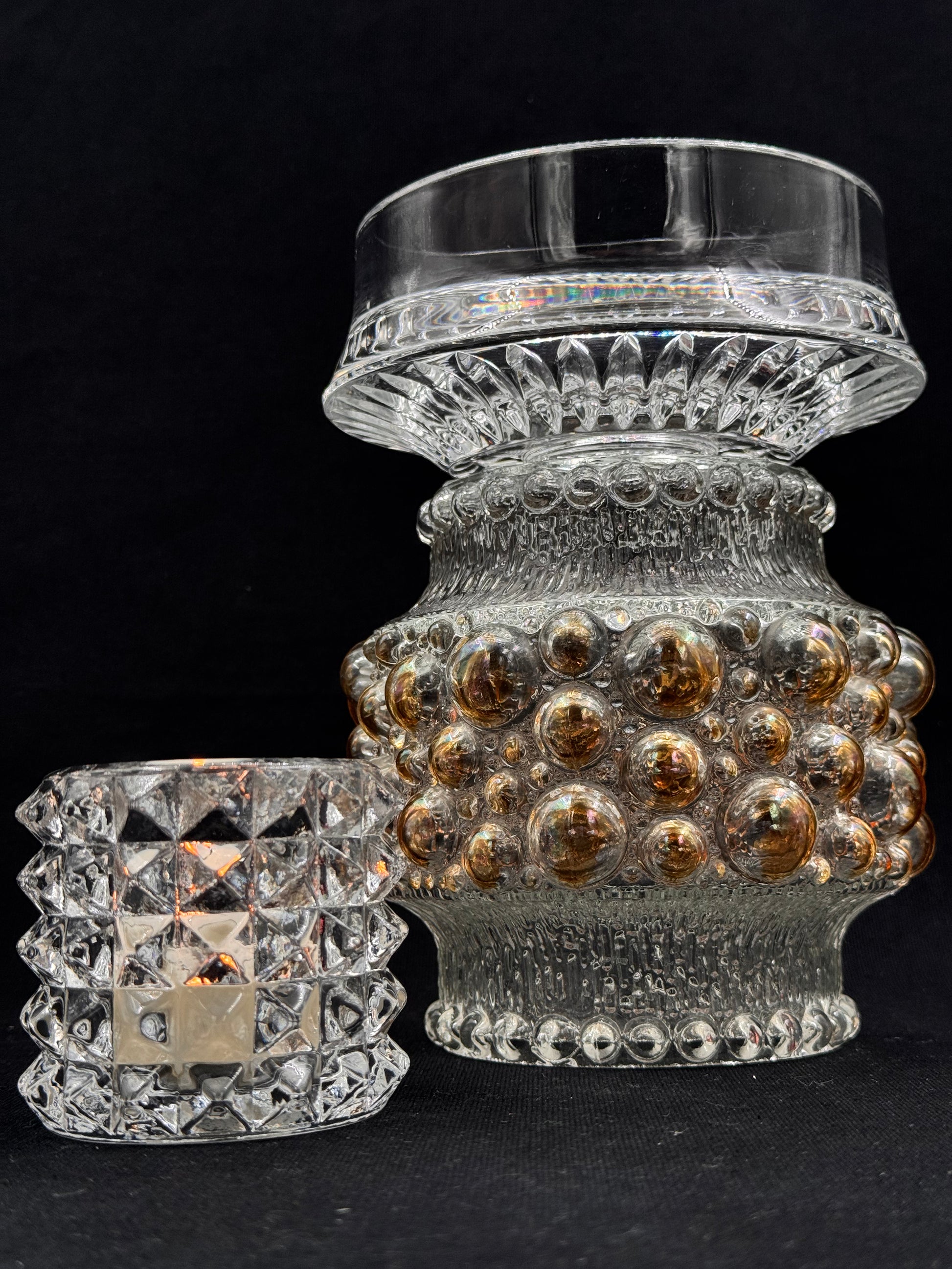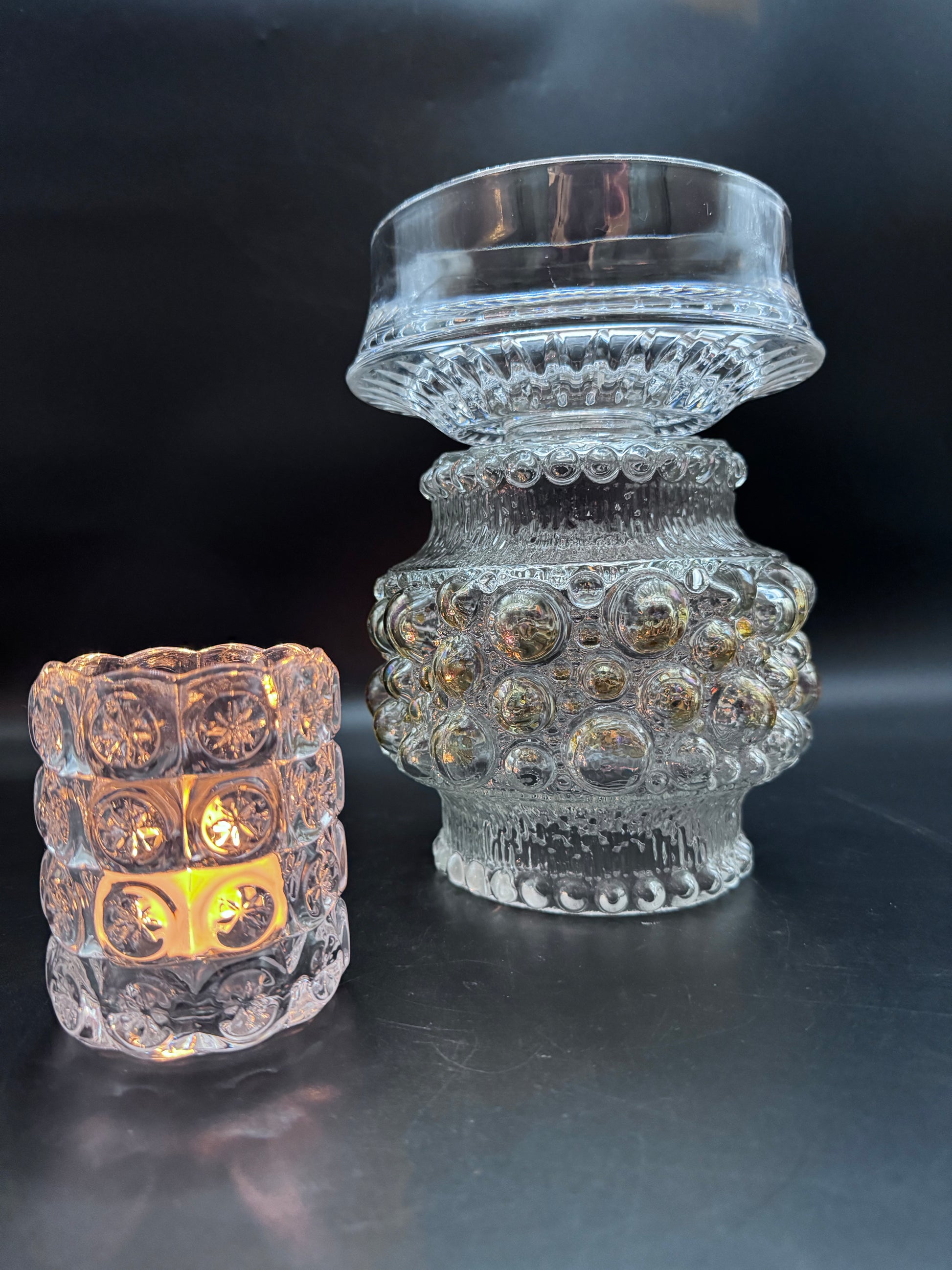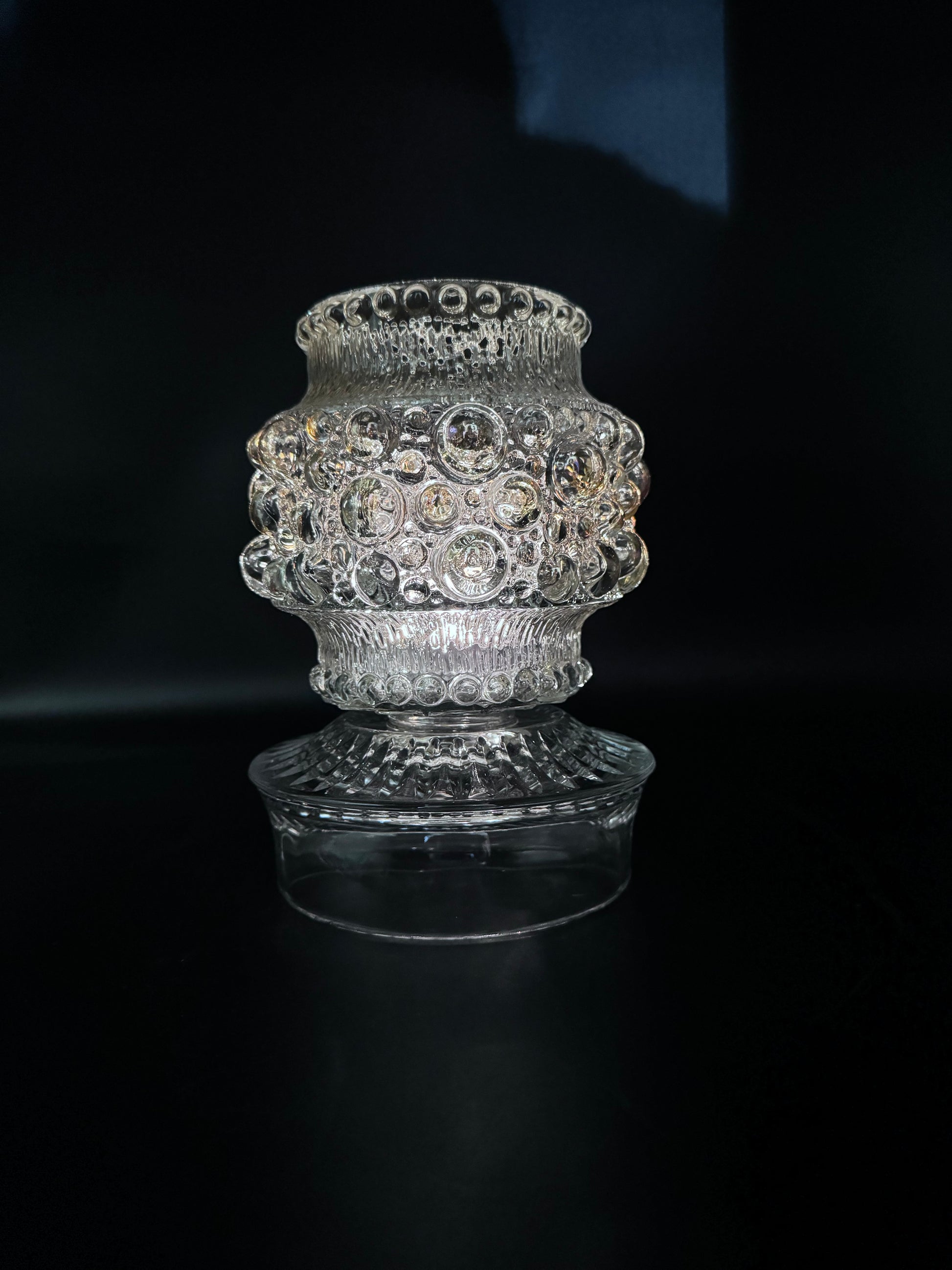 Denne lyslykten kan brukes begge veier. Den er fin med telys og kan også brukes som skål. Krystallskålen har et nydelig stripet mønster