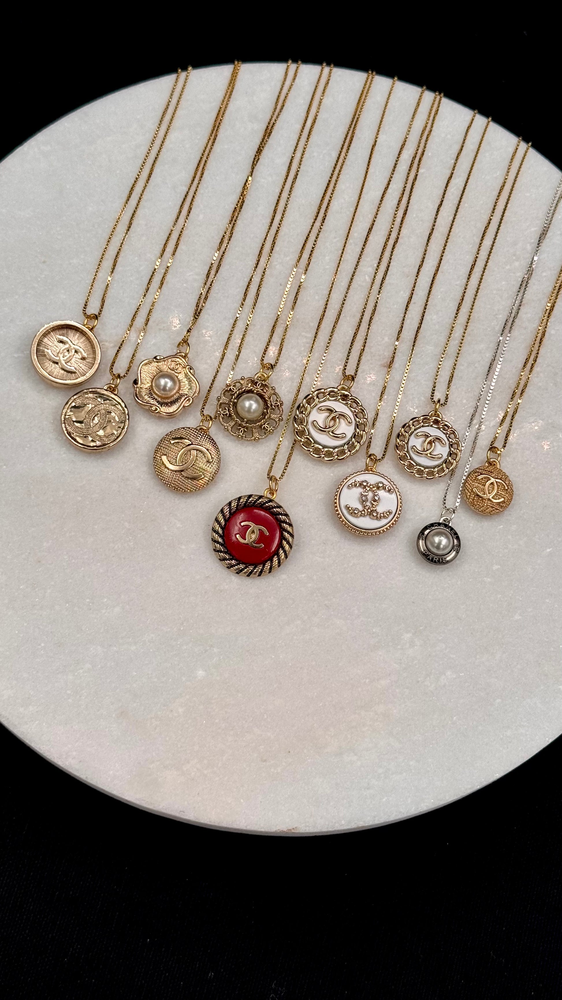 Smykkene våre lages av nøye utvalgte vintage designerknapper og glidelåser fra kjente motehus. Vi kjøper fra seriøse leverandører og ser alltid etter god merking og kvalitet i materialene.
