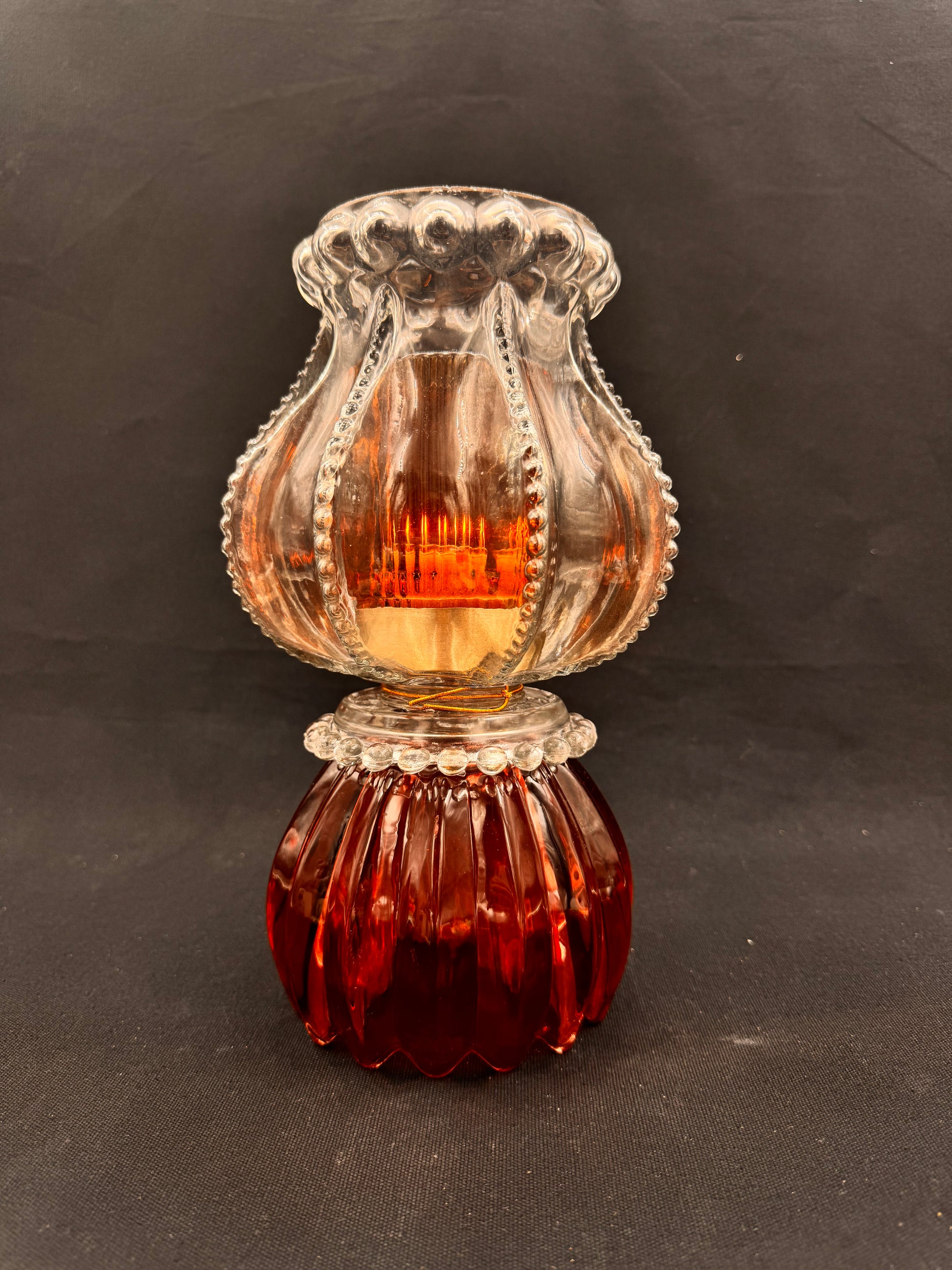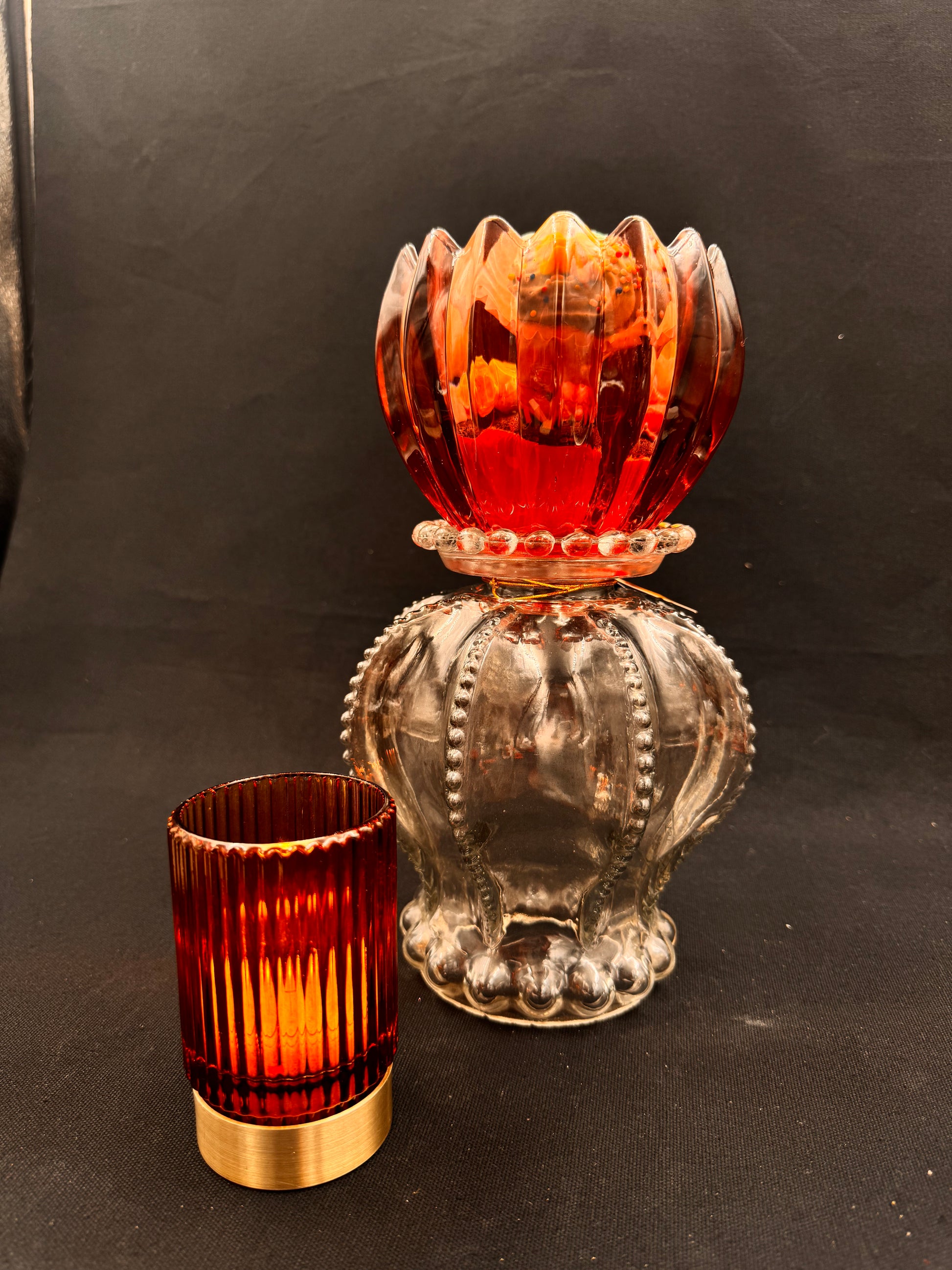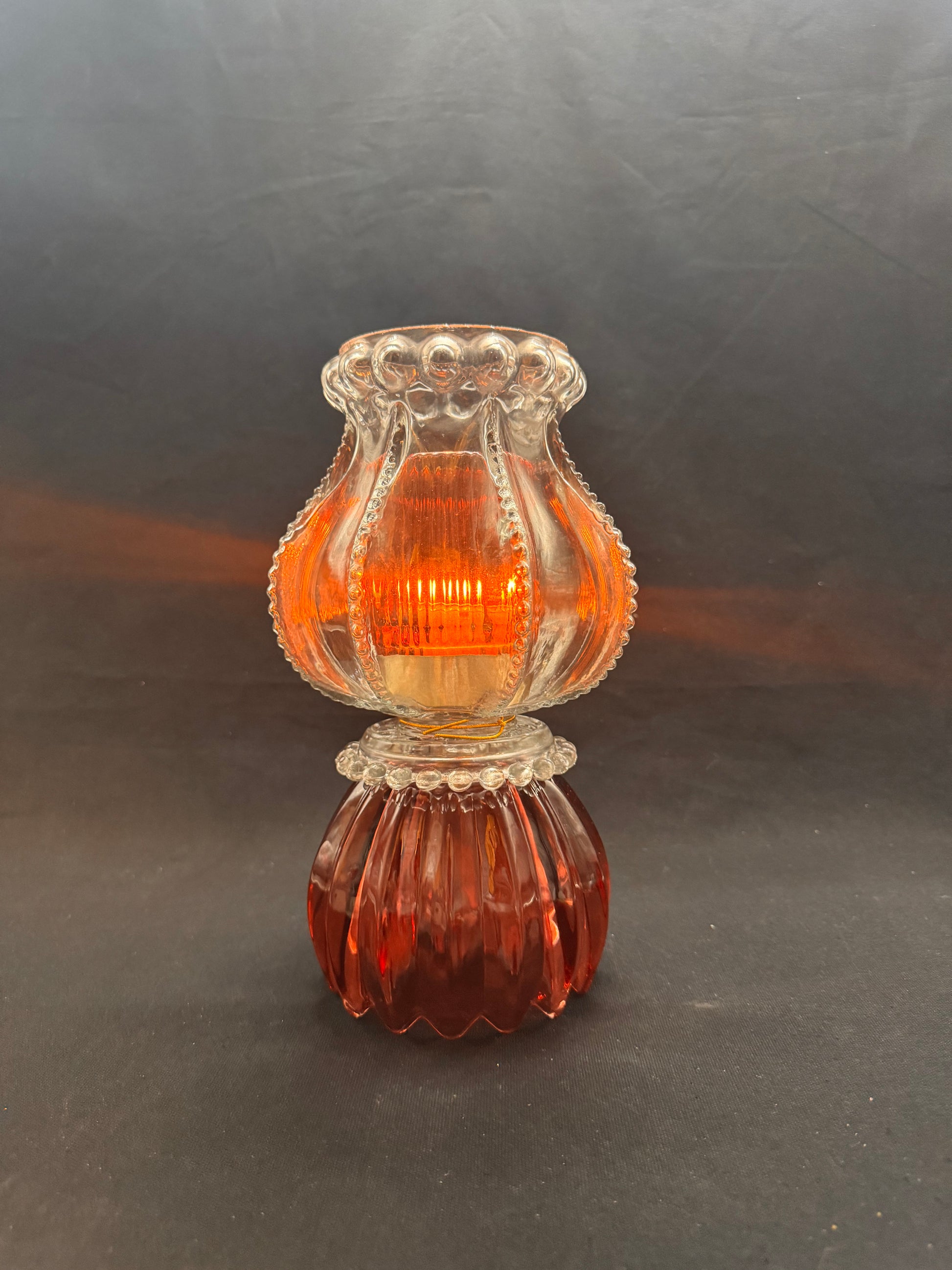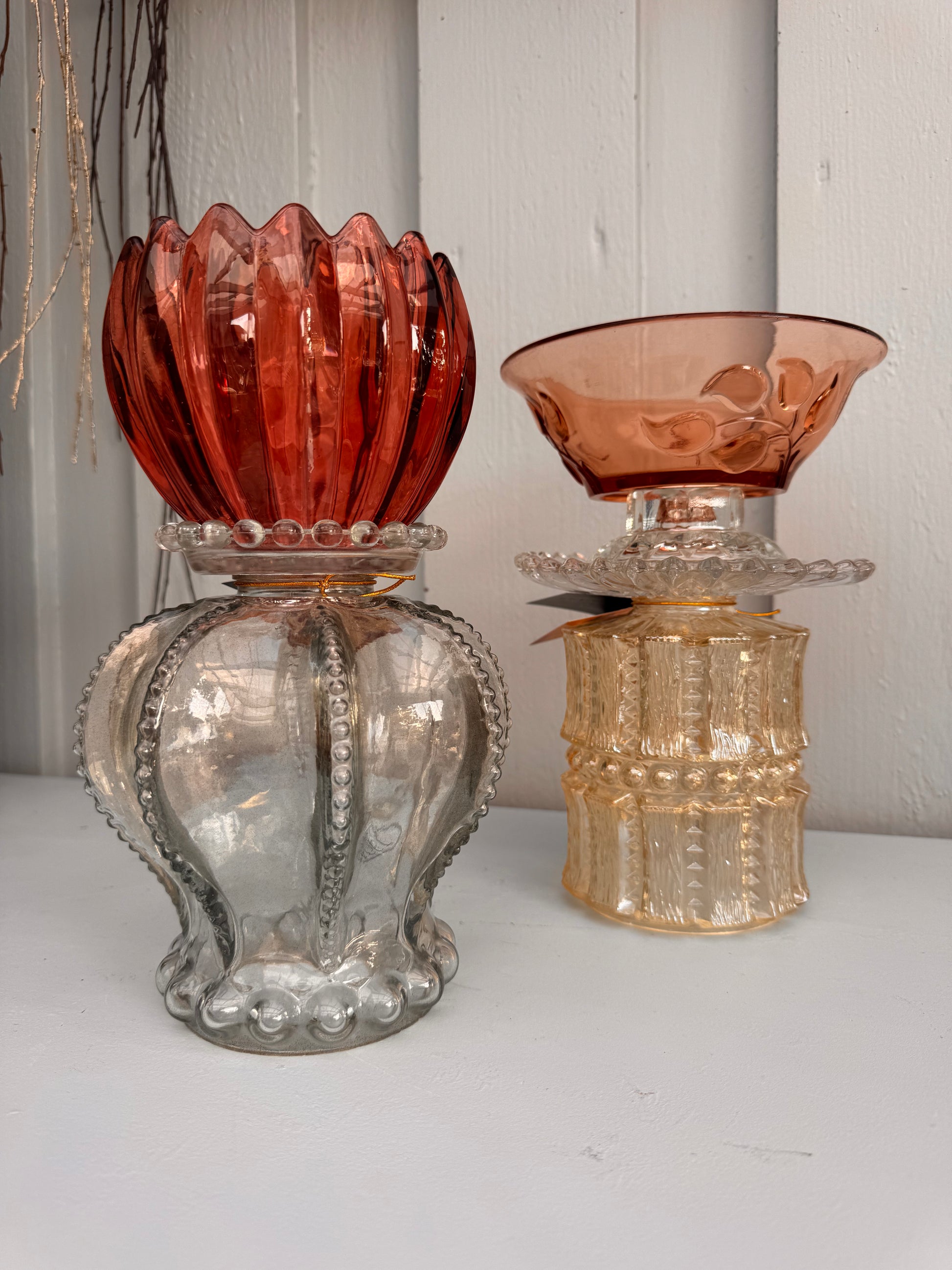 Vintage lykt i smoke og vinrød skål
