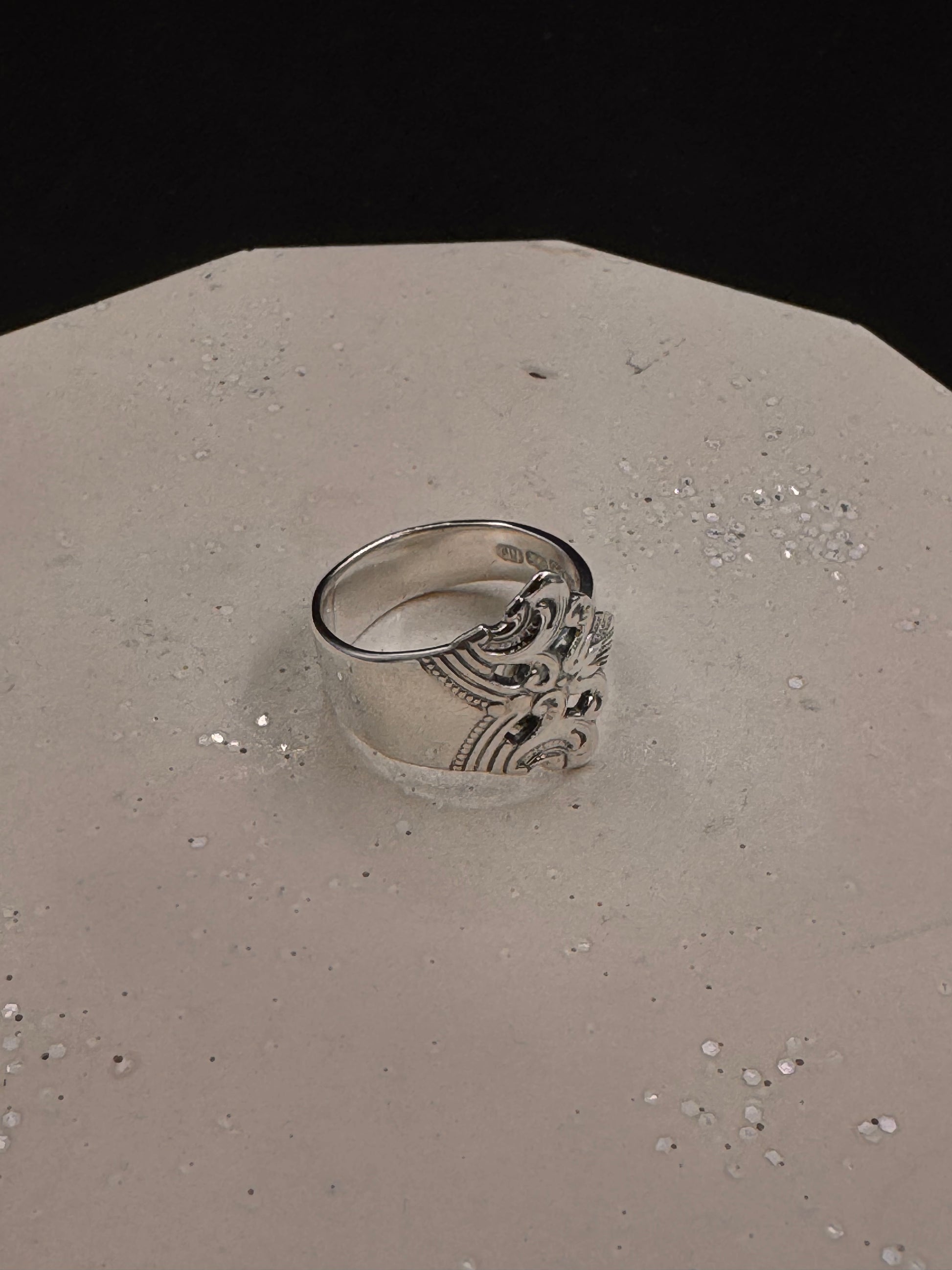 Vintage sølvring redesignet av tradisjonelt sølvbestikk.