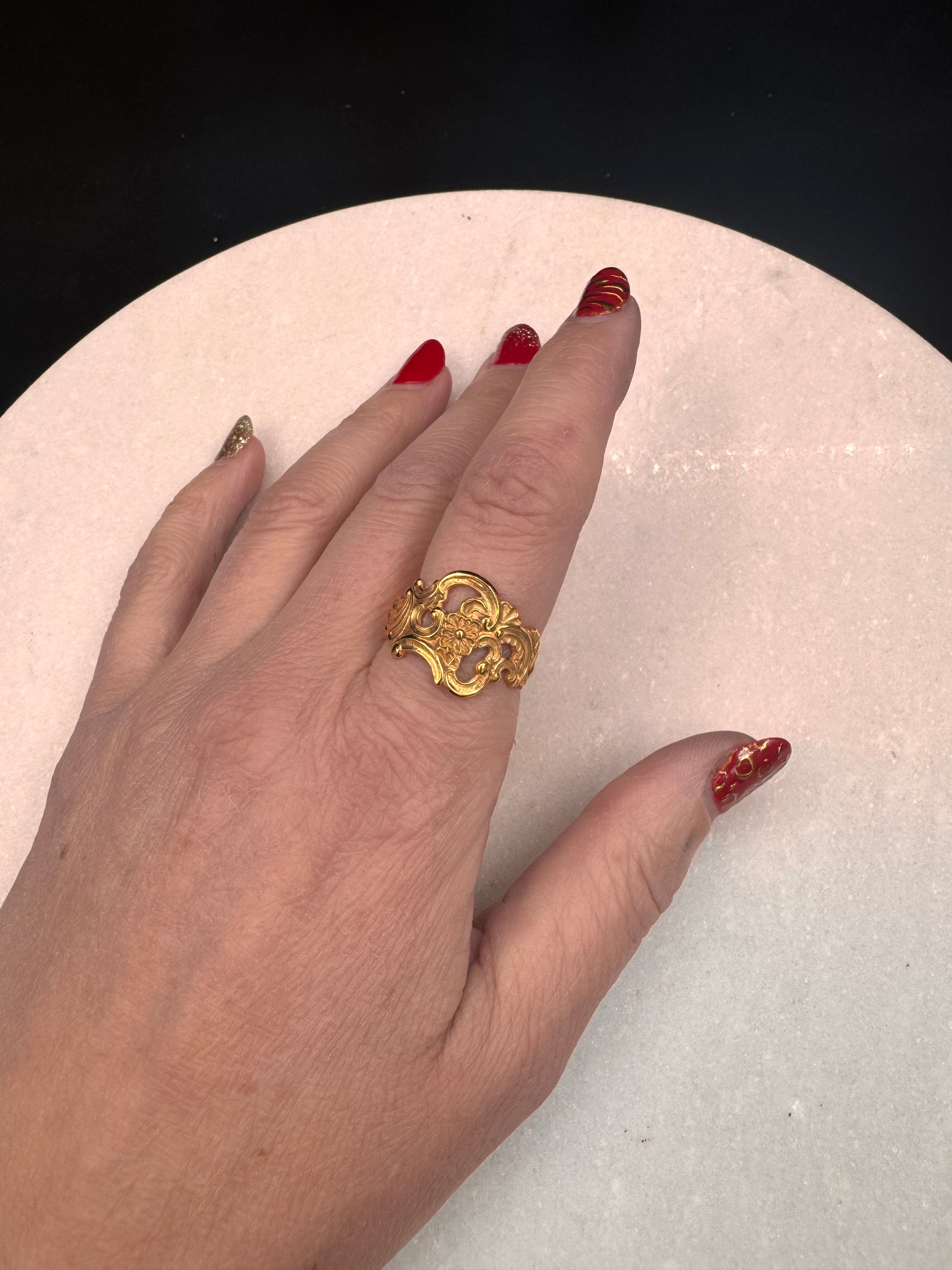 Vintage Sølvring «Oldemor» gullforgylt str 58
