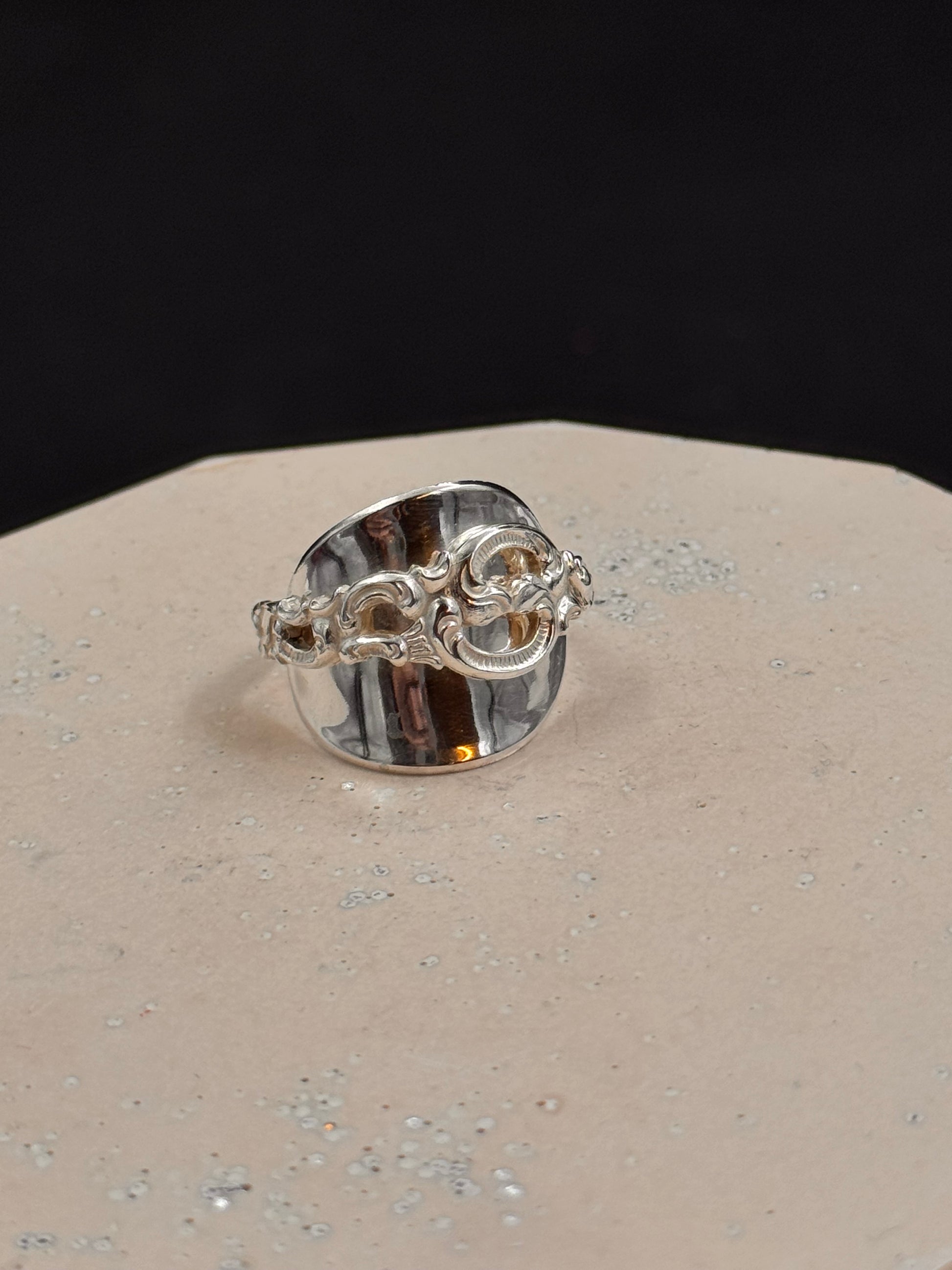Vintage sølvring redesignet av tradisjonelt sølvbestikk.