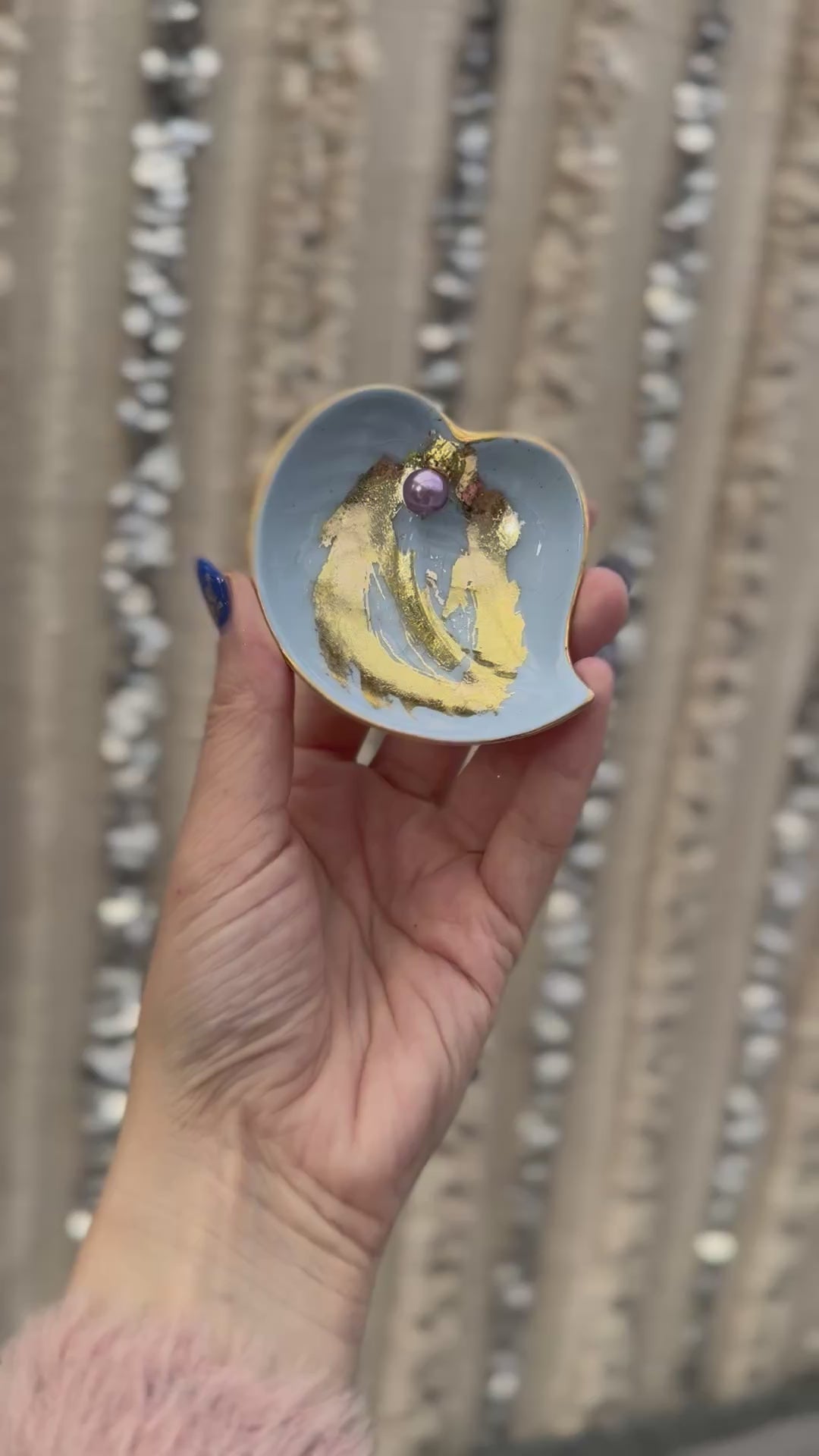 Farger: Pastell gult fat med gull vulva og champagnefarget perle