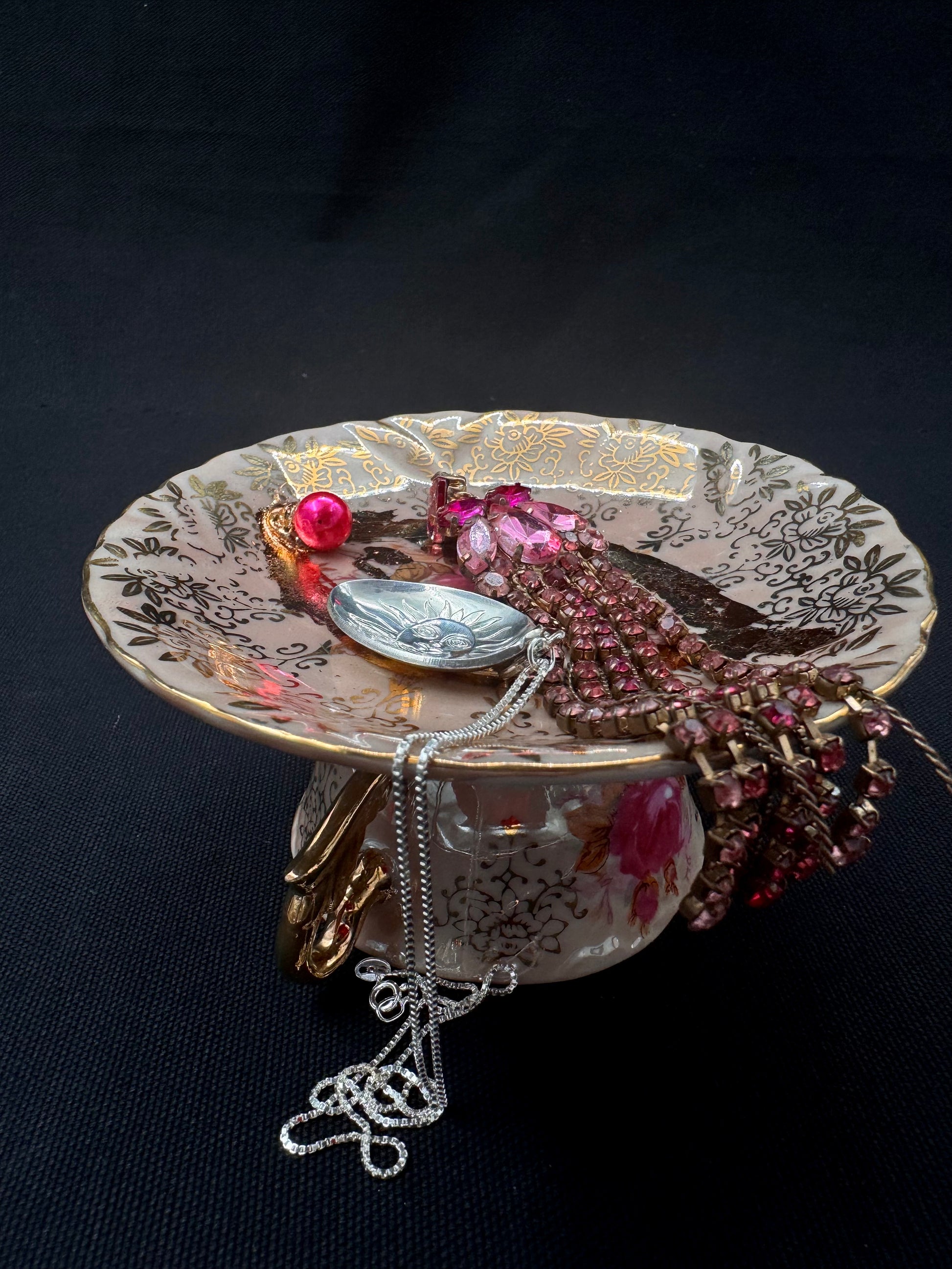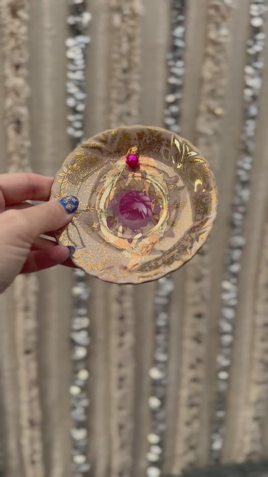 Vulvakunst er vintage fat som er pyntet med gull, perler og diamanter.